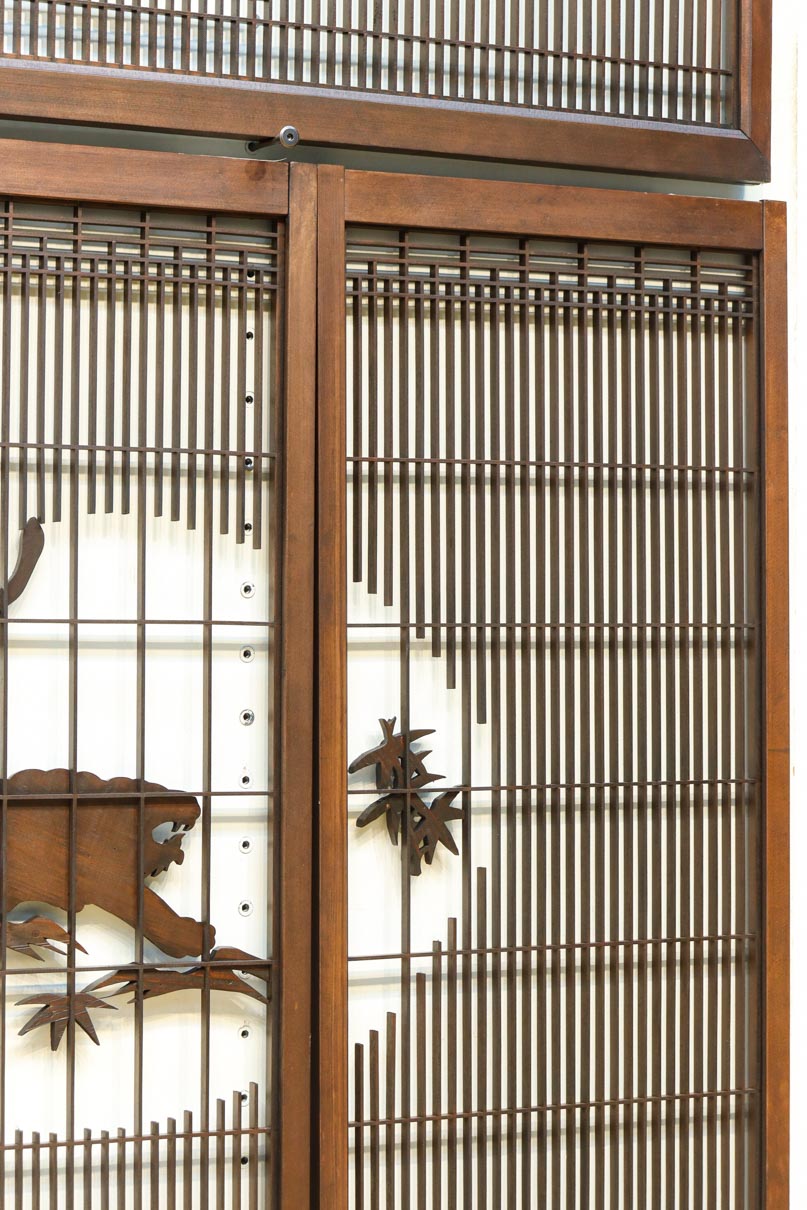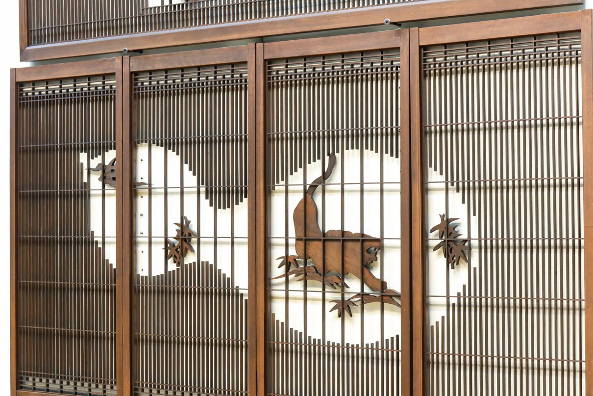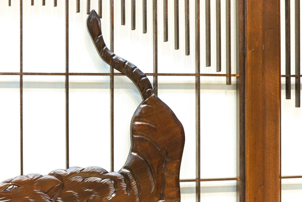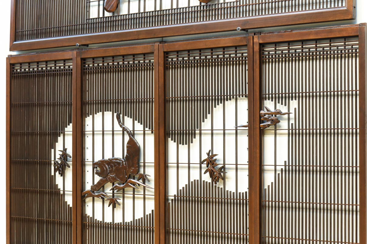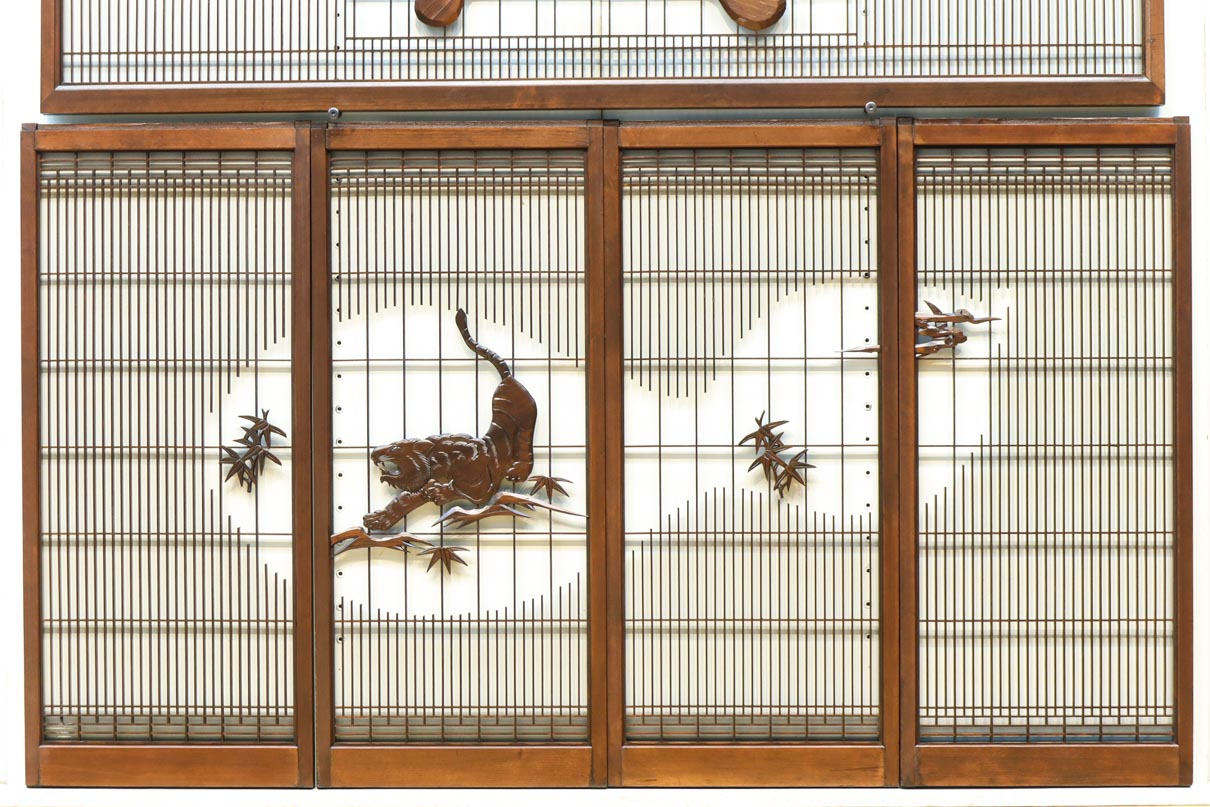 This is a set of four Shoin pieces decorated with majestic tiger and bamboo window paintings.