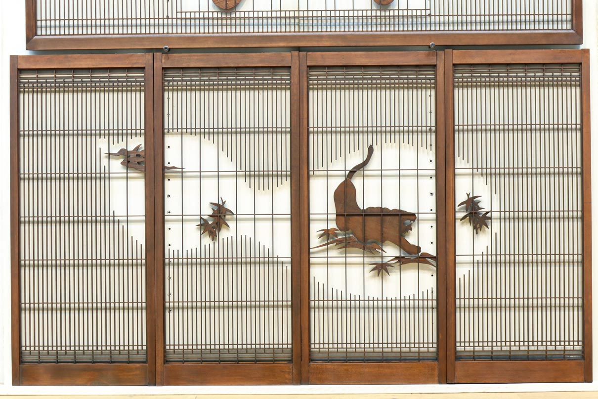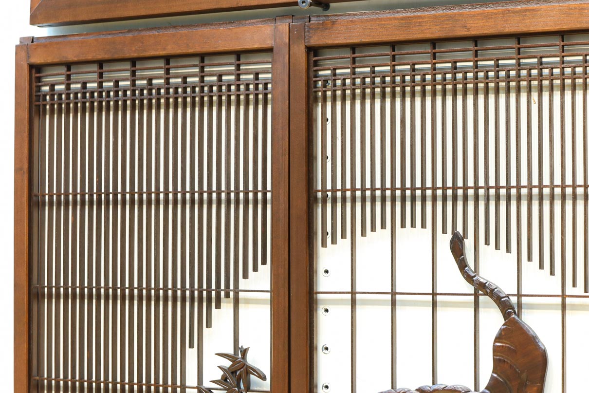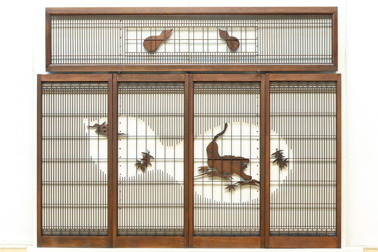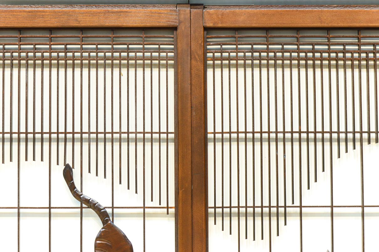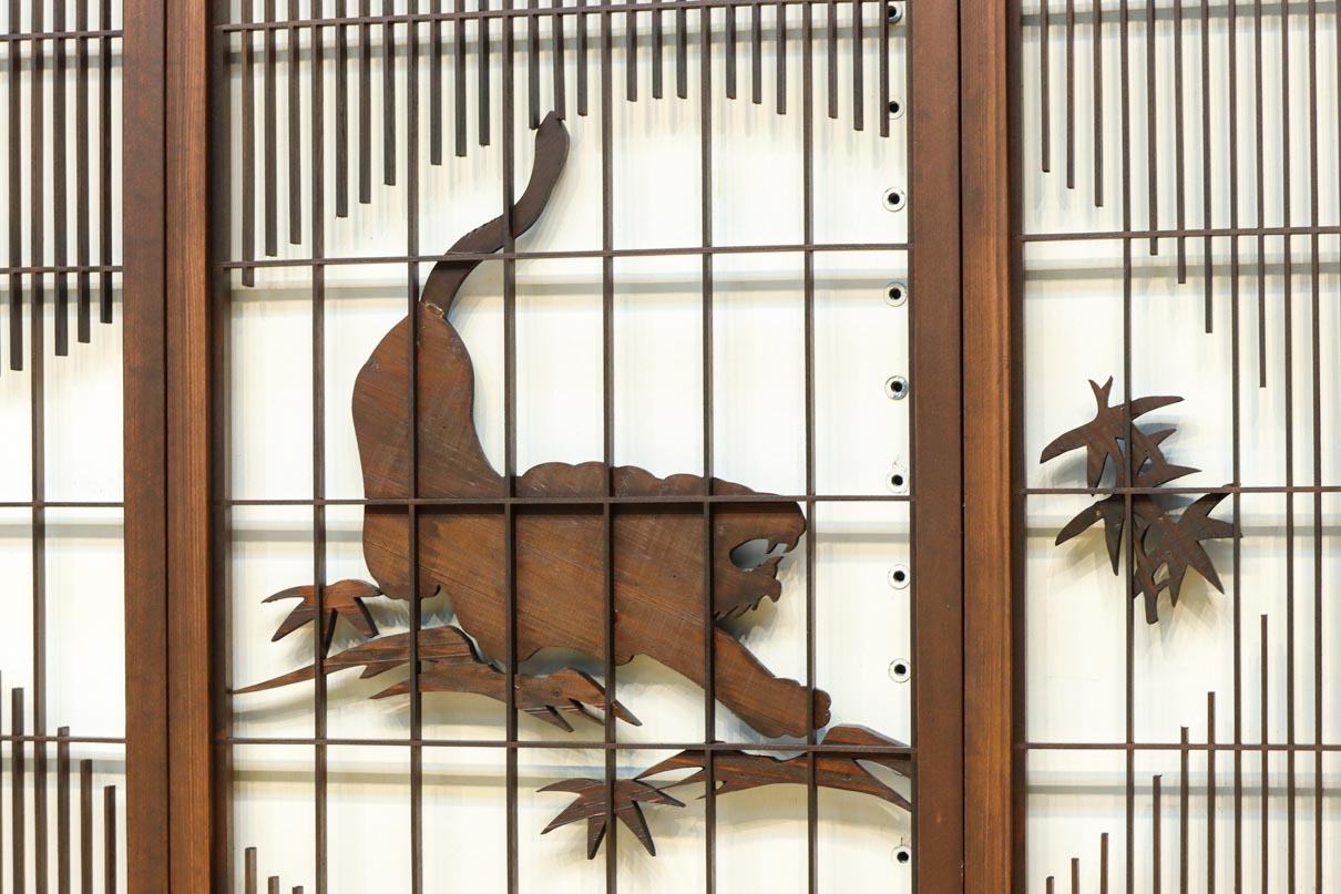 This is a set of four Shoin pieces decorated with majestic tiger and bamboo window paintings.