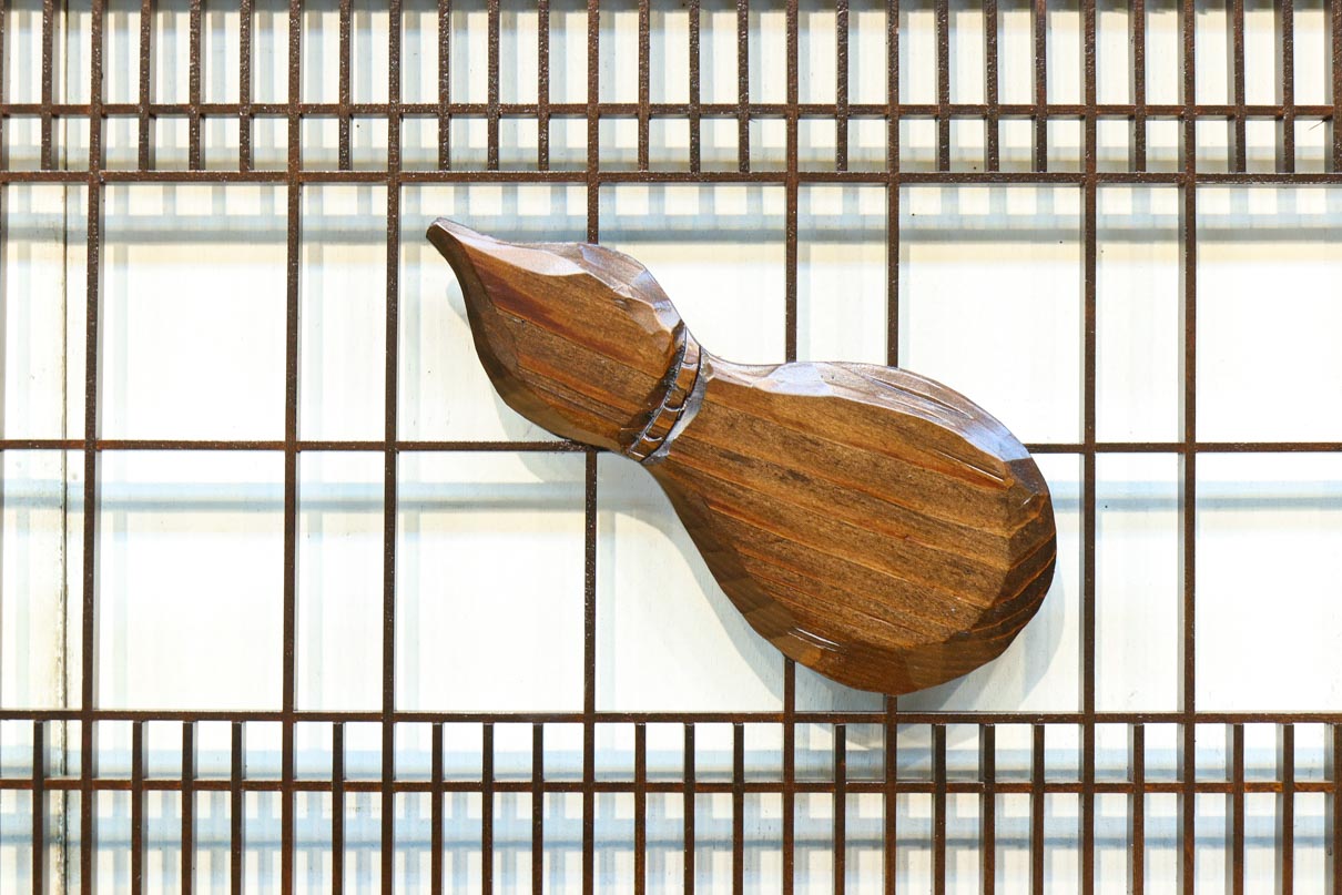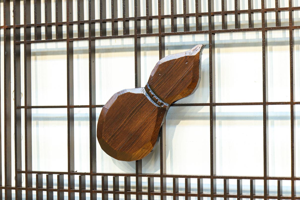 A transom with two gourds lined up,
