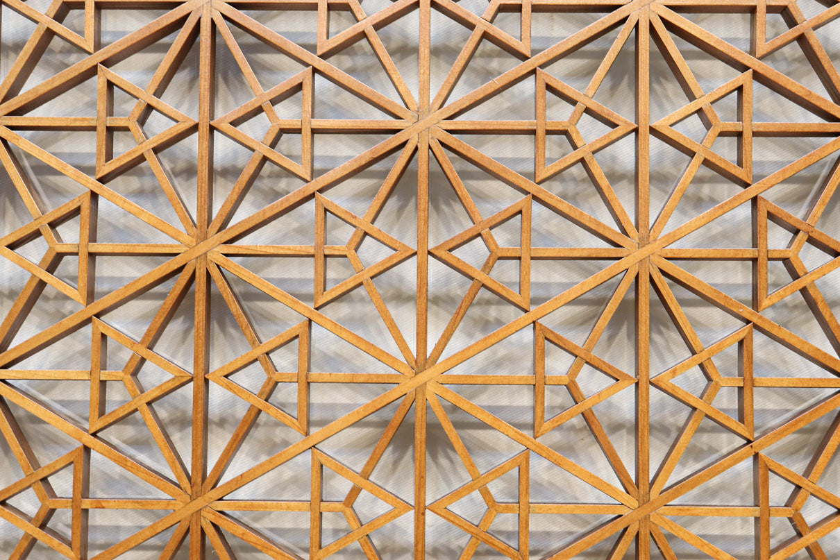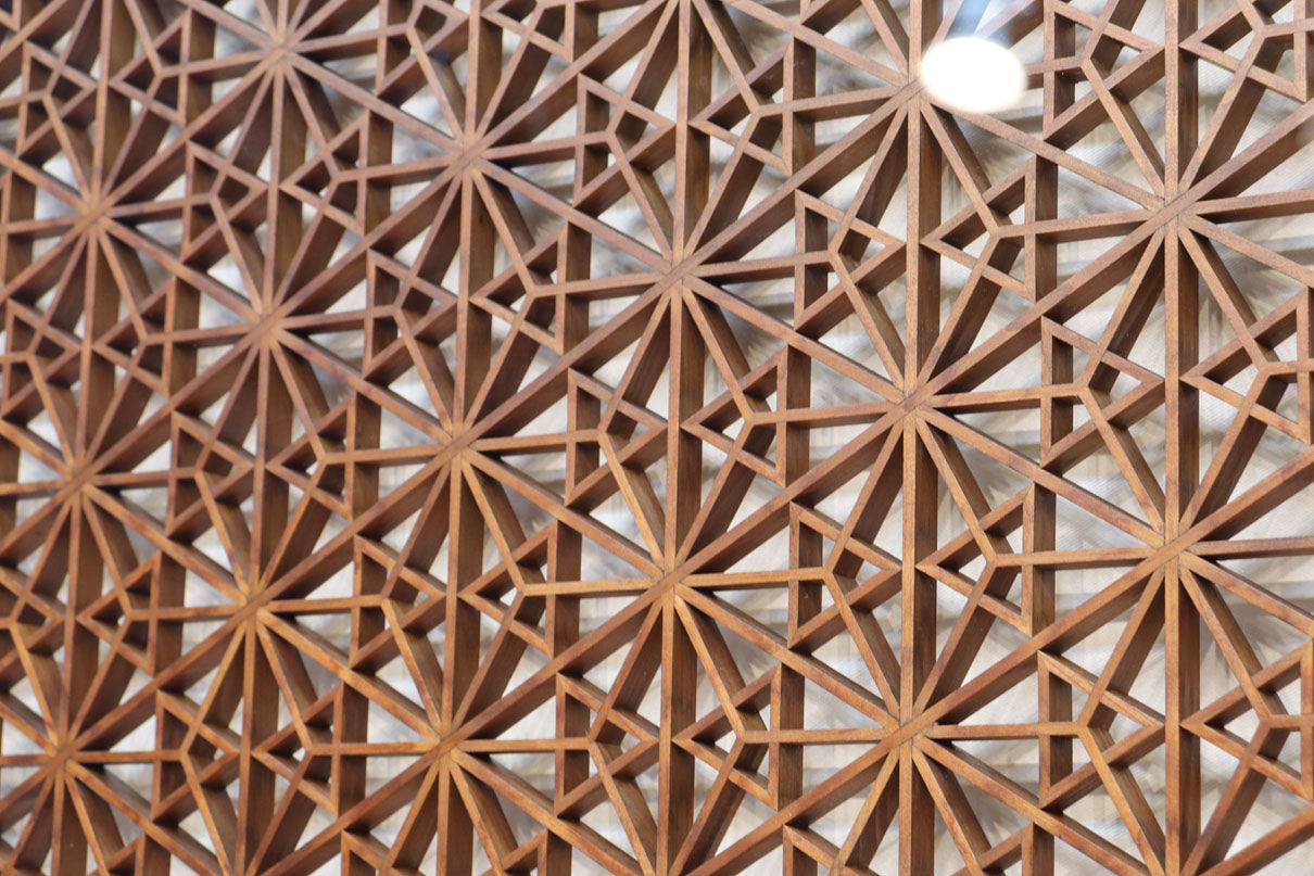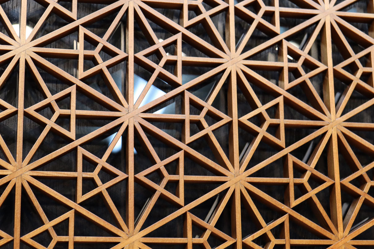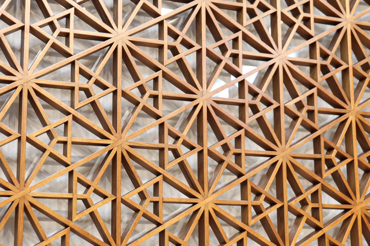 Decorative patterns with a meticulous arrangement of hemp leaf kumiko