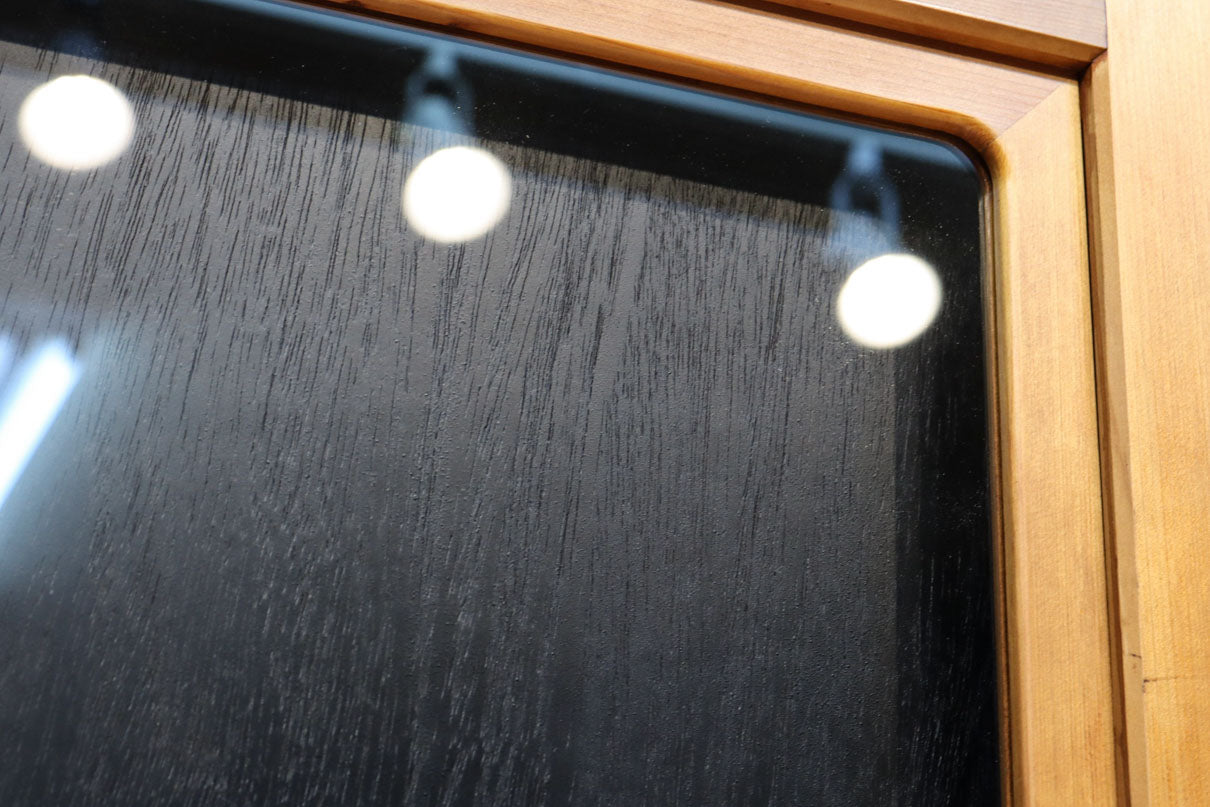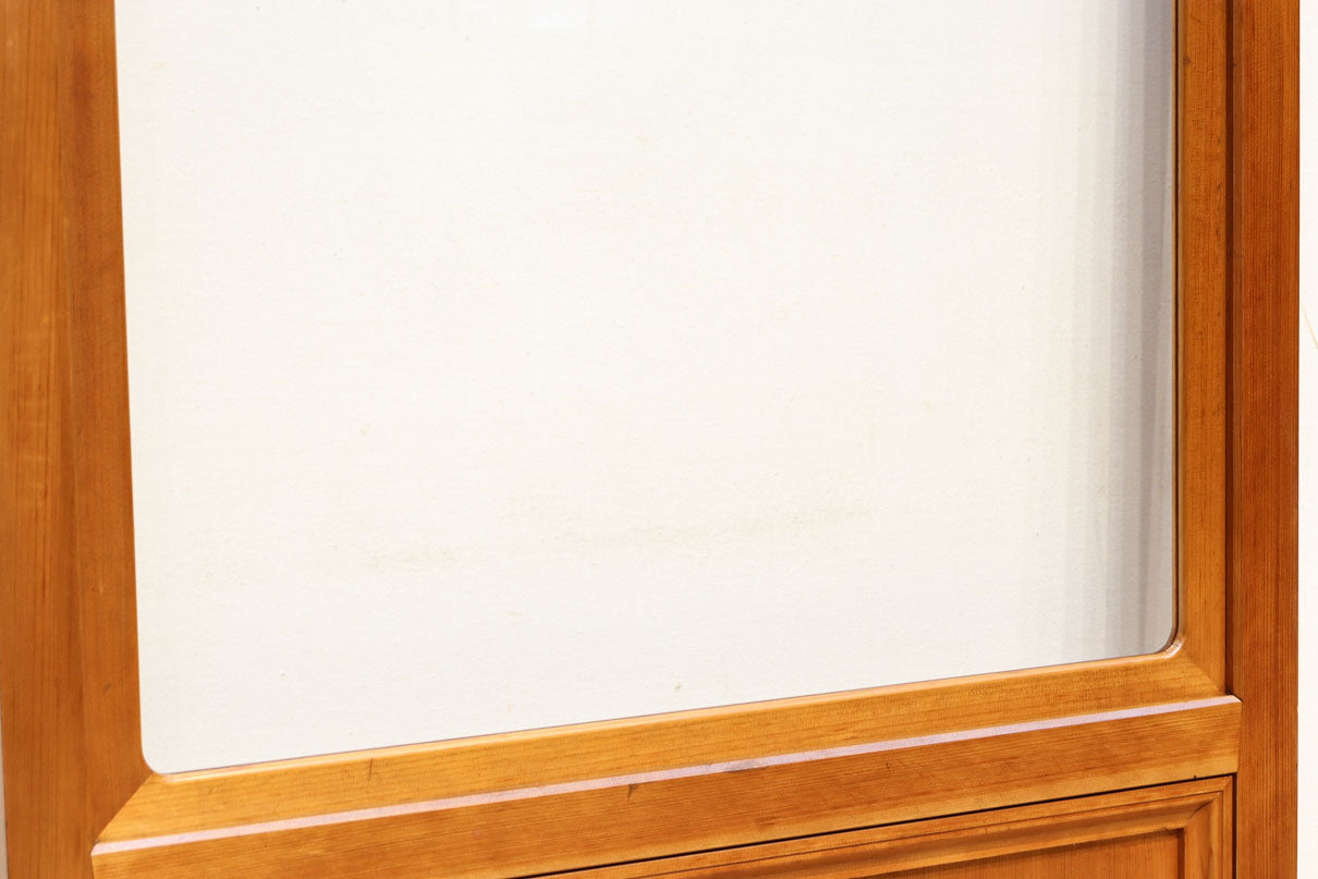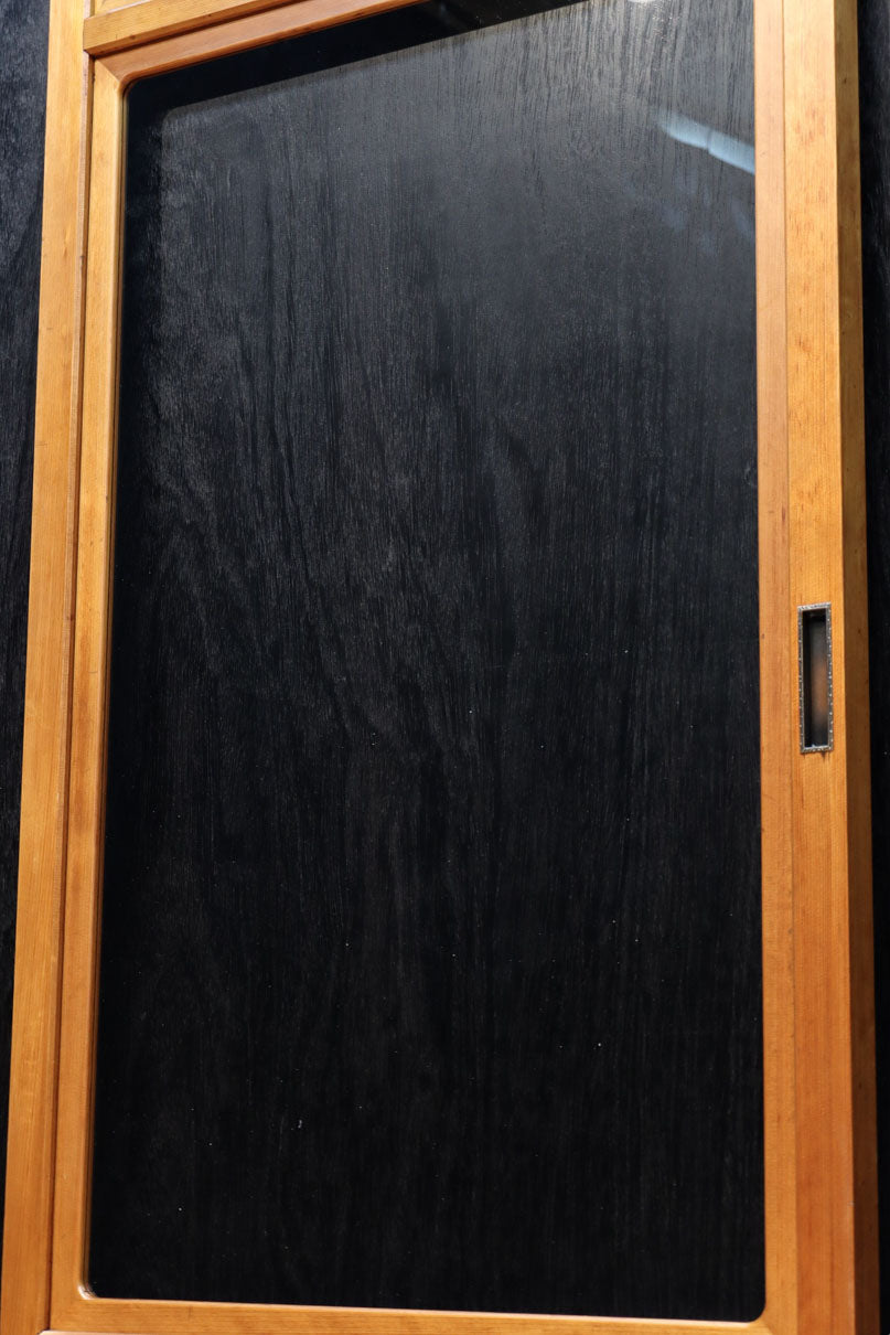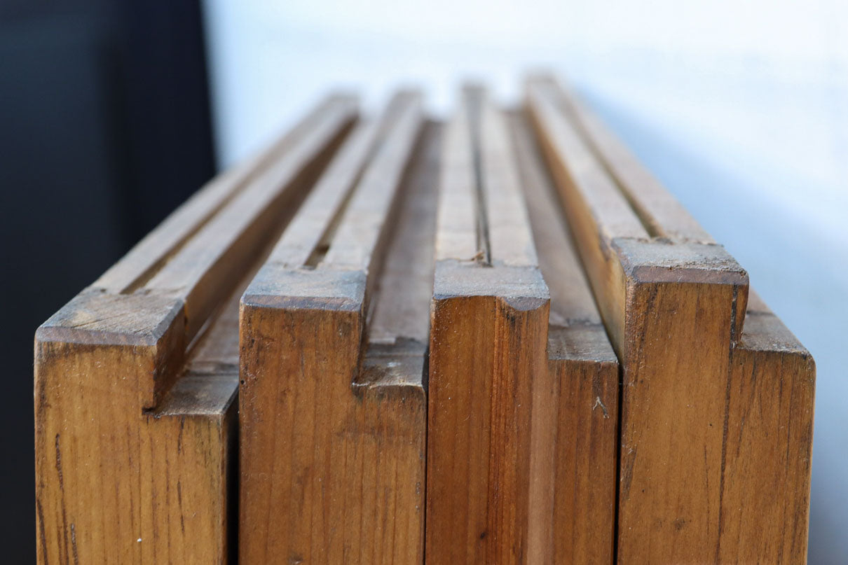 A wooden frame with stepped shapes that show the gentle grain of the waistboard