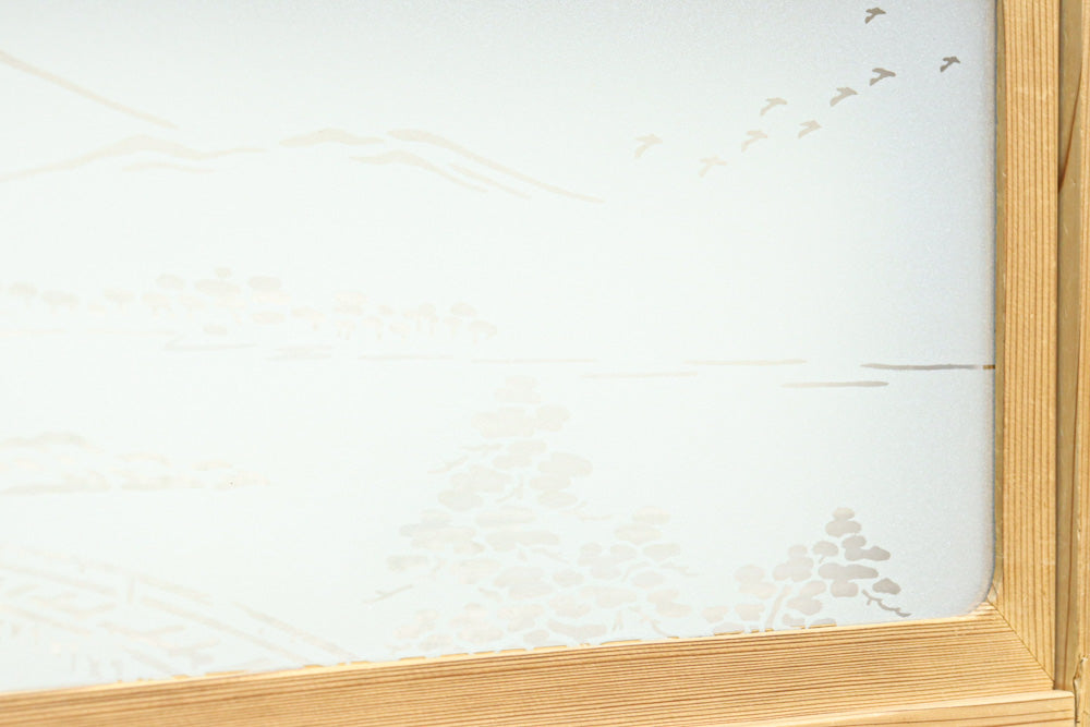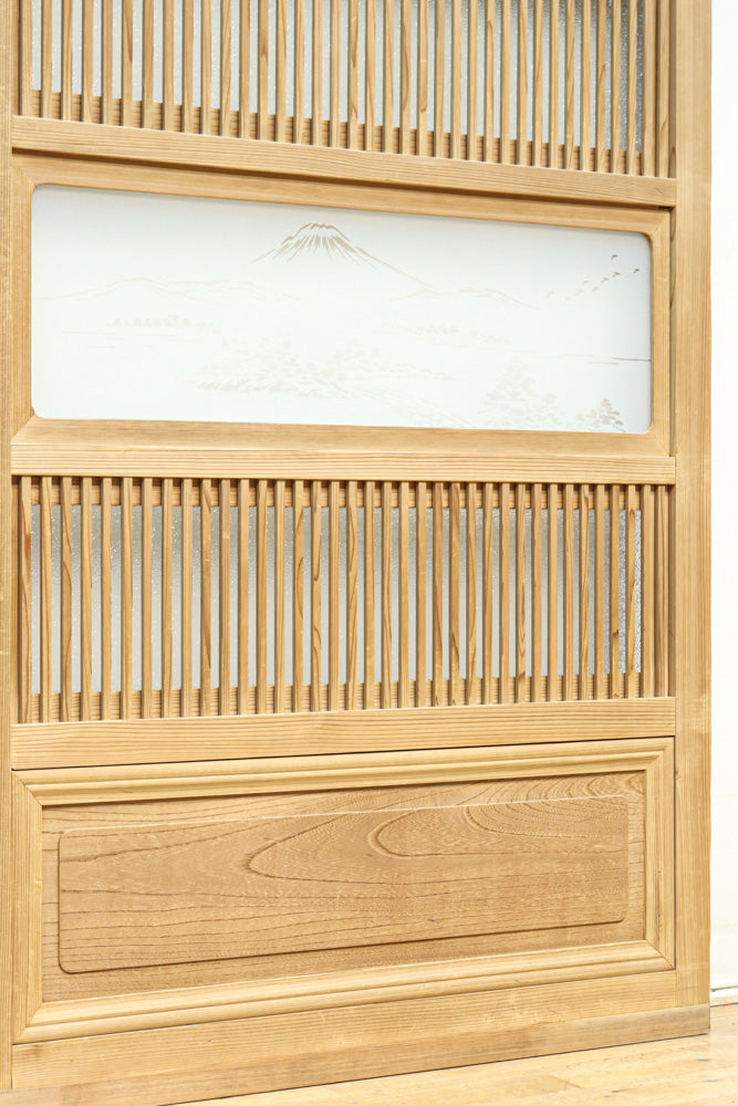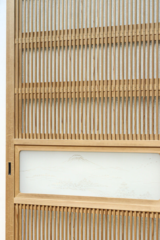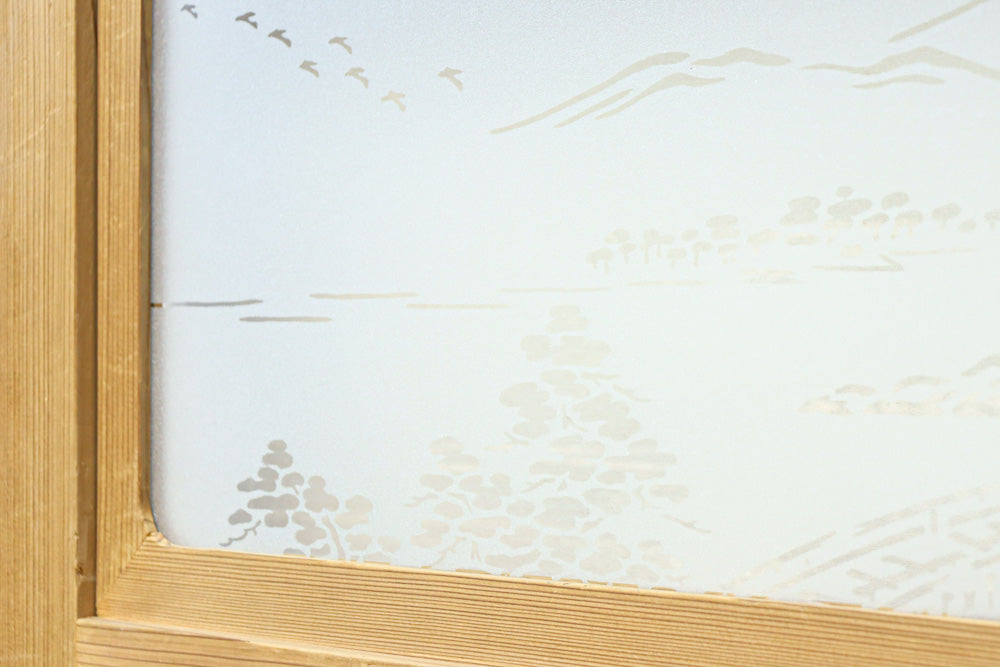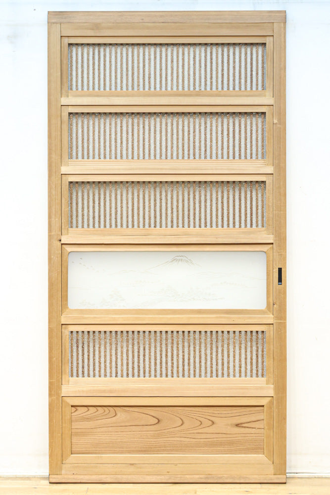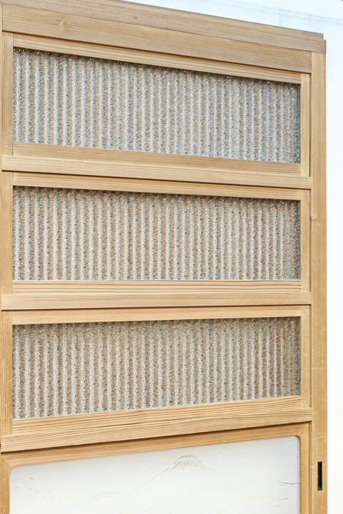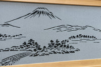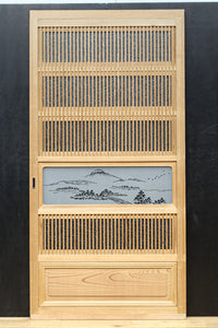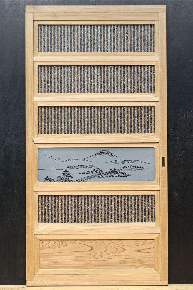 It is fitted with a glass glass that depicts a landscape painting of Mt. Fuji.