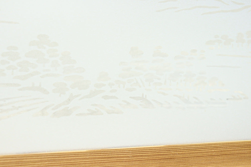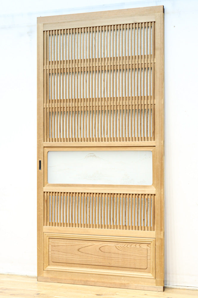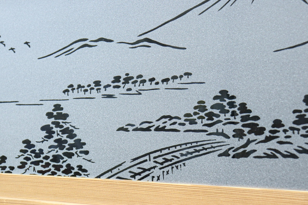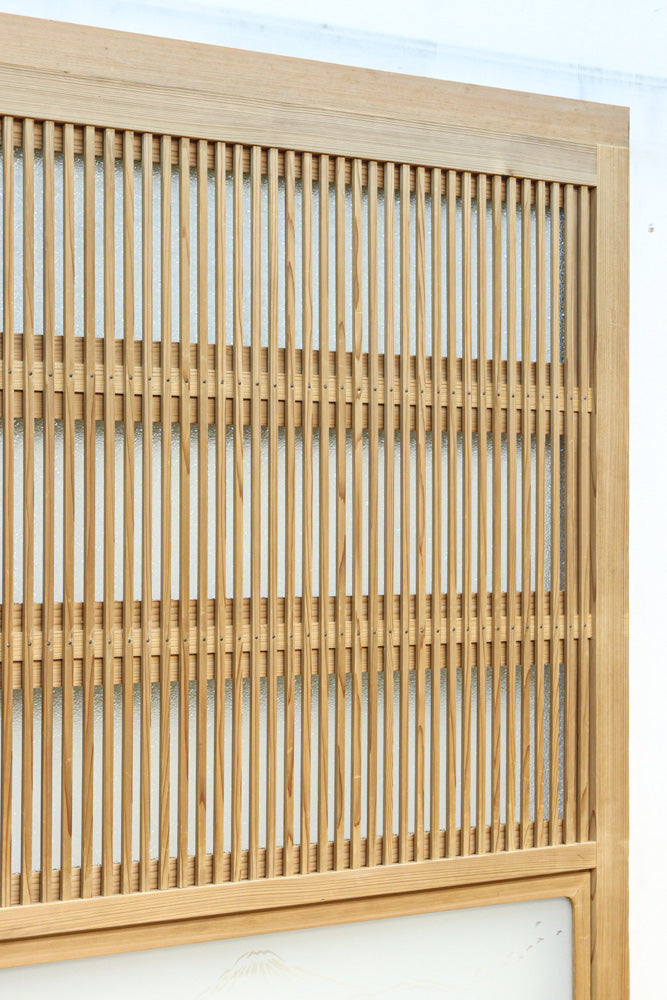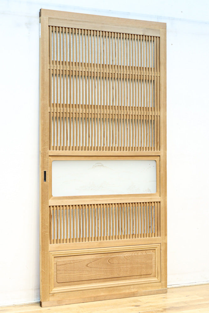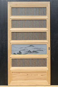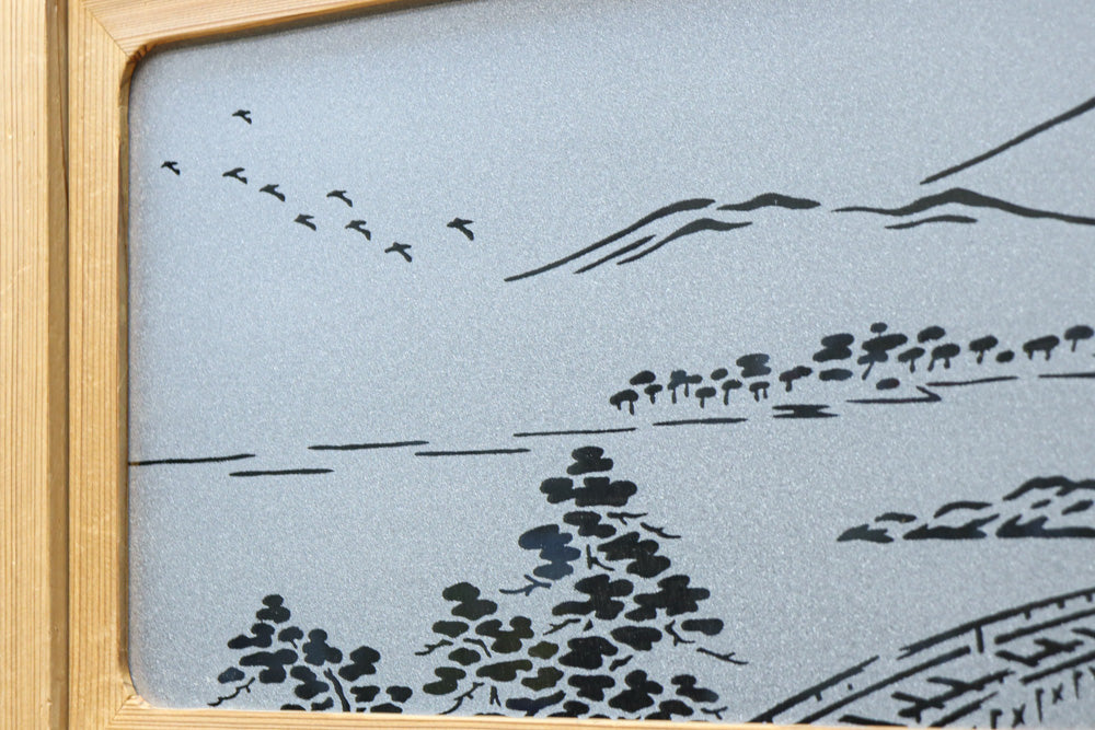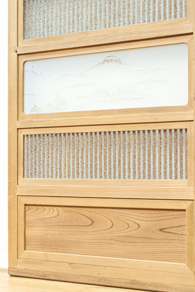 It is fitted with a glass glass that depicts a landscape painting of Mt. Fuji.