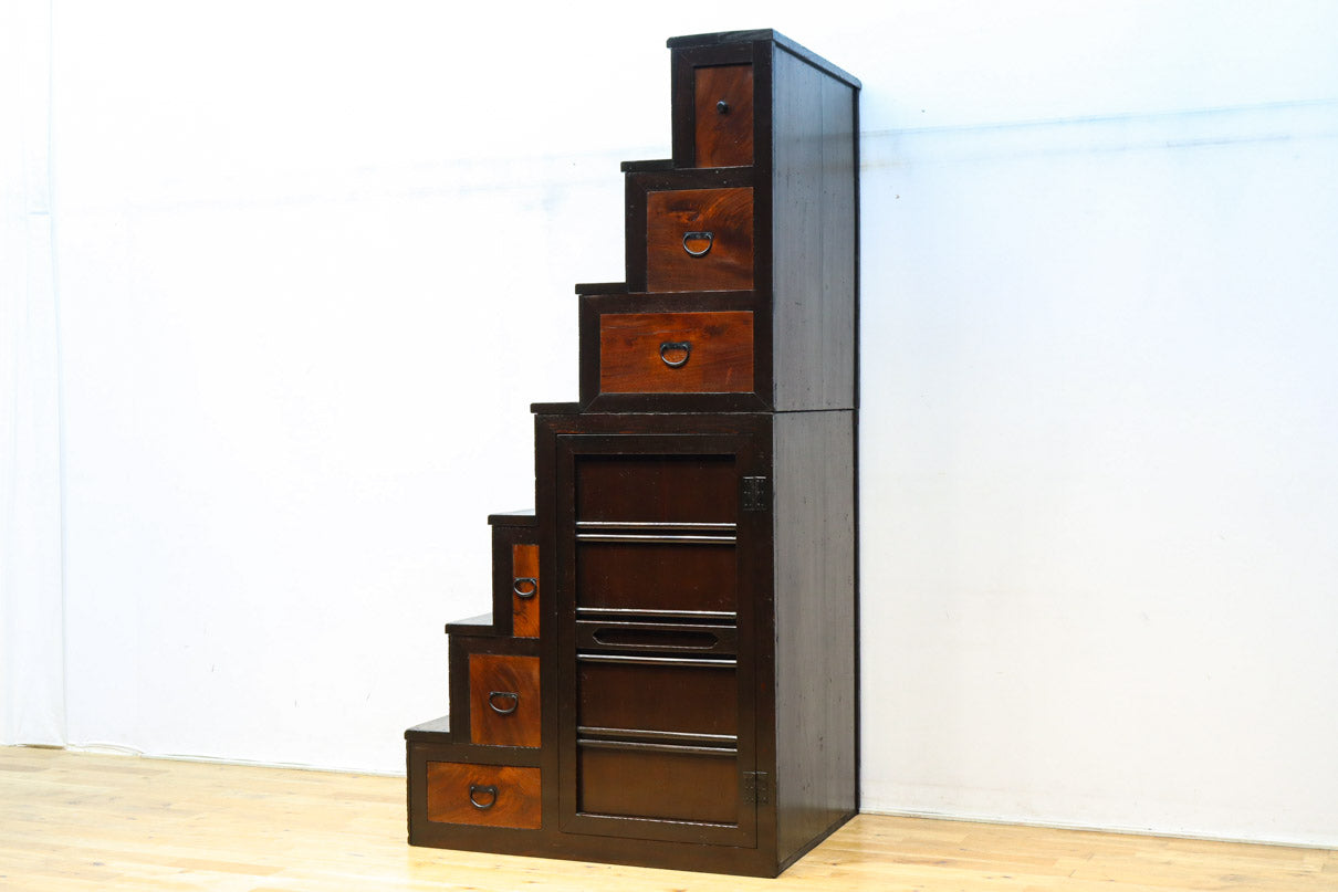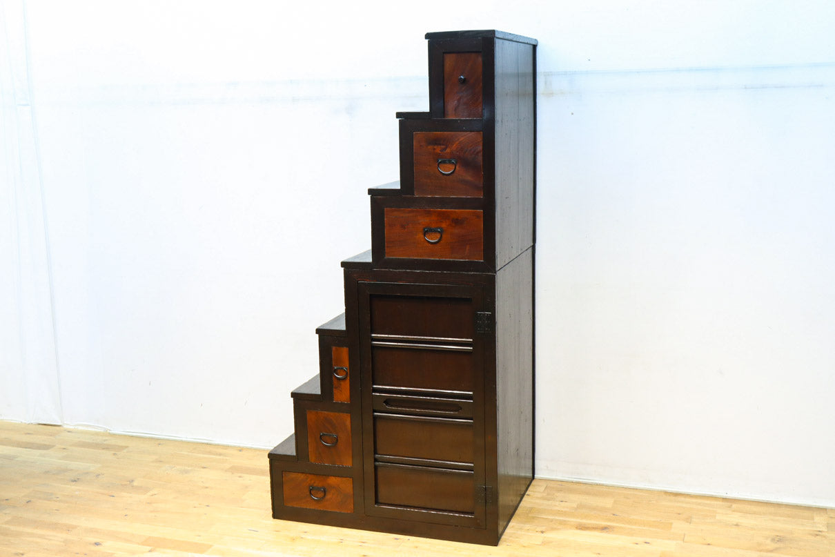 大珍品‼ 美しい歳月を重ねた風格漂う京都半間階段箪笥 BB2999