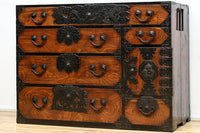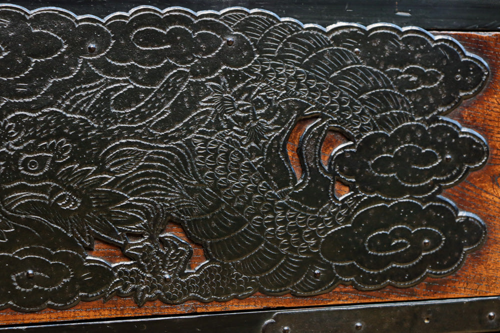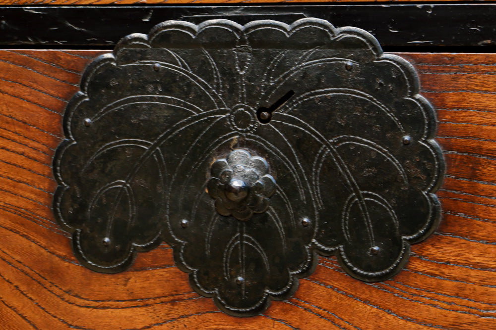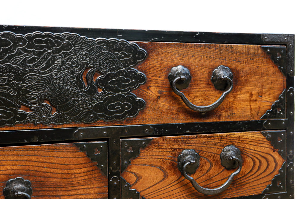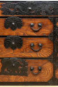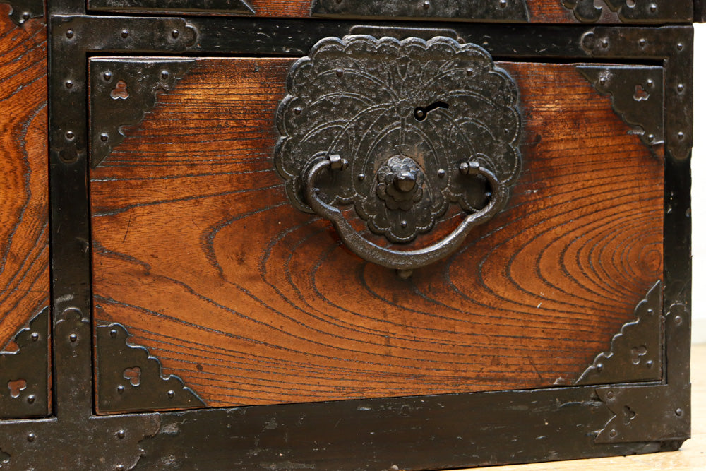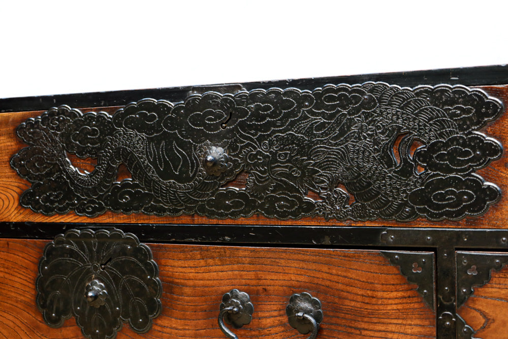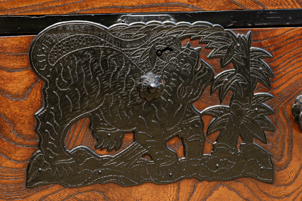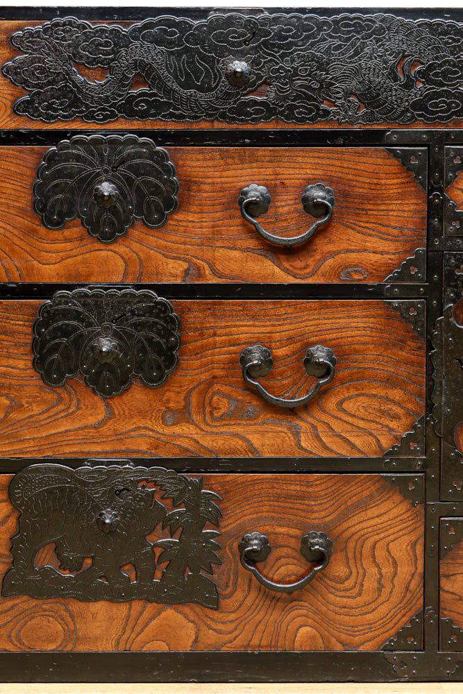 極上!! 華やかな欅杢目に龍虎金具が映える仙台衣裳箪笥 BB3062