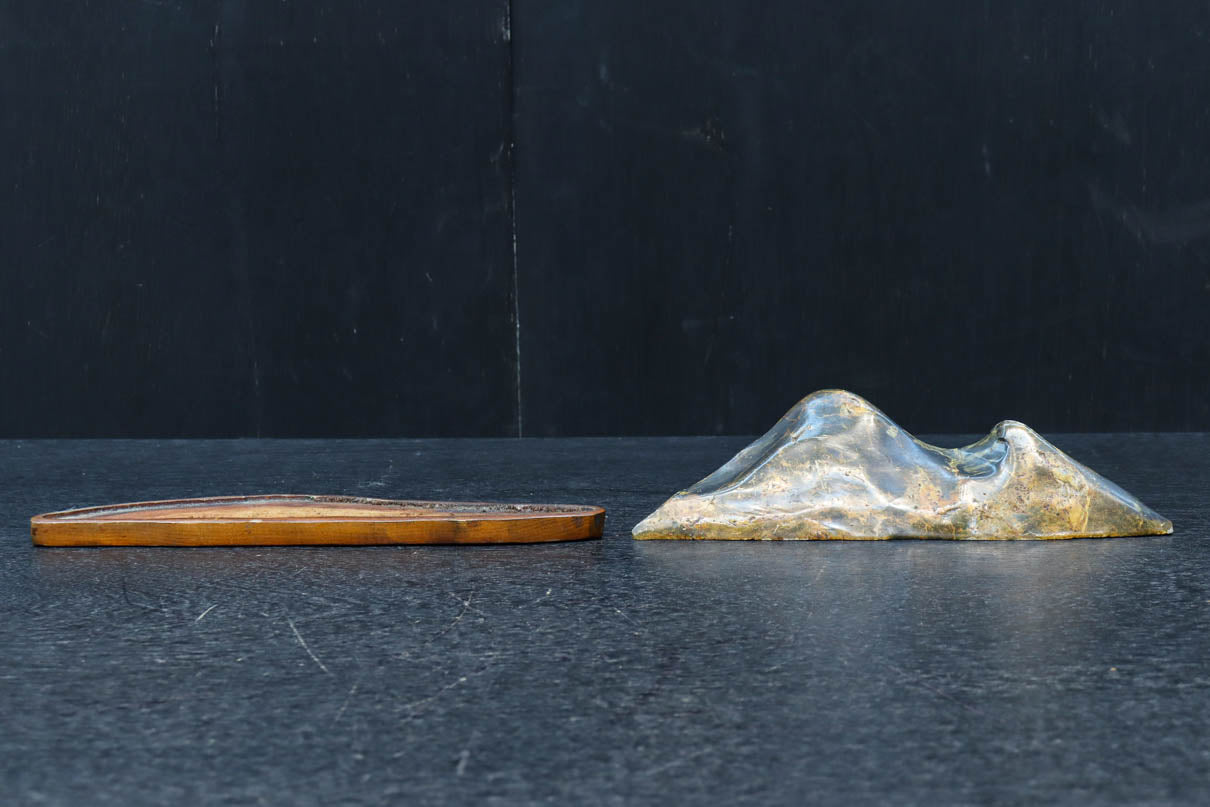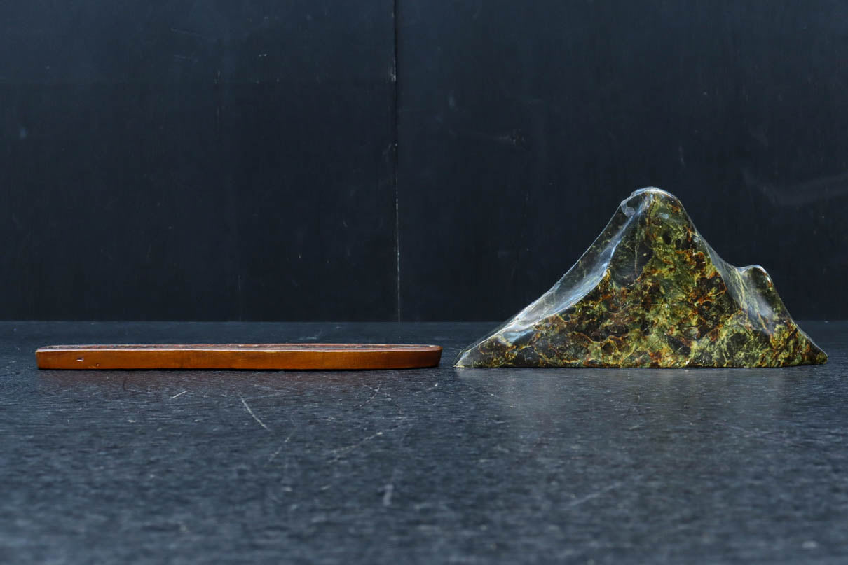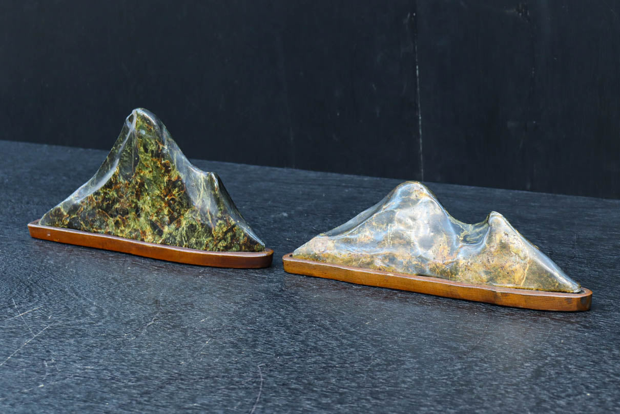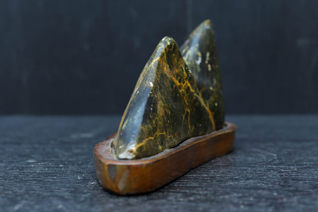 2つとも石の形に合わせて型取りされた木製の台が付属します。