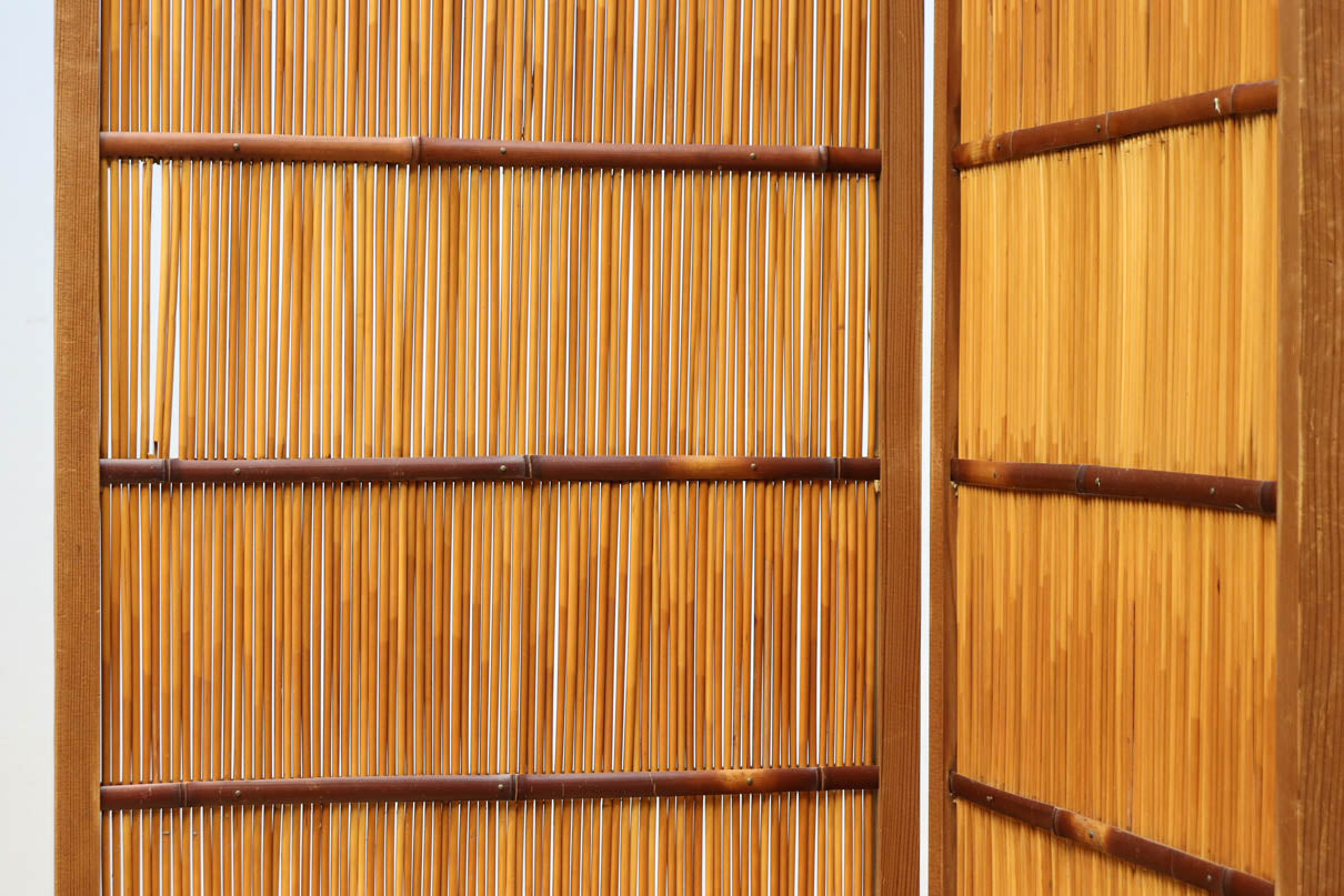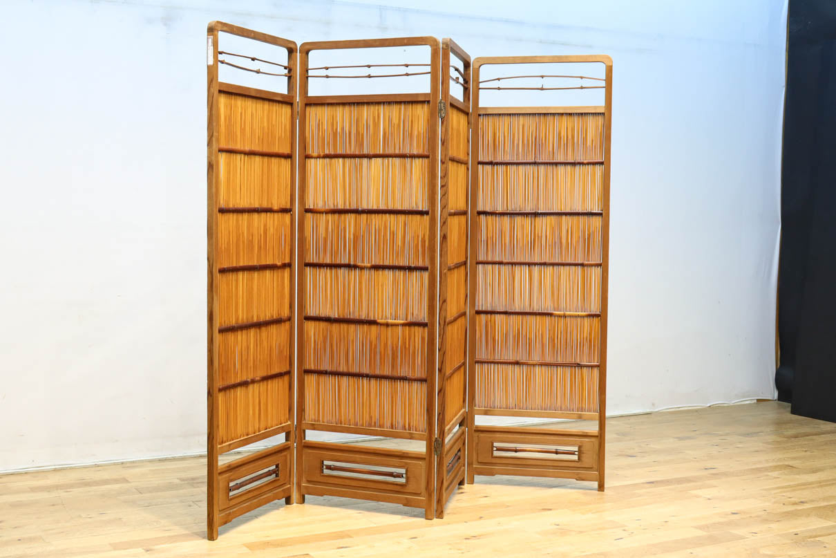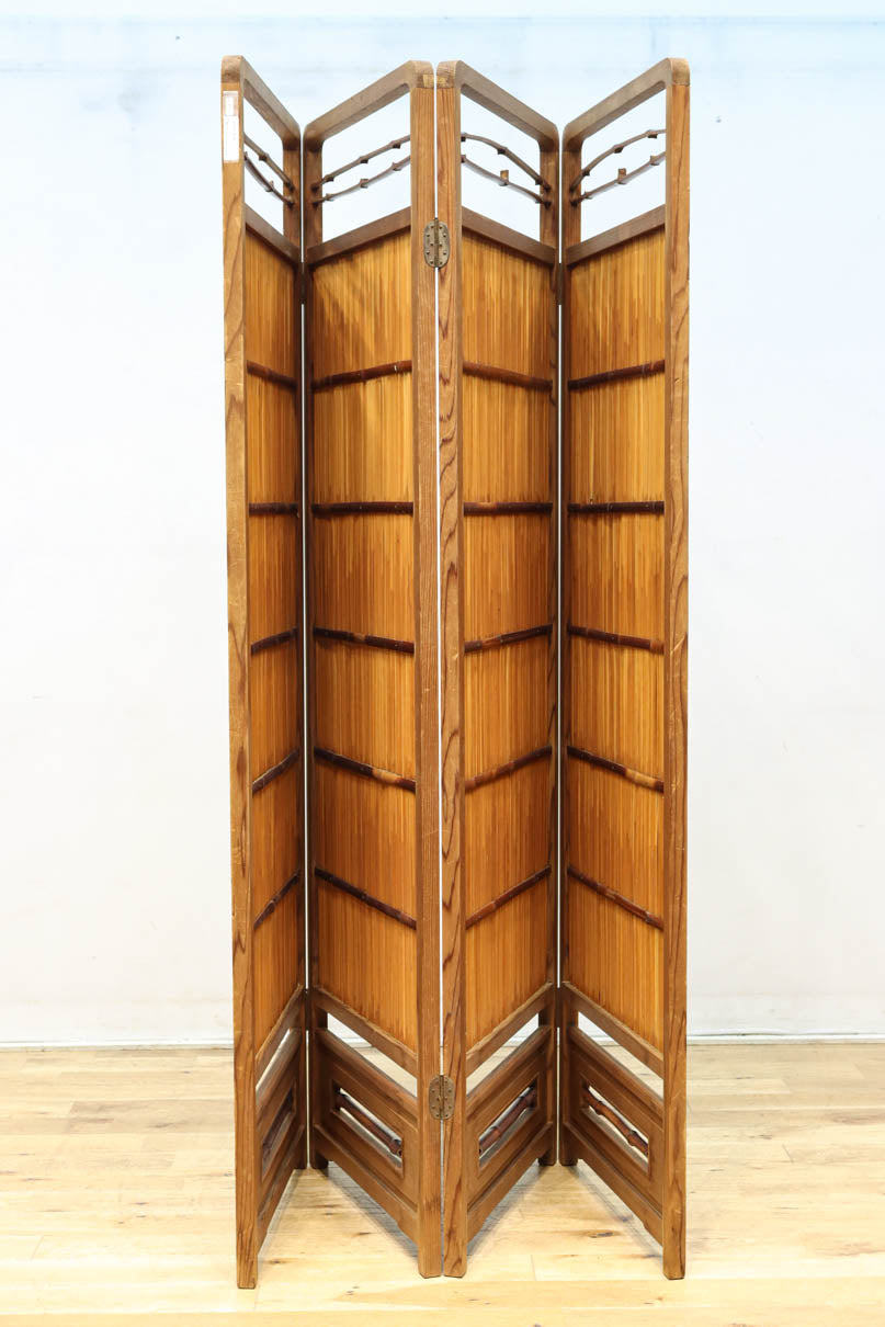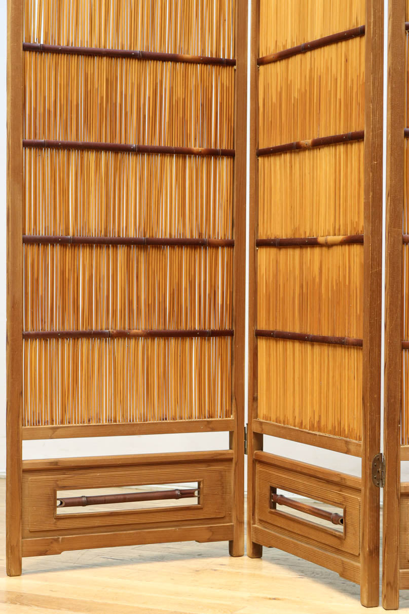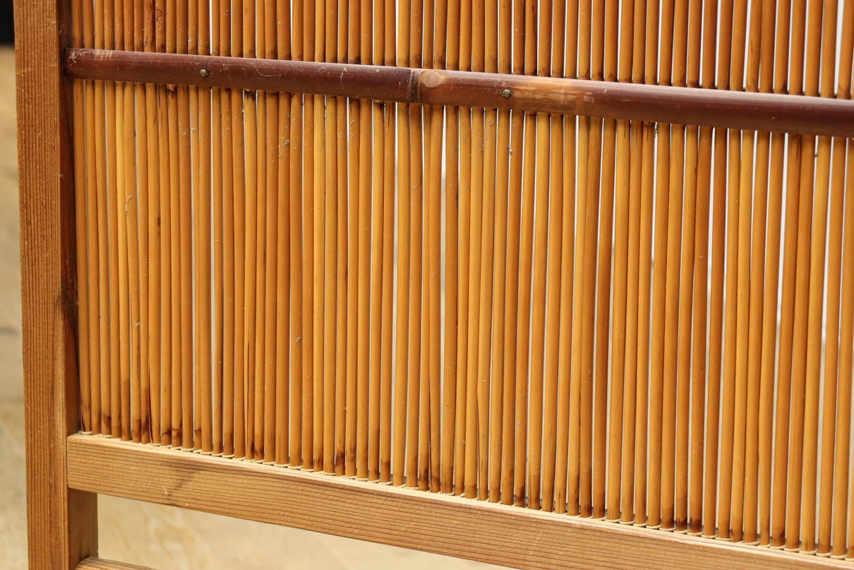 繊細な簾の造りをした風情ある背の高い四つ折り衝立 DC7552