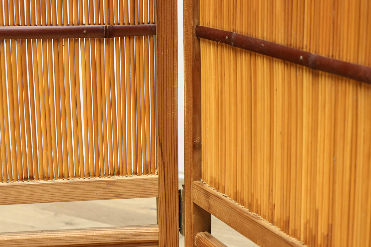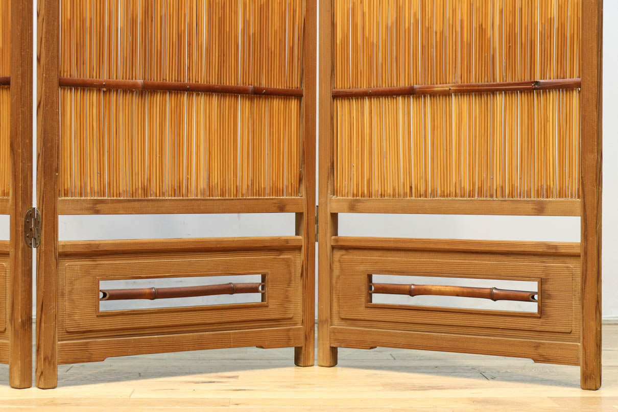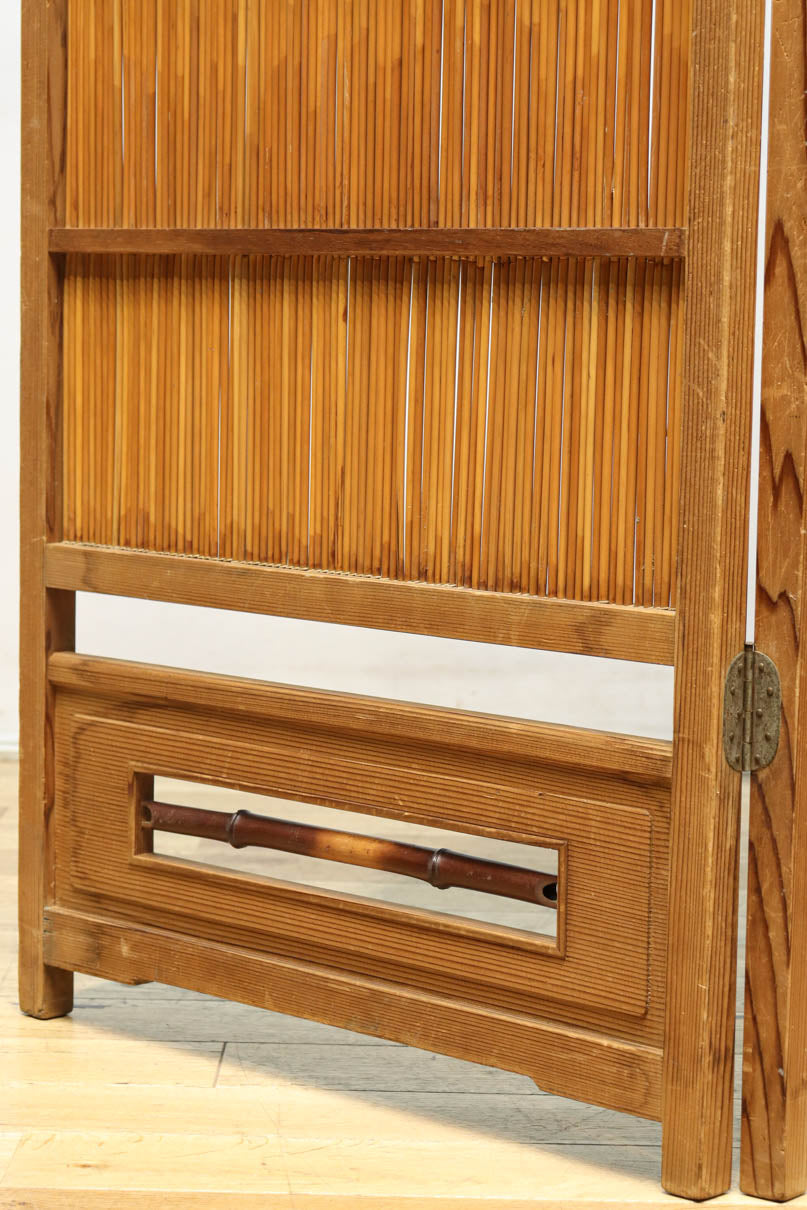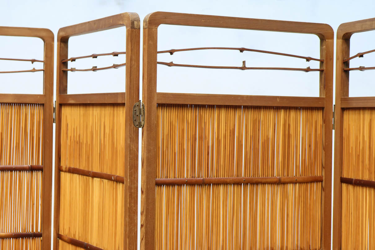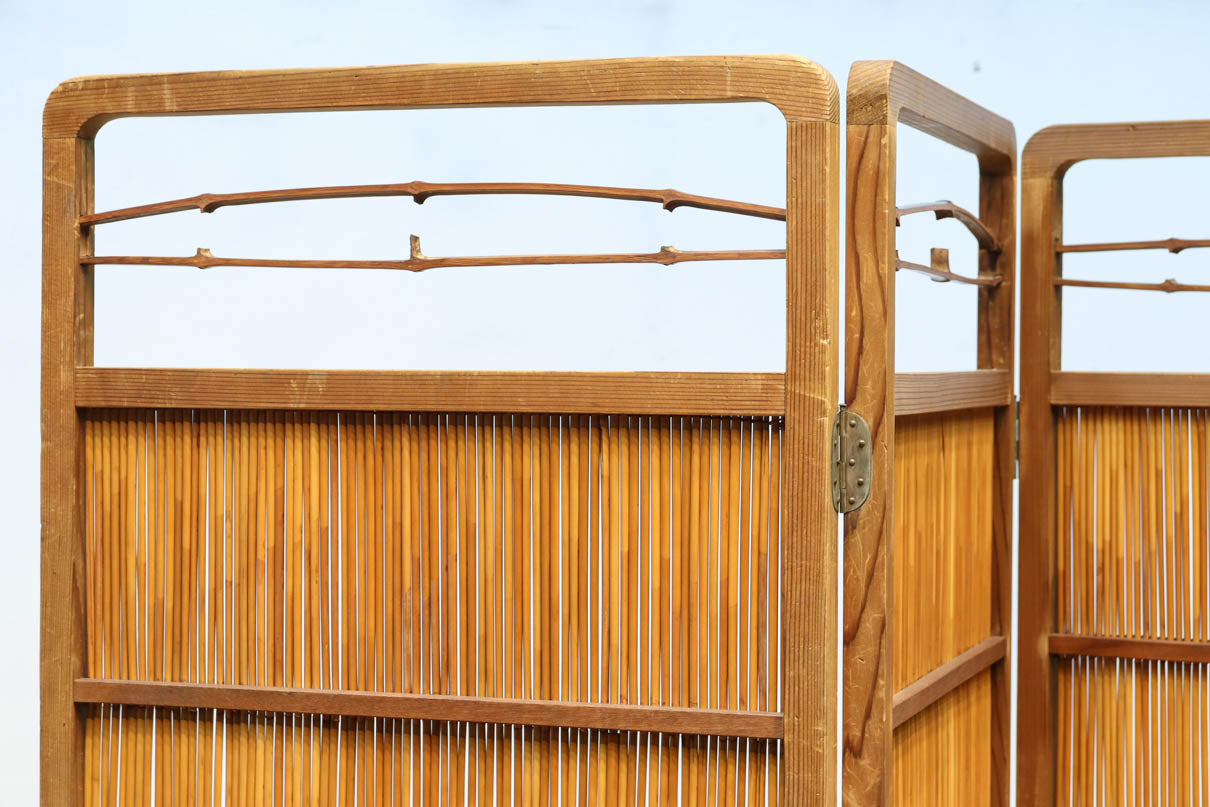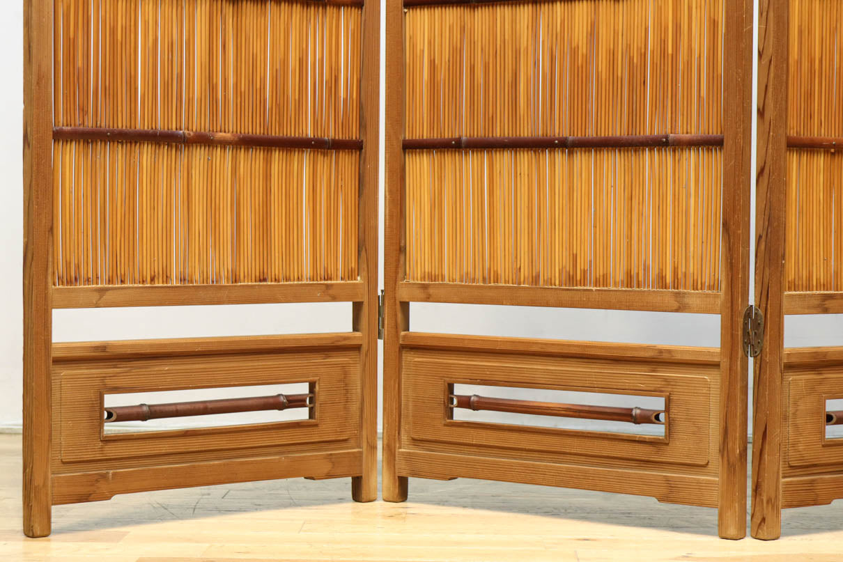 繊細な簾の造りをした風情ある背の高い四つ折り衝立 DC7552