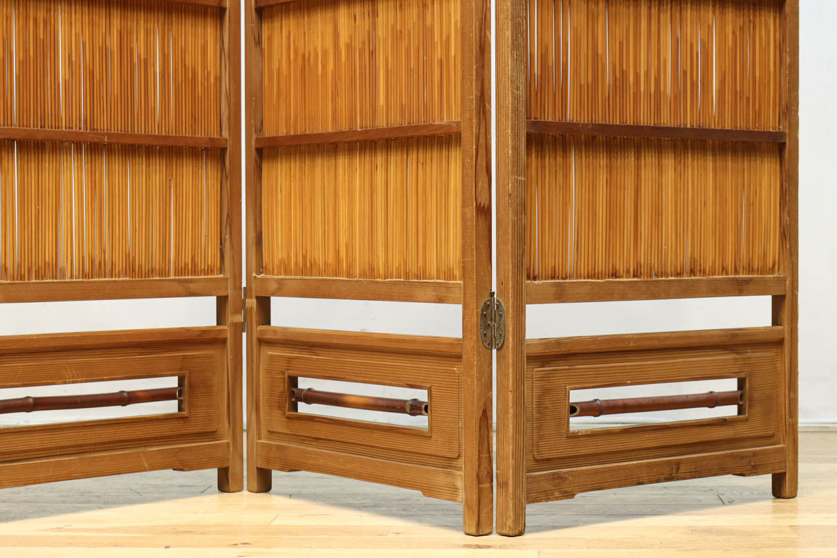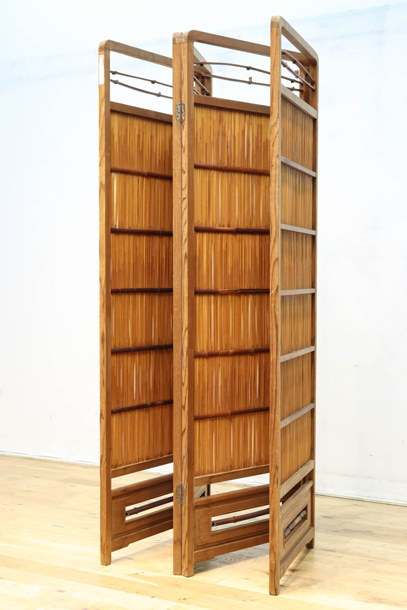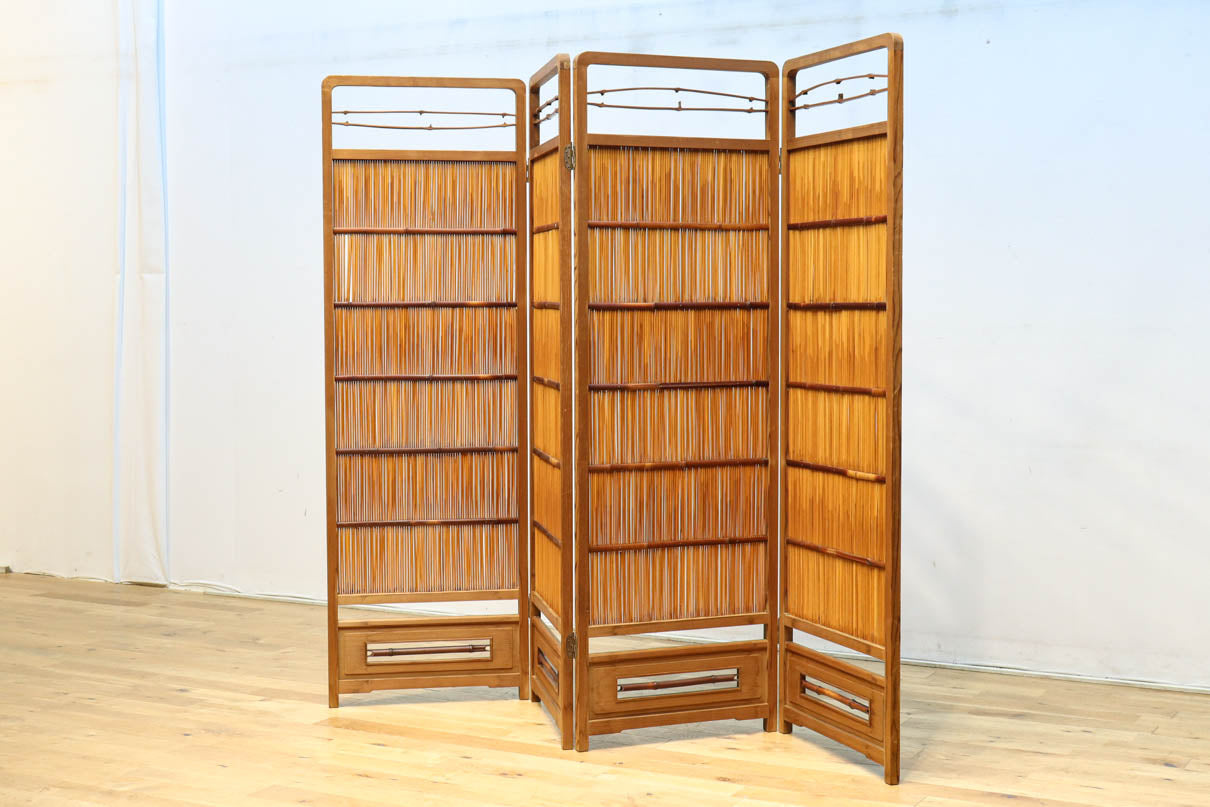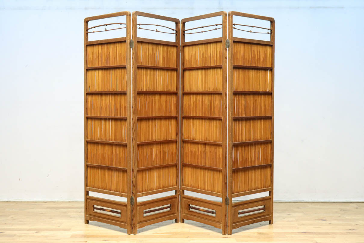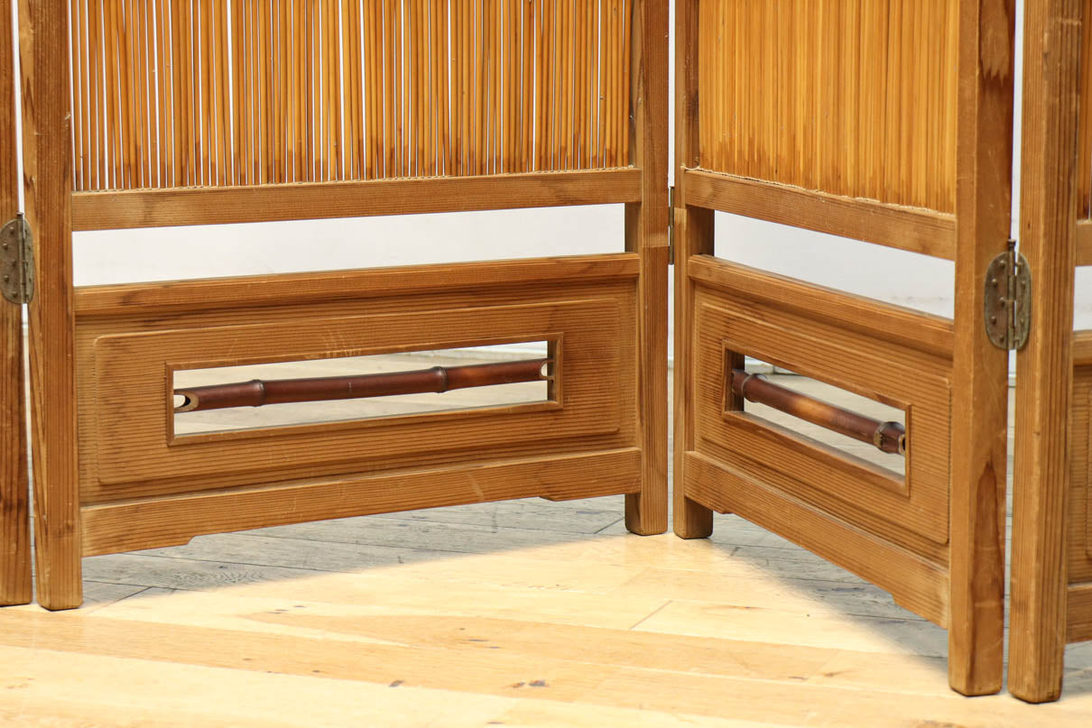 繊細な簾の造りをした風情ある背の高い四つ折り衝立 DC7552