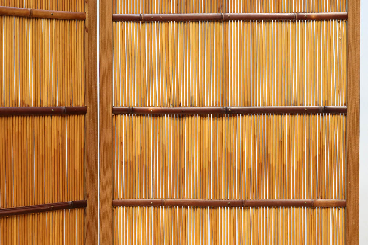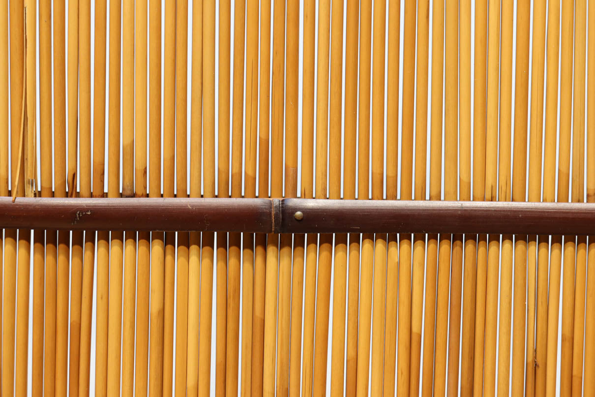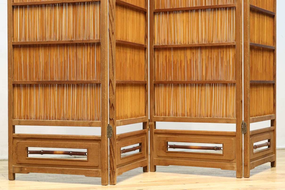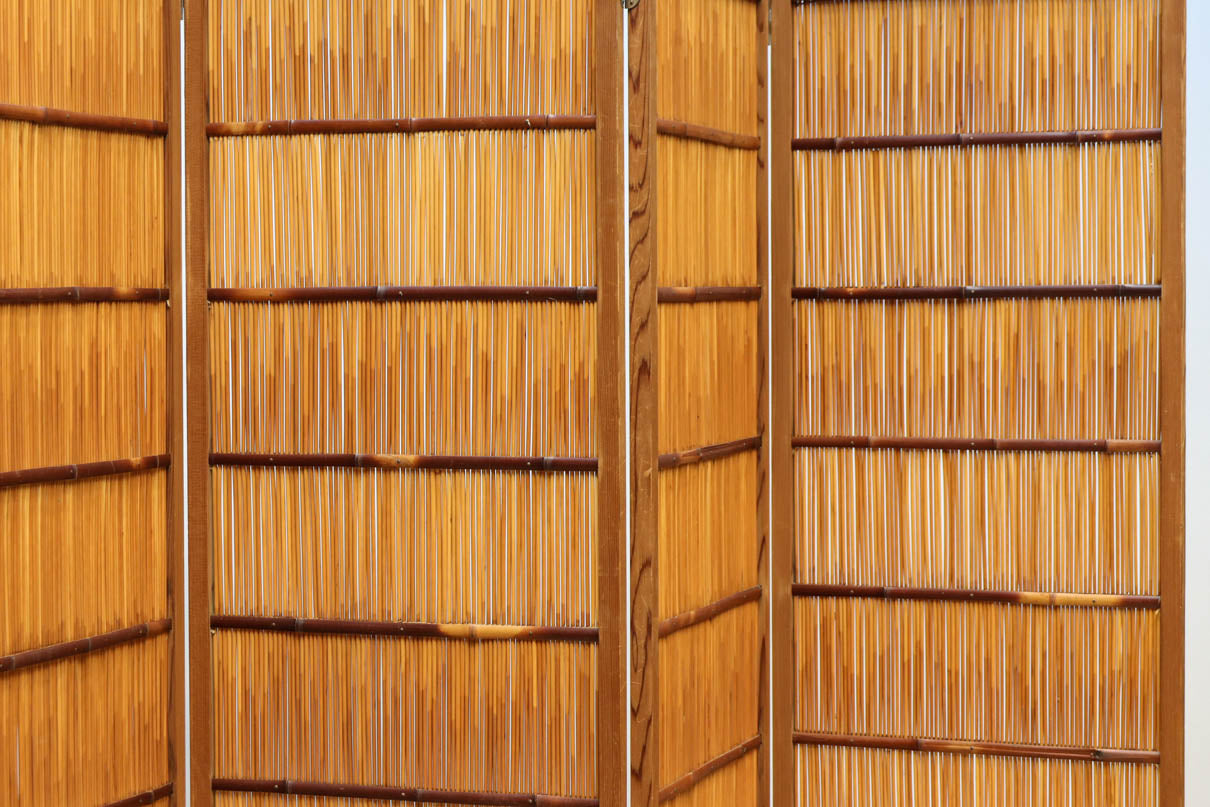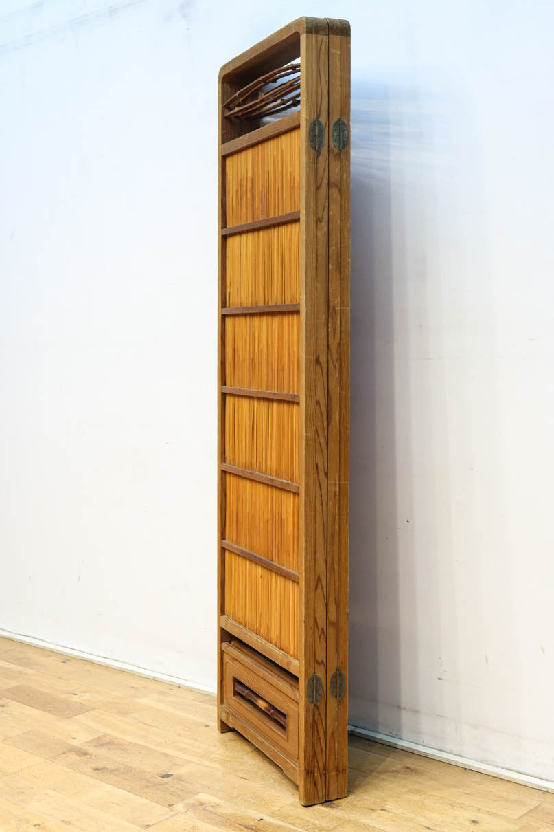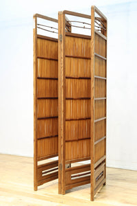 繊細な簾の造りをした風情ある背の高い四つ折り衝立 DC7552