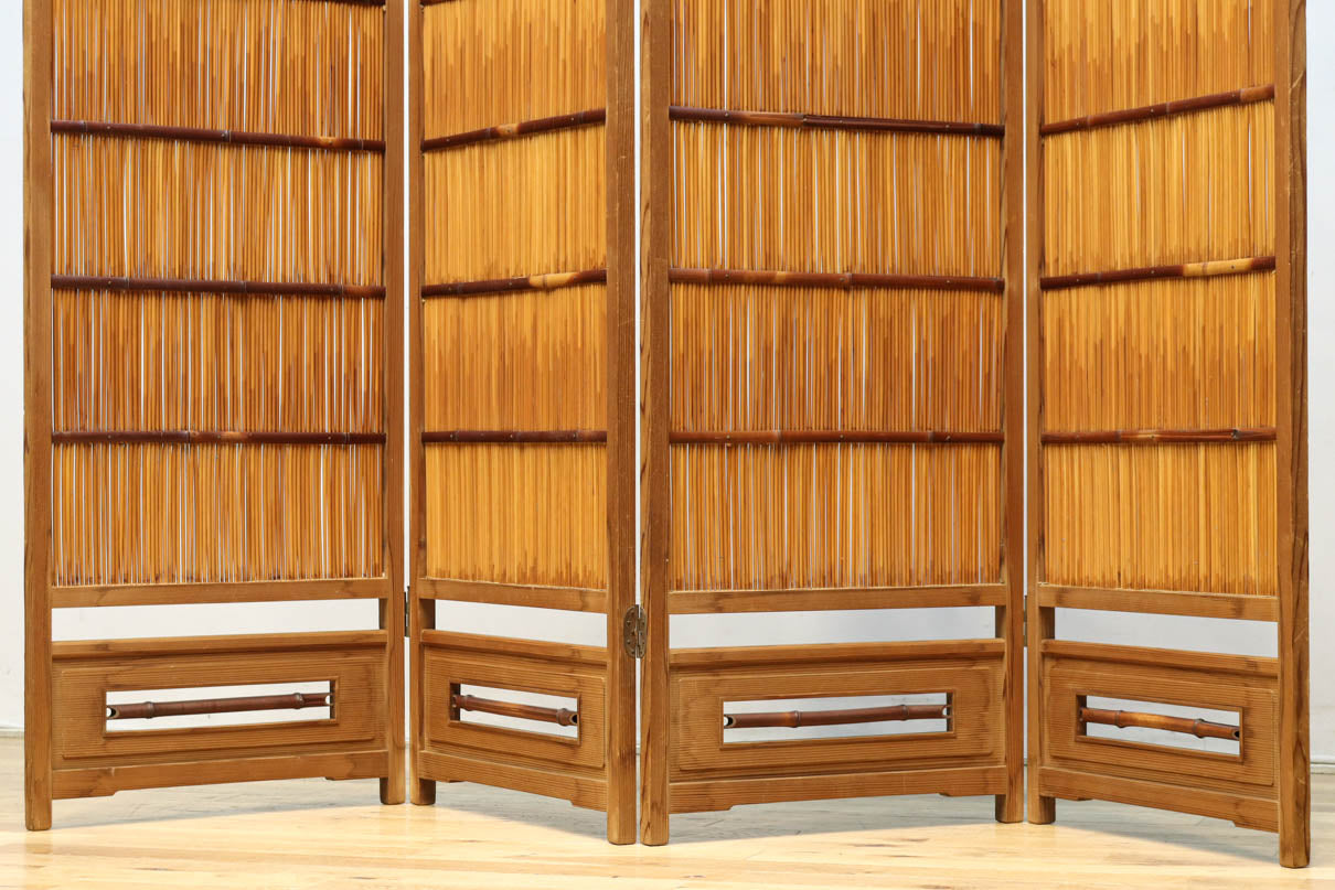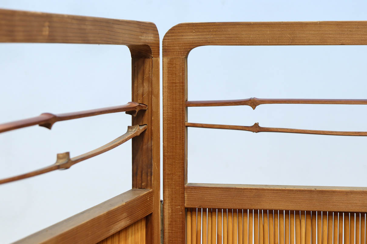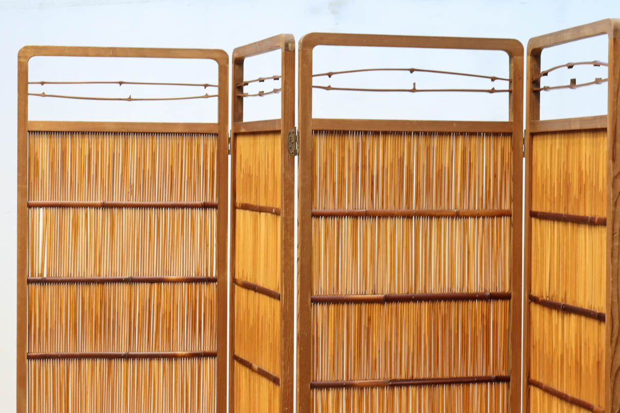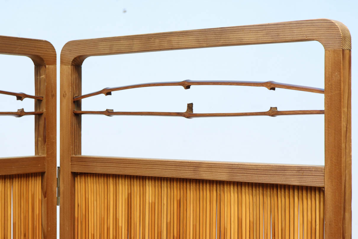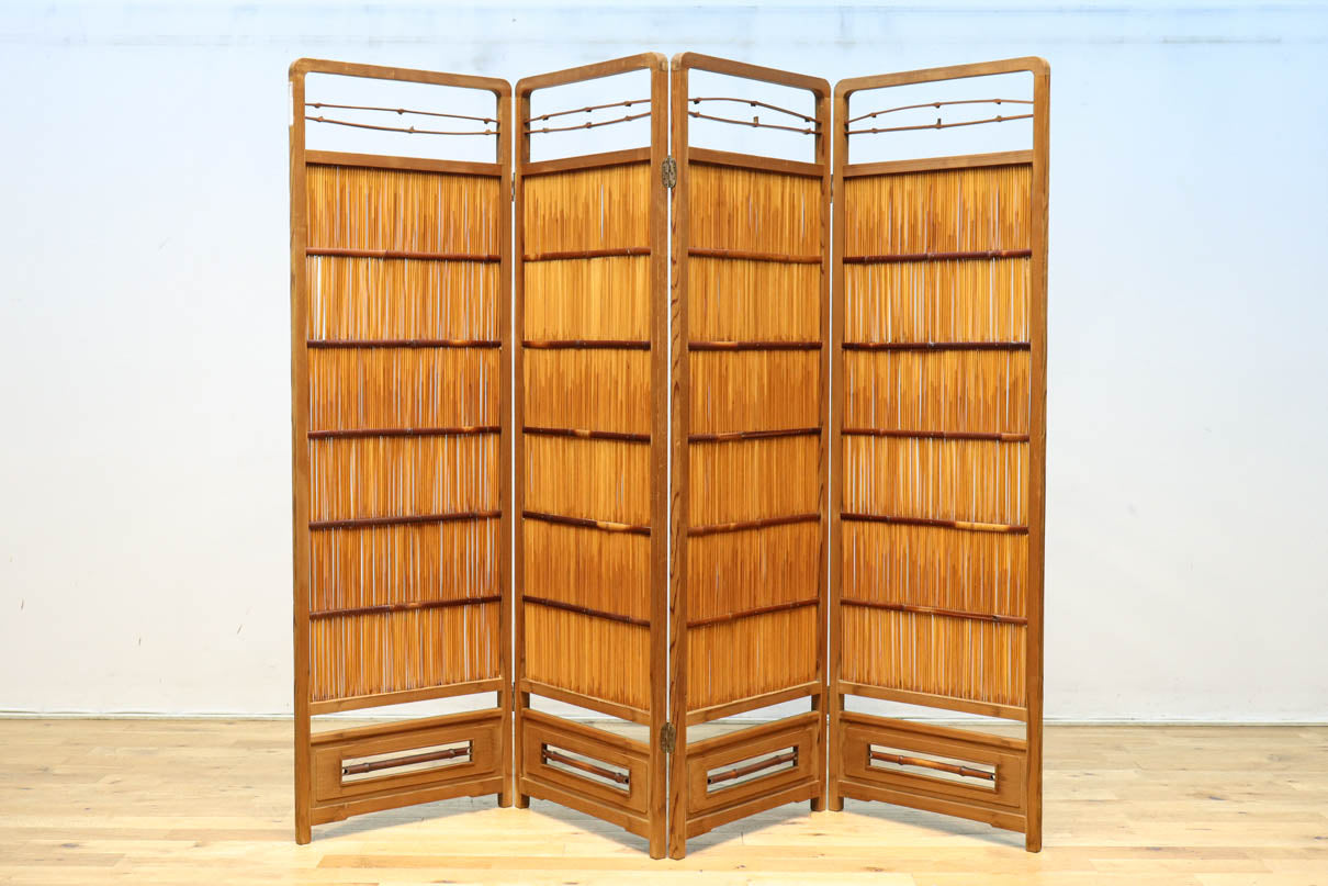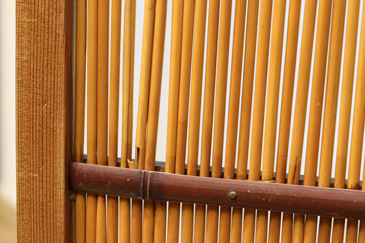 繊細な簾の造りをした風情ある背の高い四つ折り衝立 DC7552