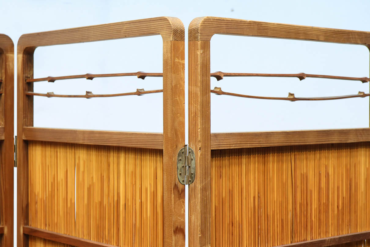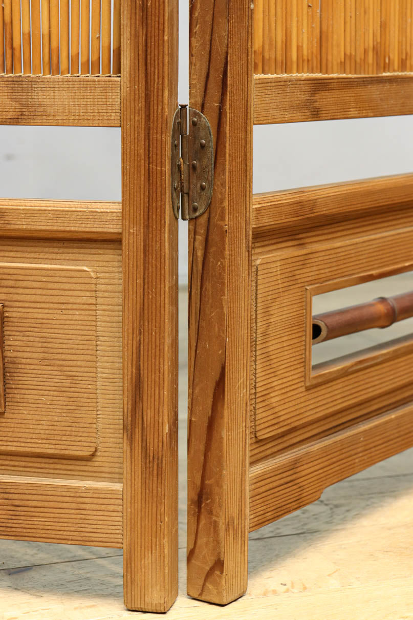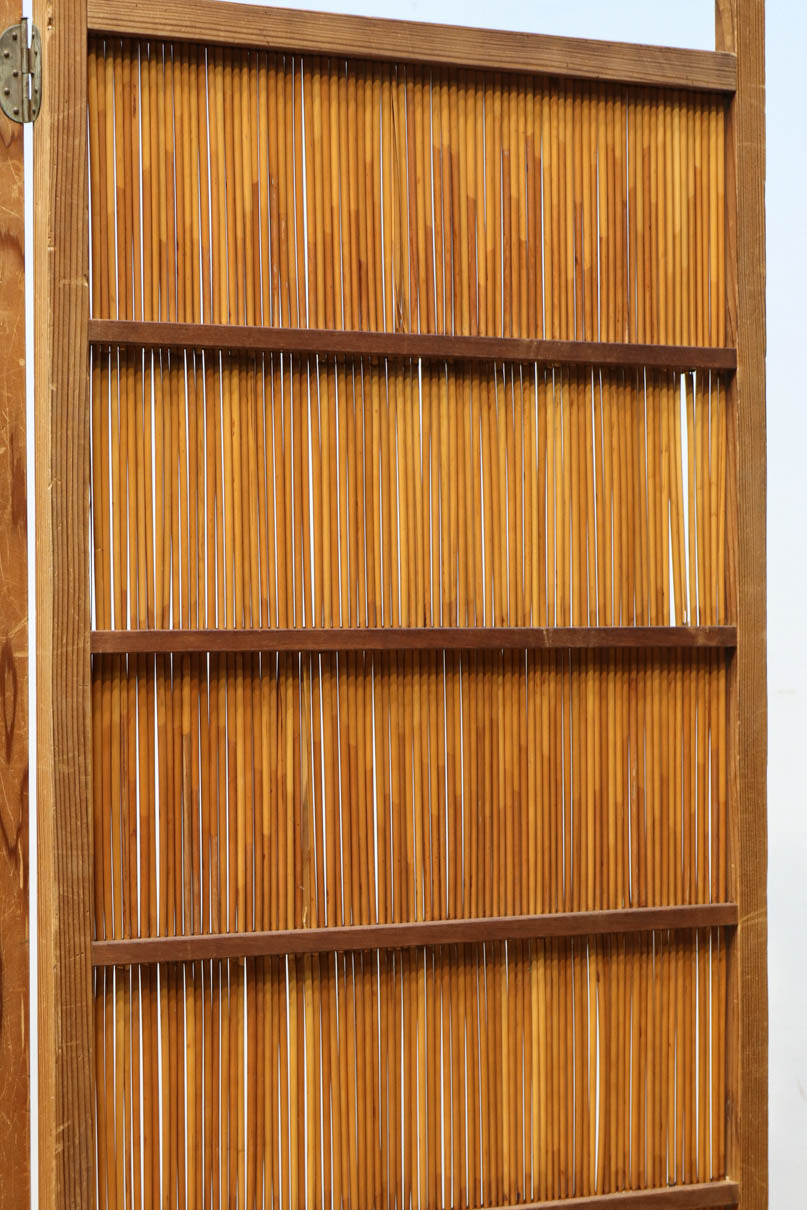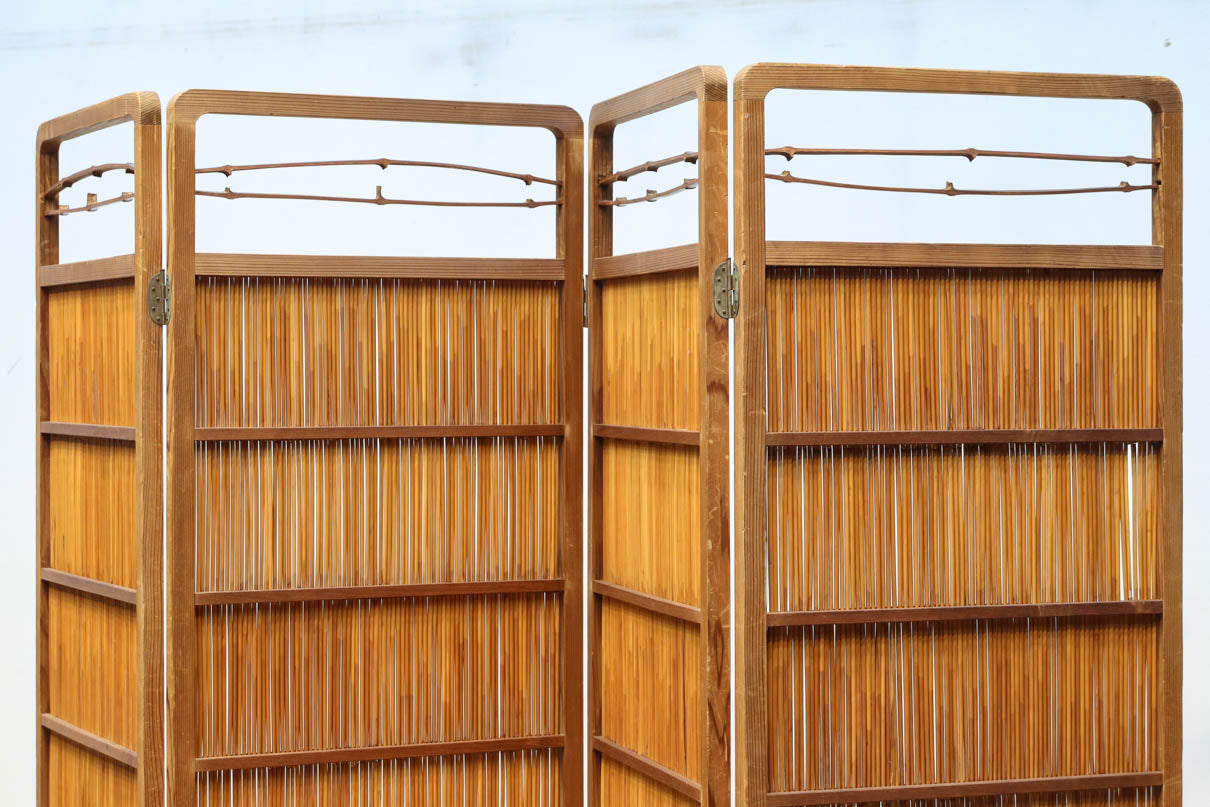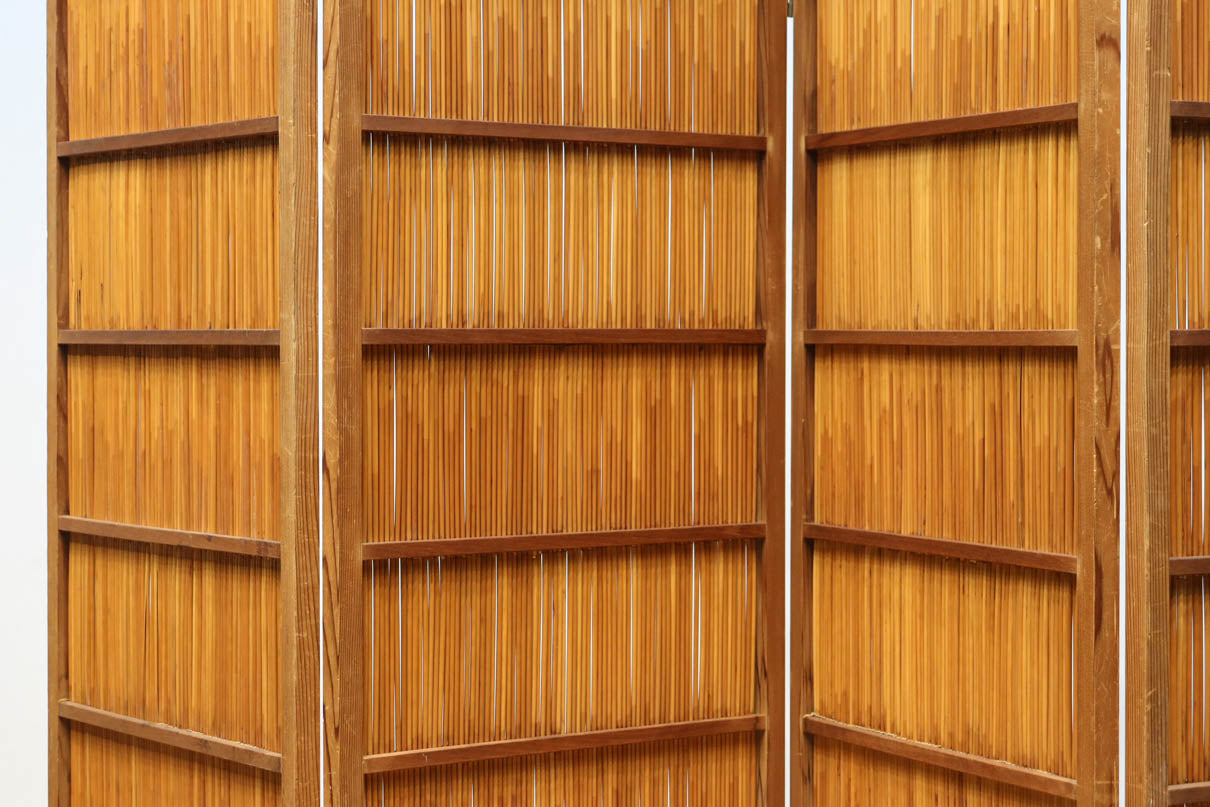 繊細な簾の造りをした風情ある背の高い四つ折り衝立 DC7552
