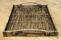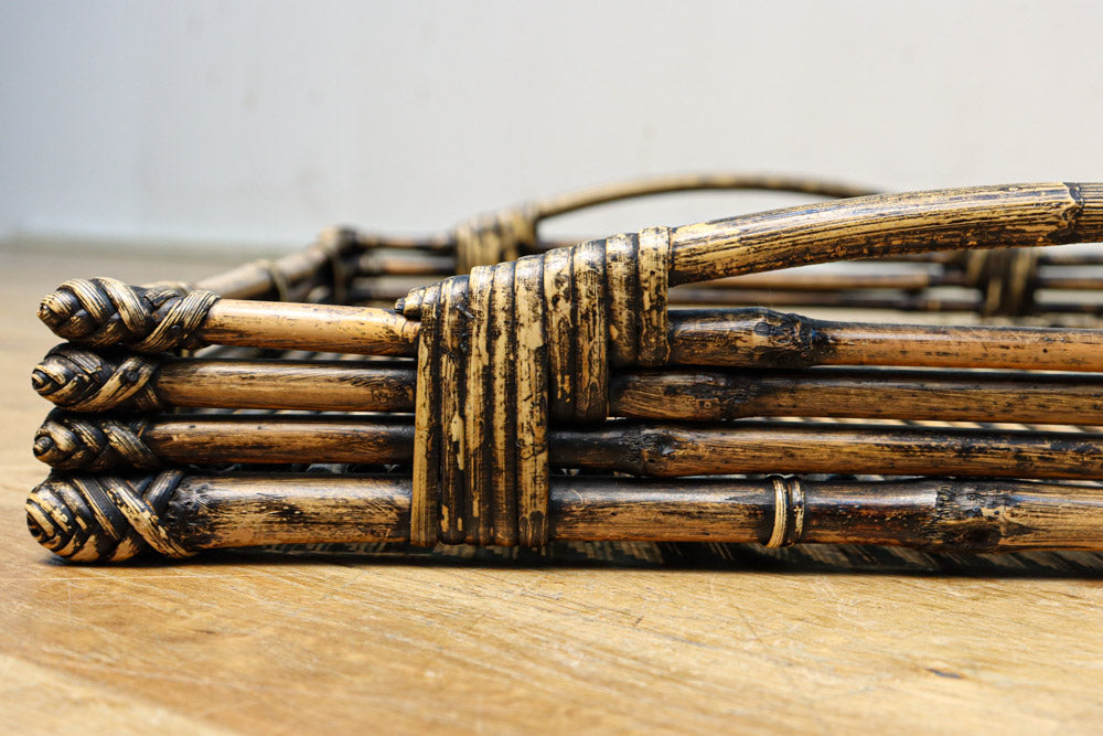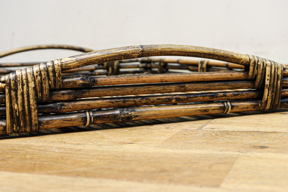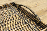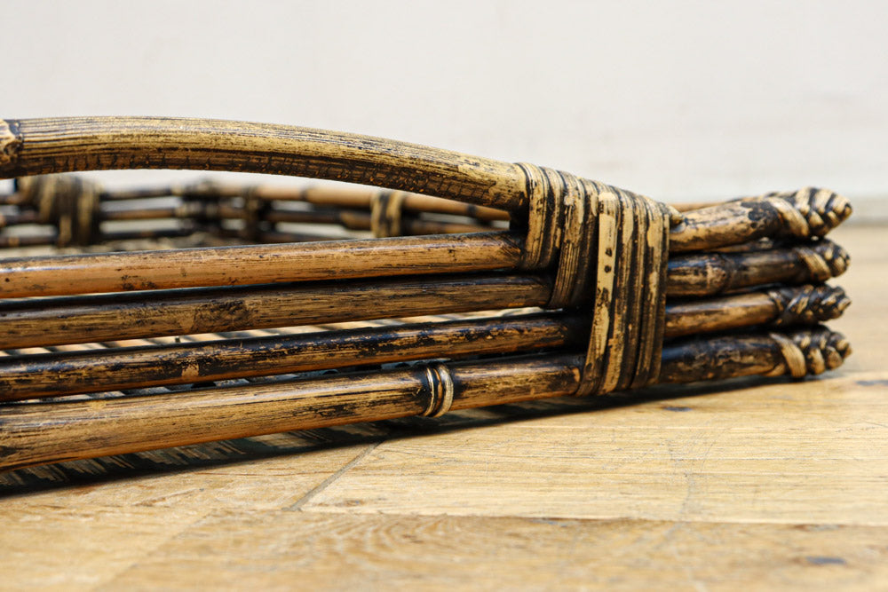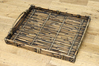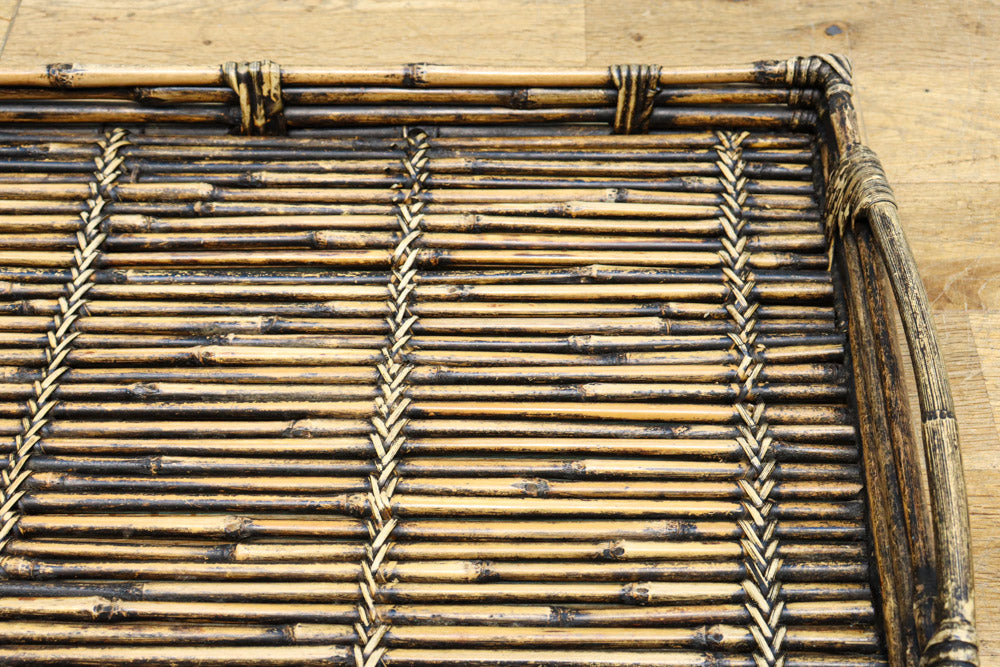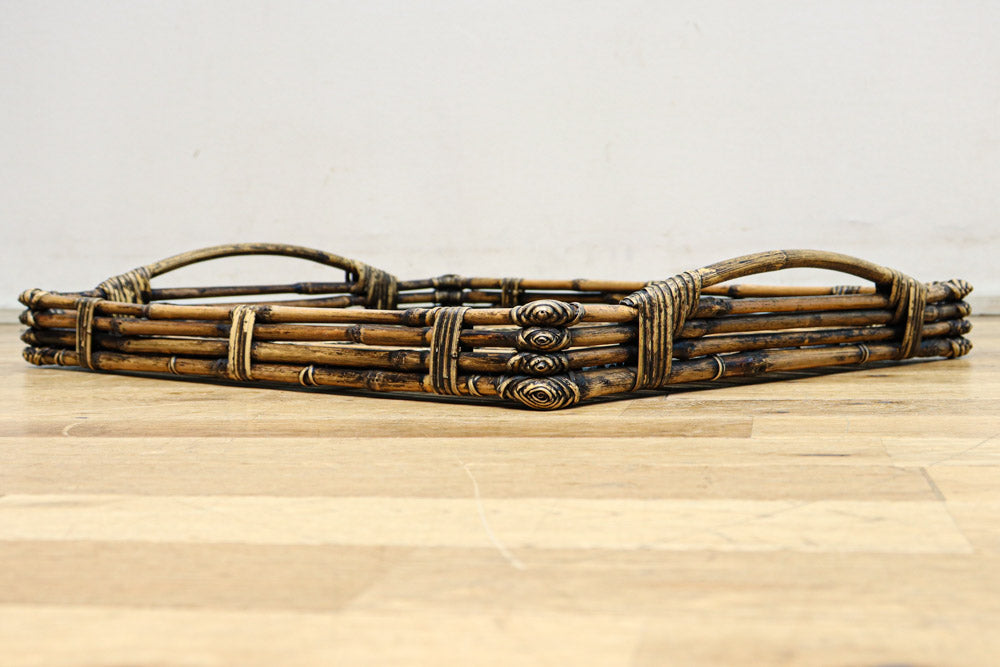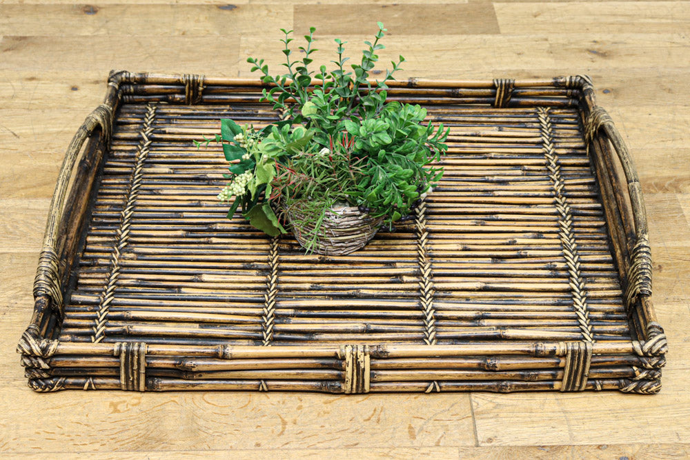 持ち手付きのトレーとしてや花器などと一緒に飾るディスプレイにいかがでしょうか。