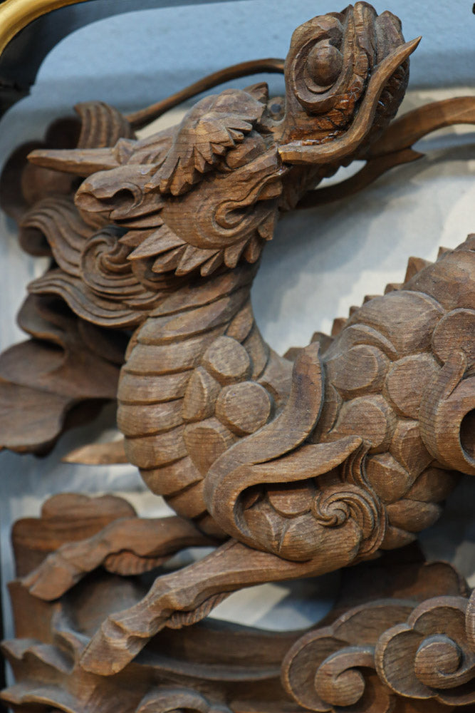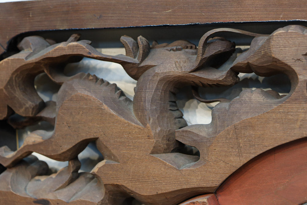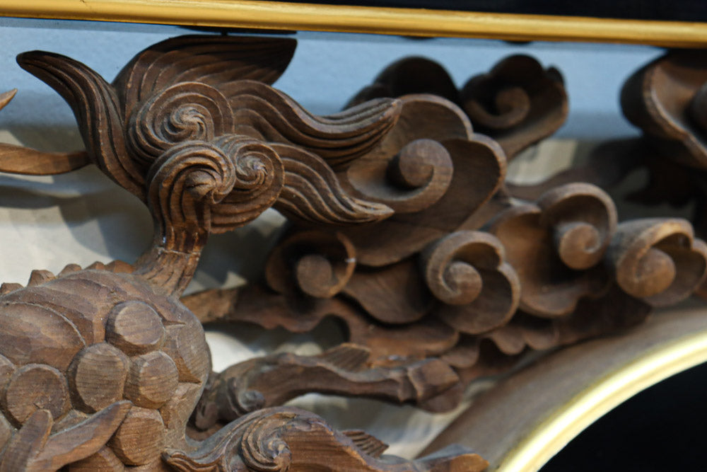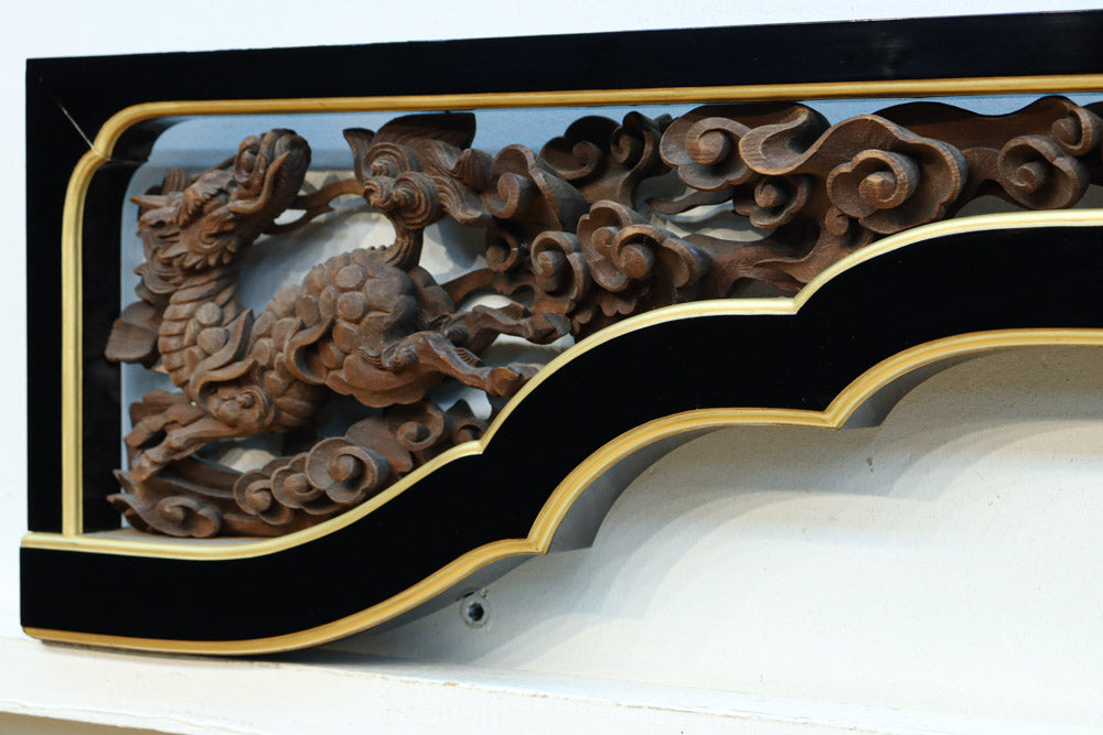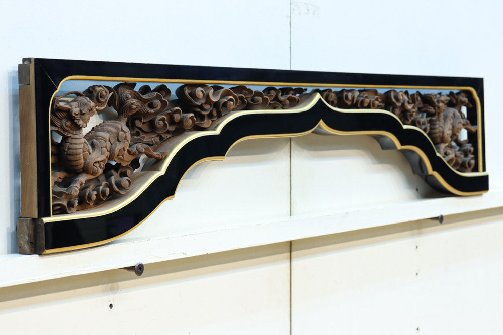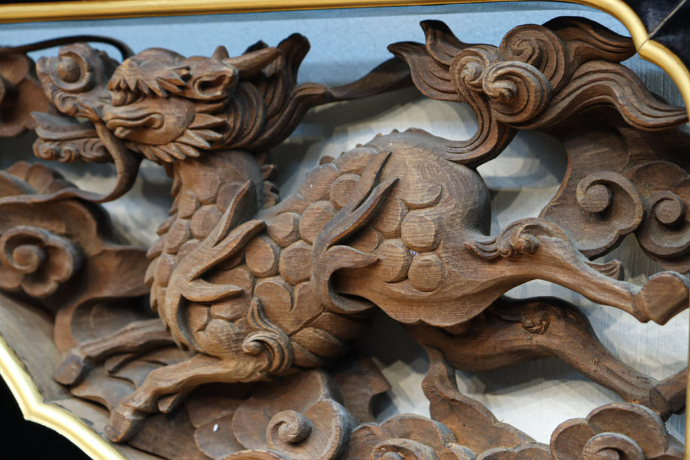 力強さ溢れる麒麟の漆を纏う上質な彫刻梁飾り DC7698