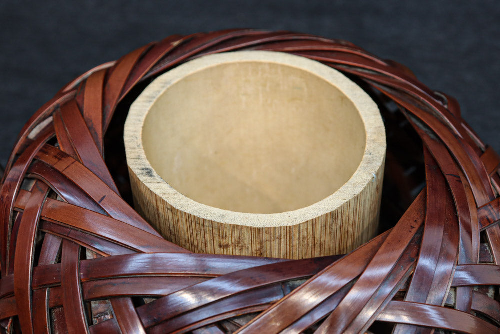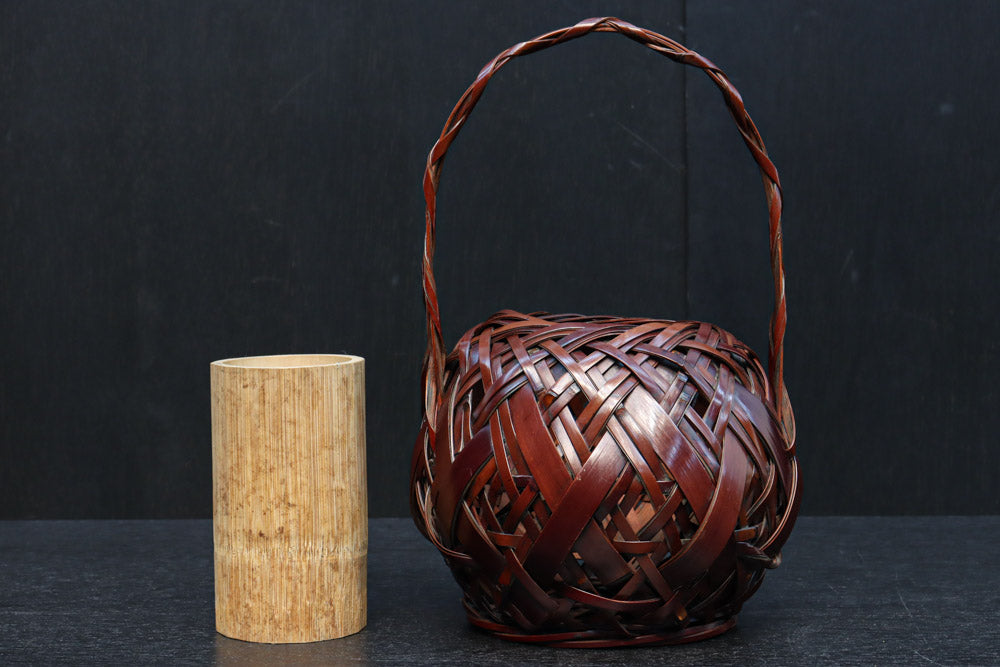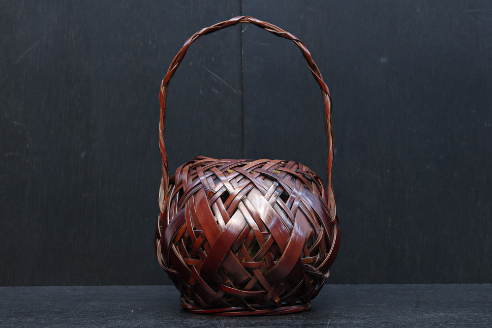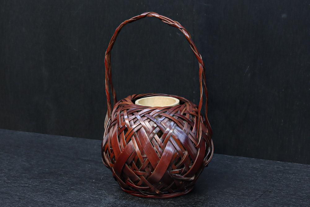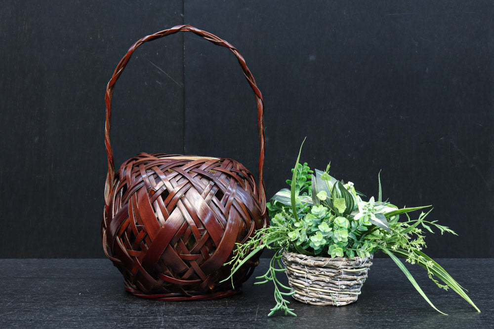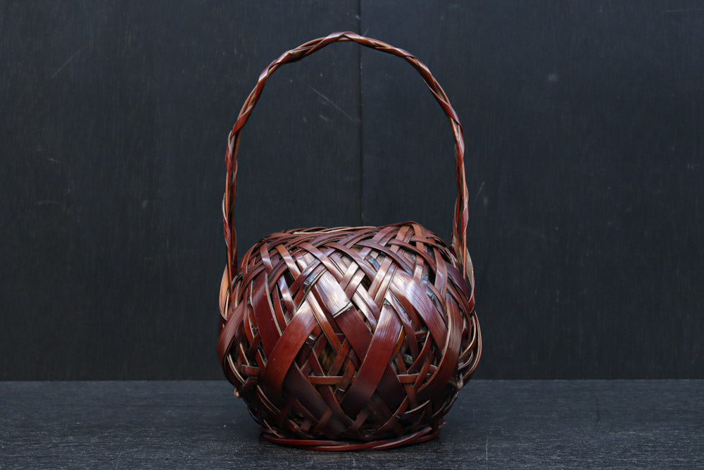 朱の艶やかな色彩が美しい持ち手付き花カゴ DC7707