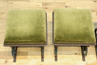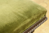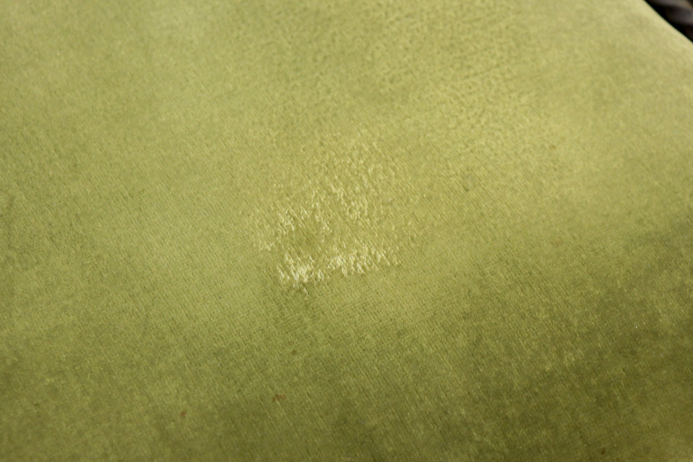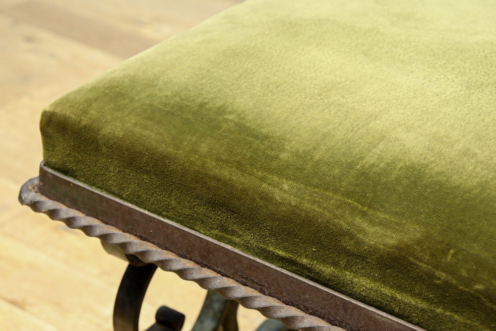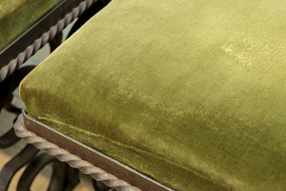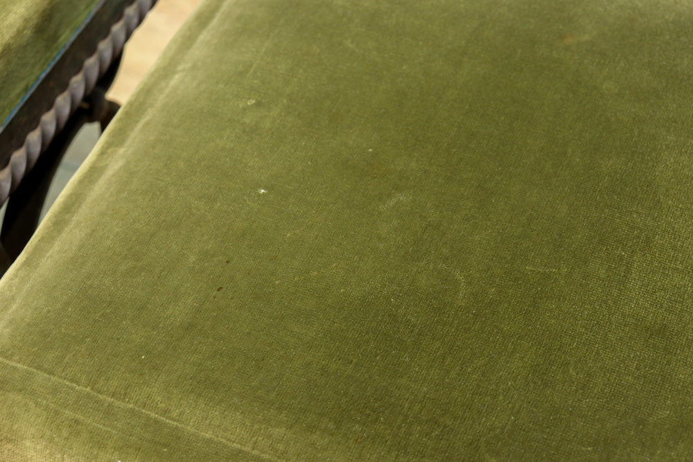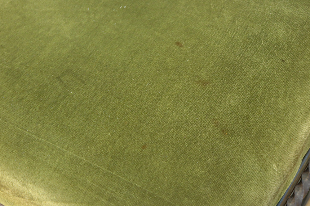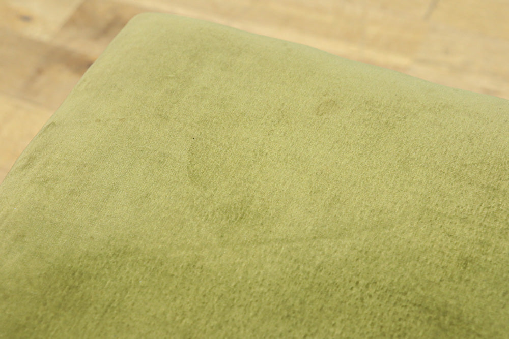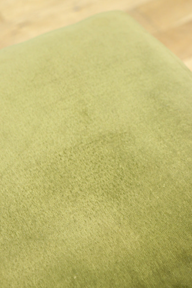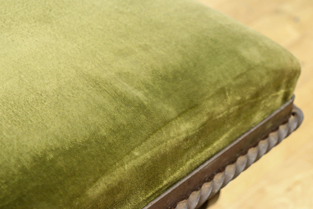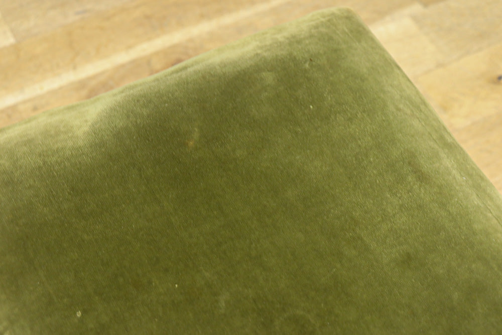淡い緑の布の座面はふかふかで緩く弾力があり