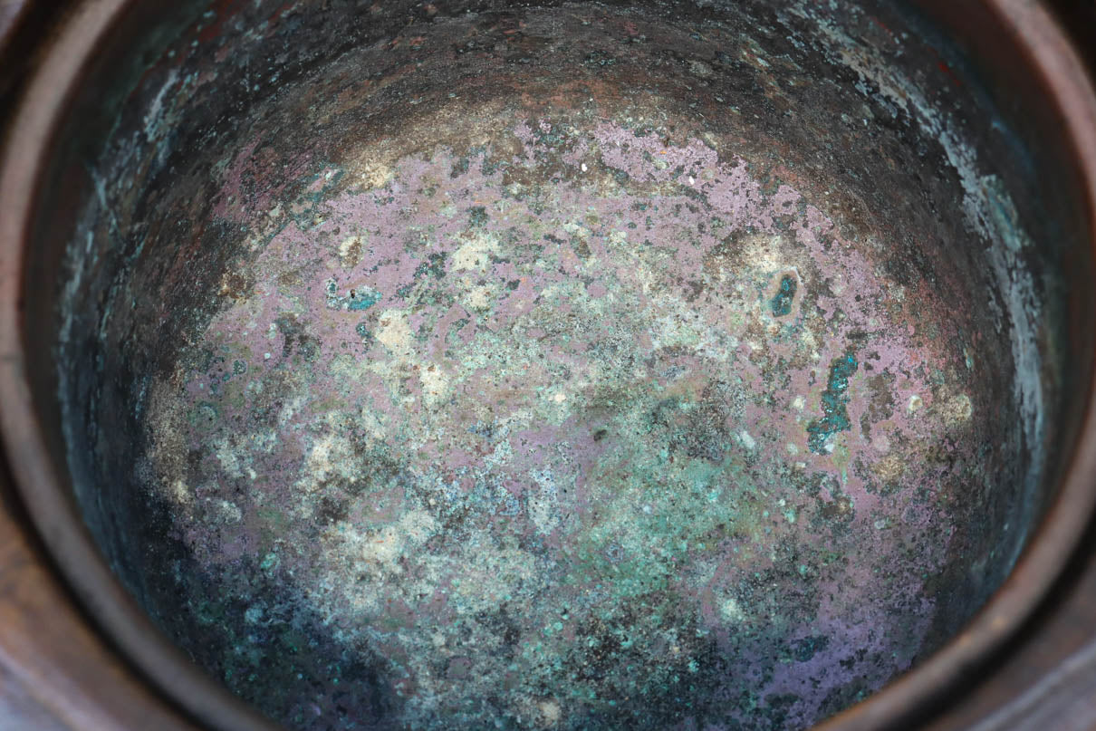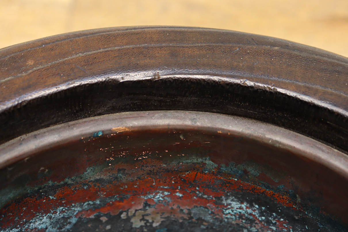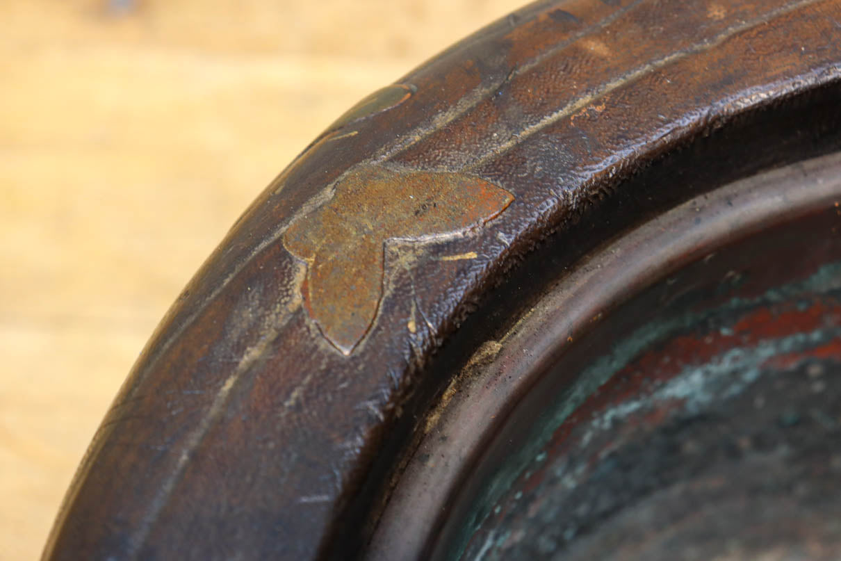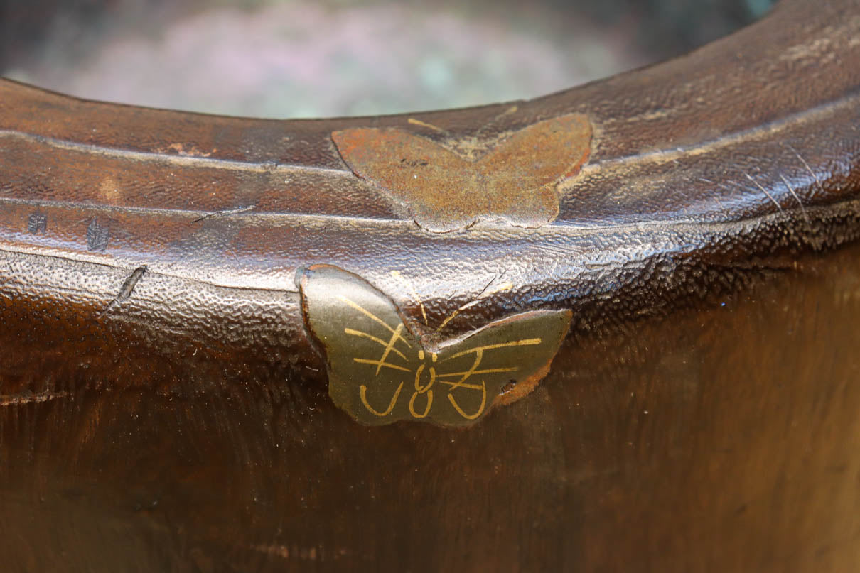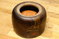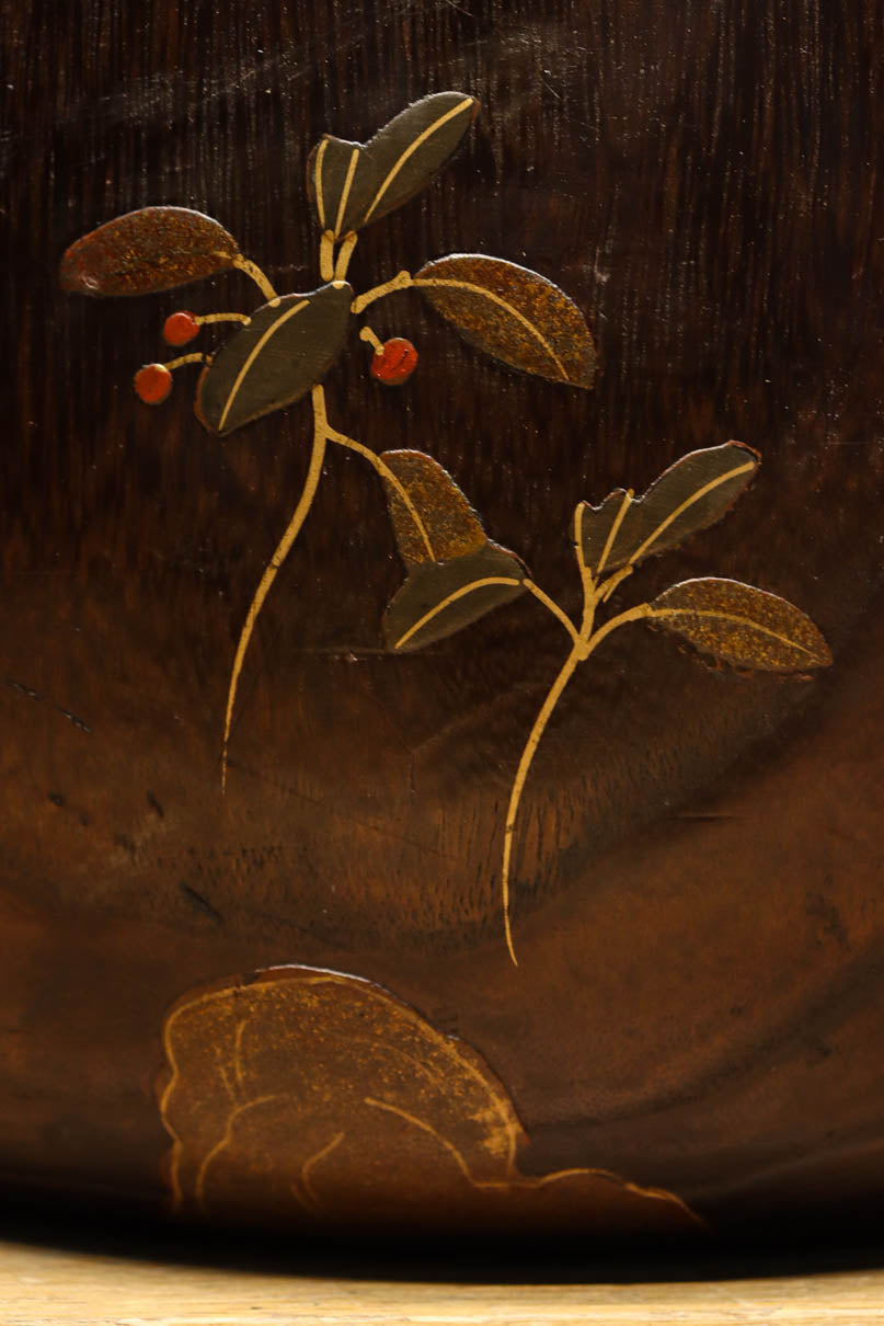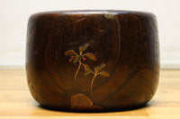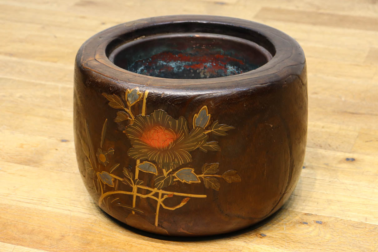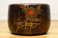 光沢感ある古色の色合いに蒔絵が映える丸火鉢 DC7735