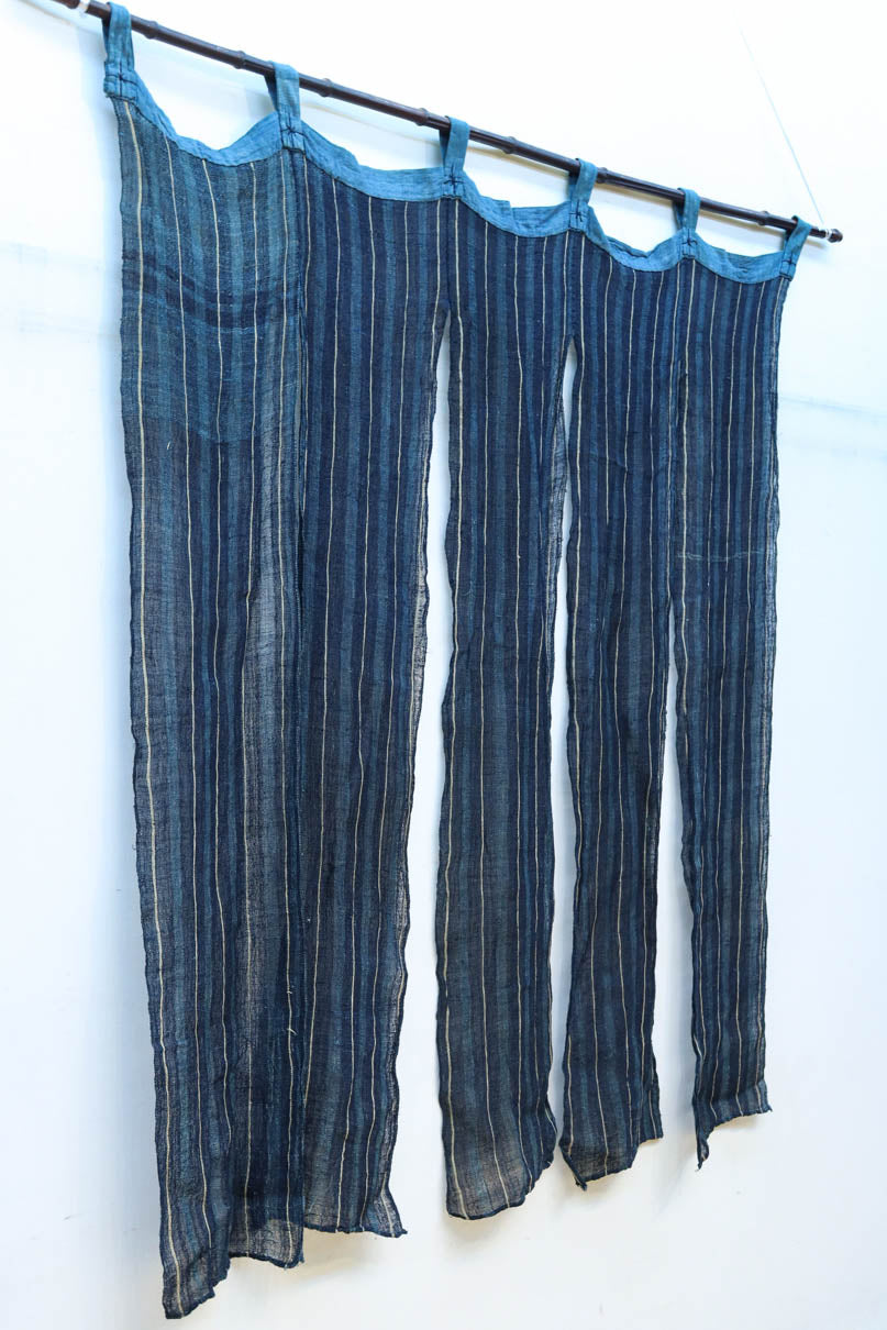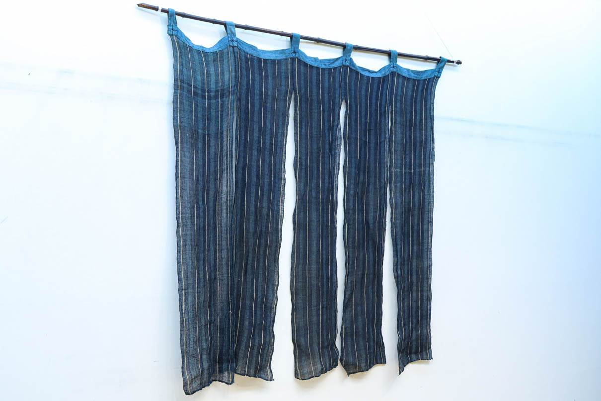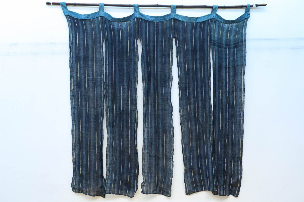 藍色のストライプ柄で涼し気な麻の暖簾 DC7769