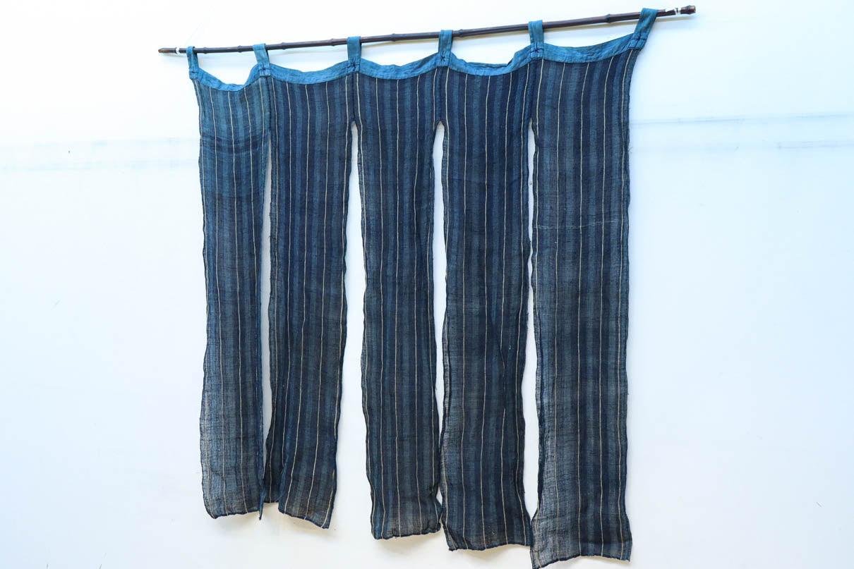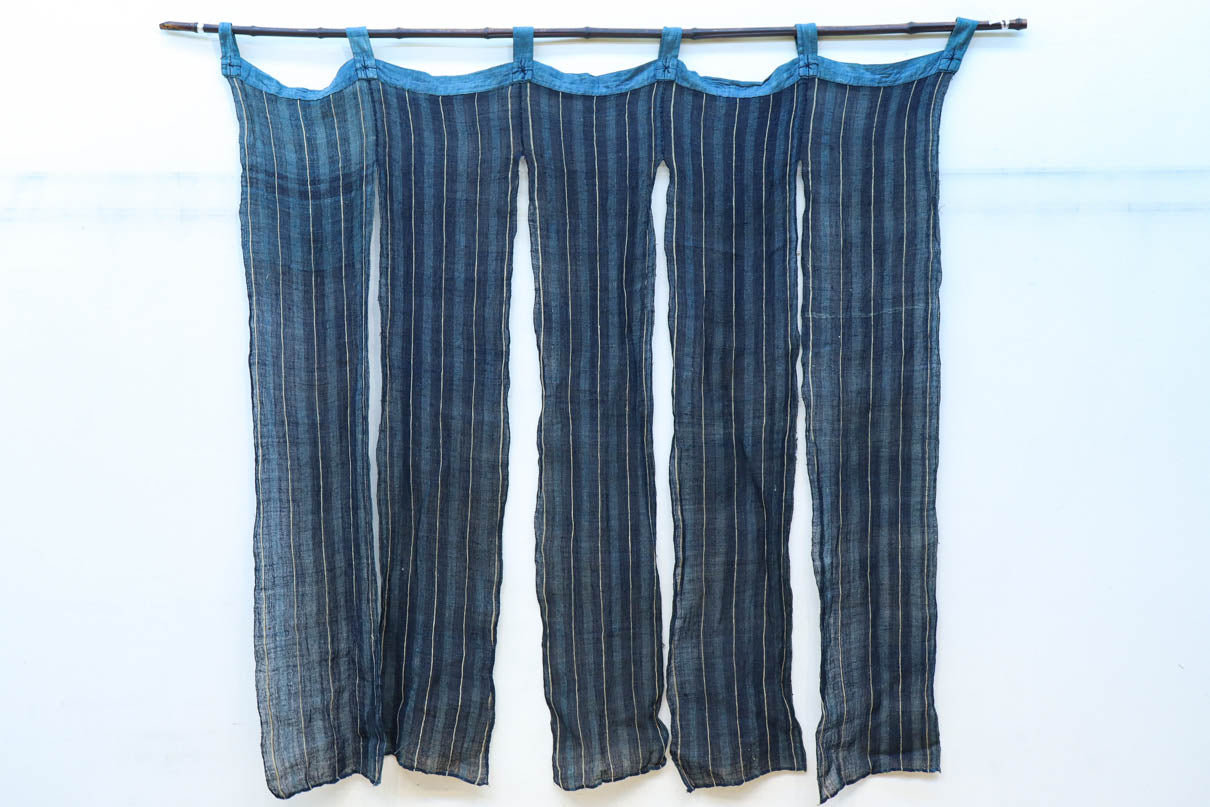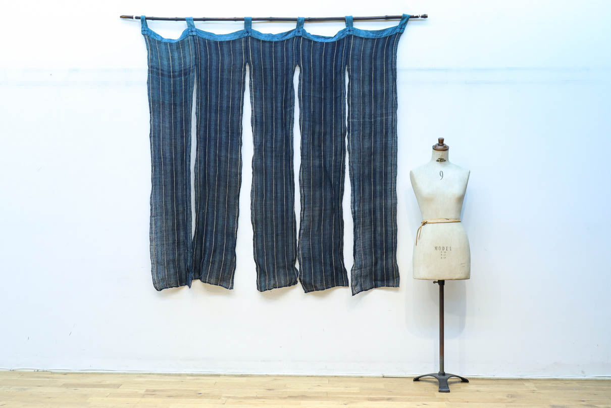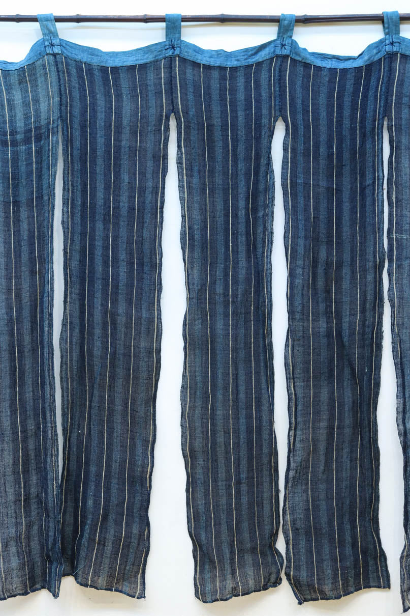 藍色のストライプ柄で涼し気な麻の暖簾 DC7769