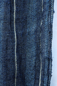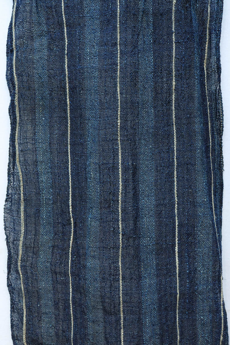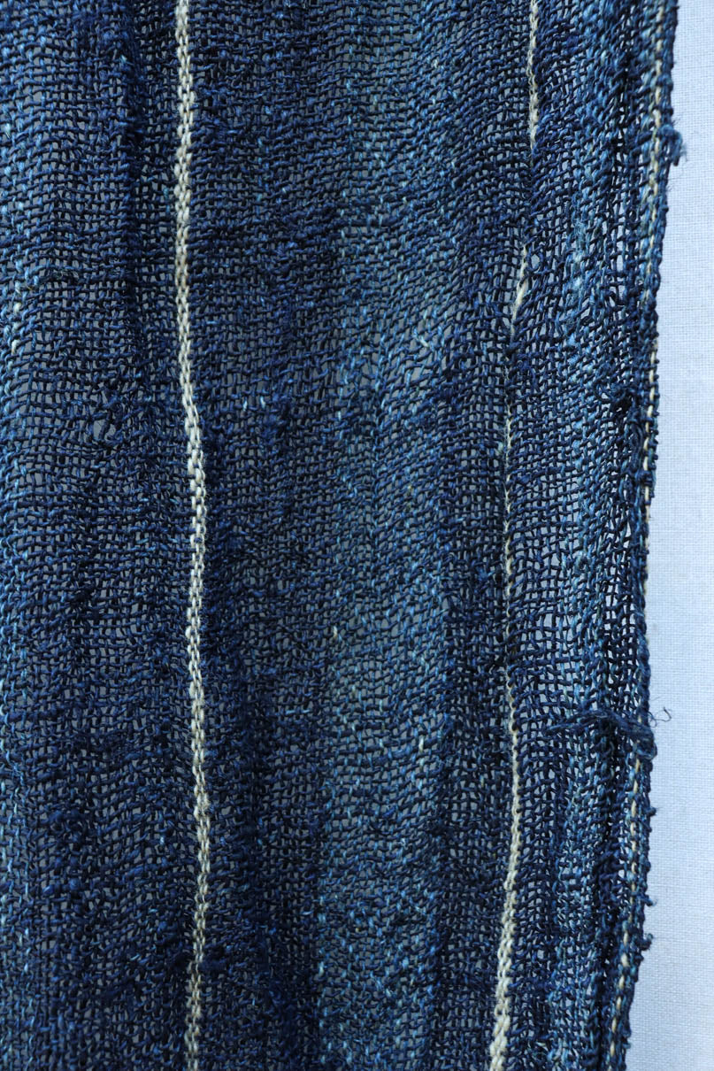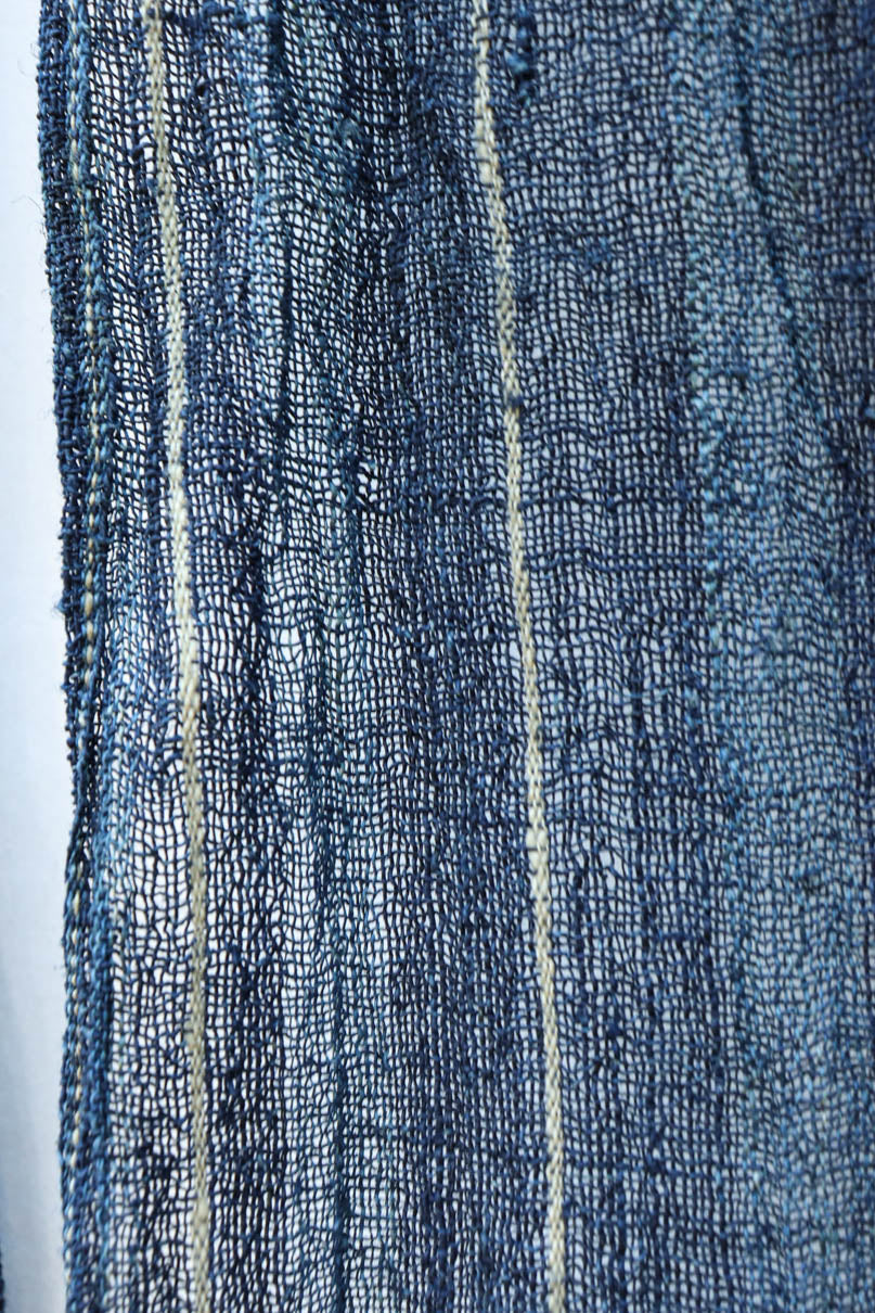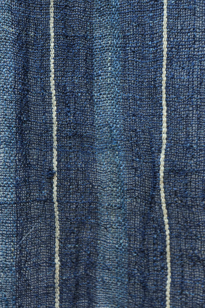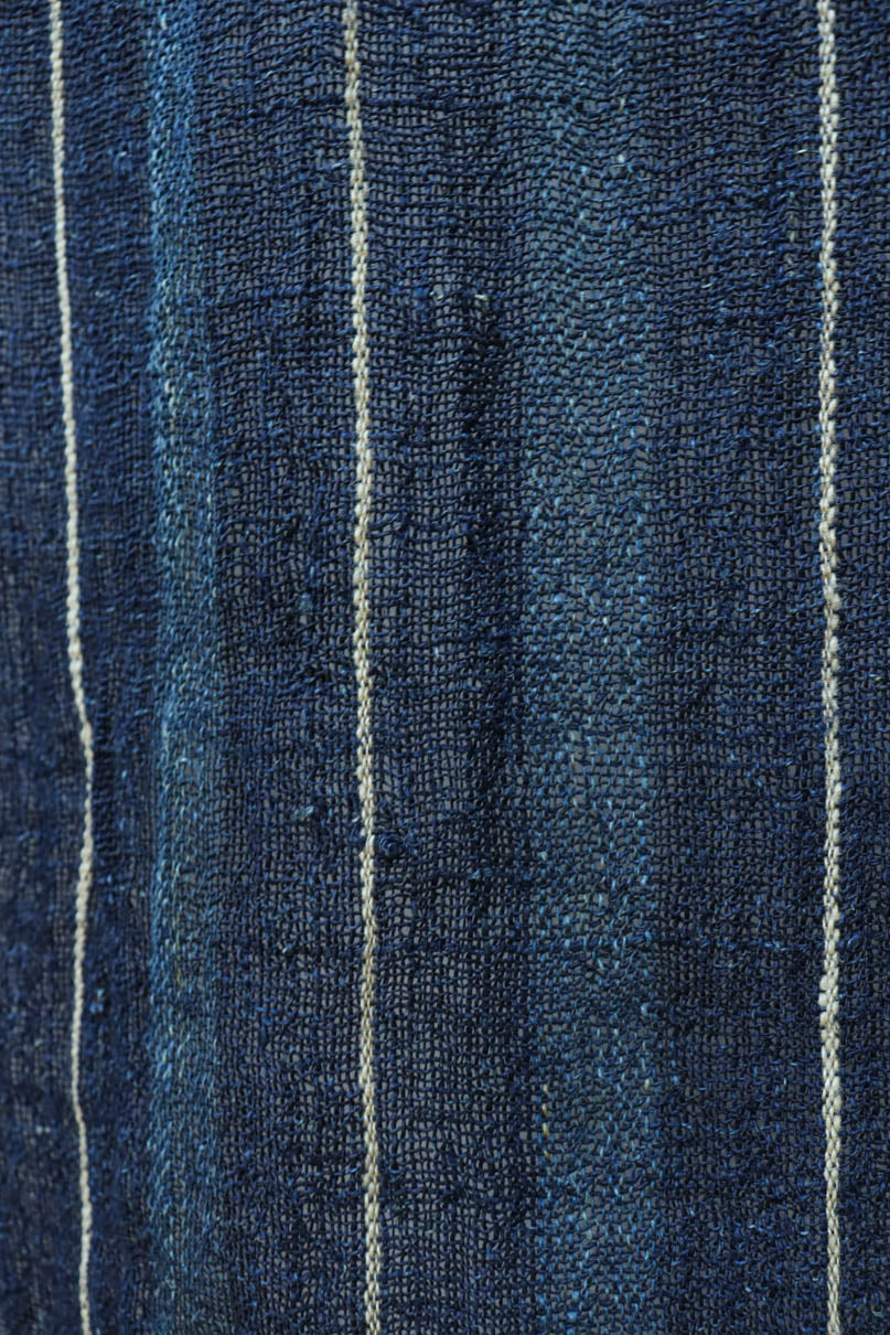 藍色の濃淡によるトライプ模様が麻素材の透け感とともに