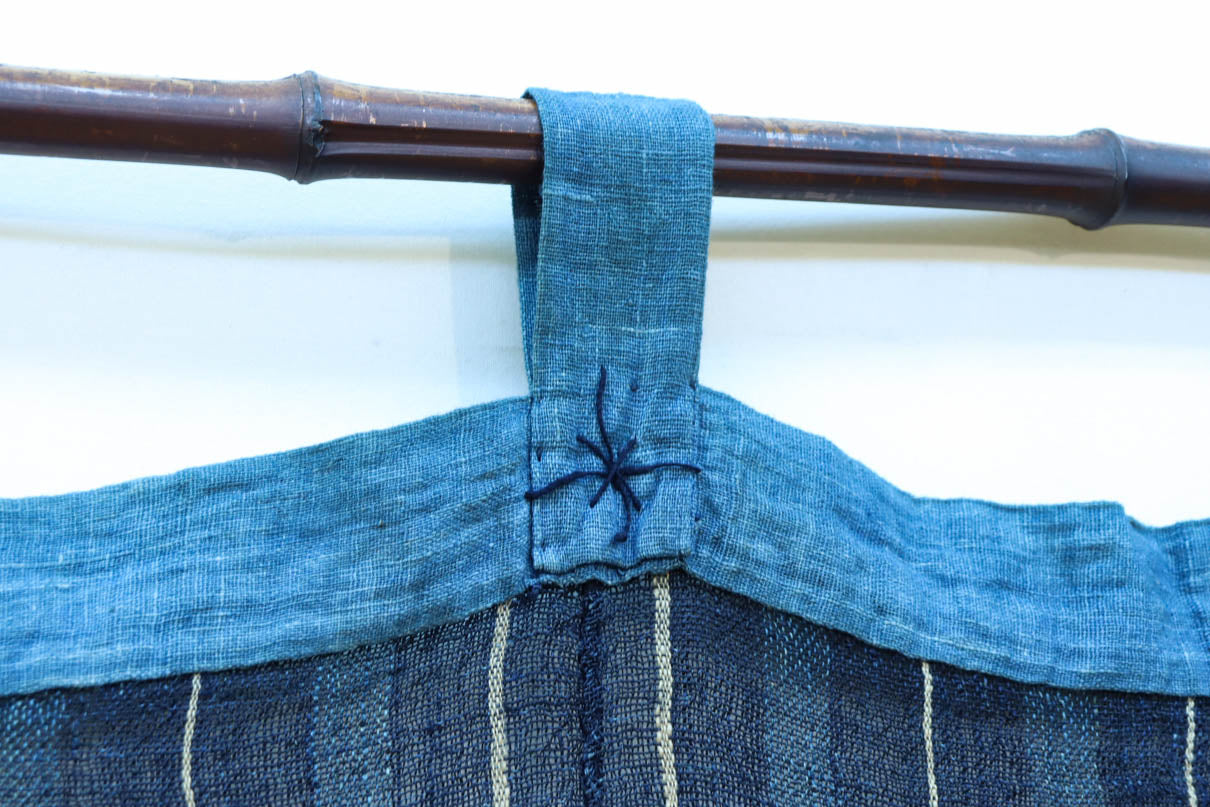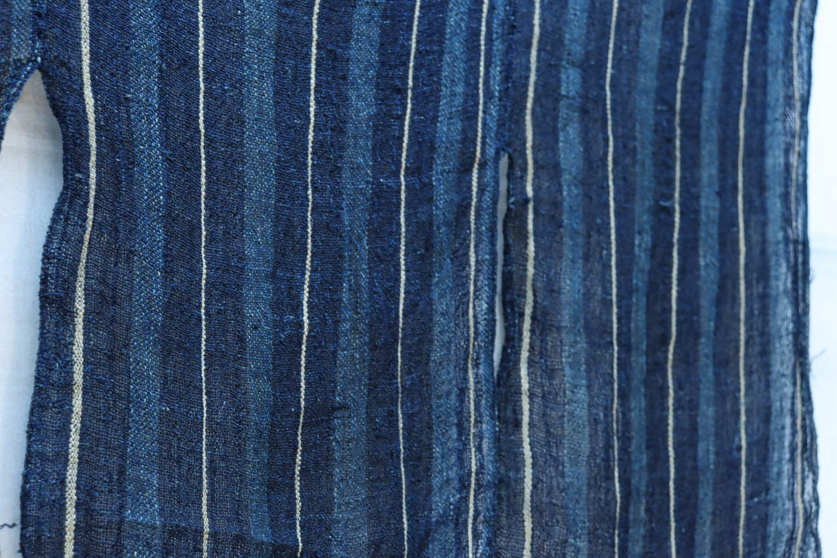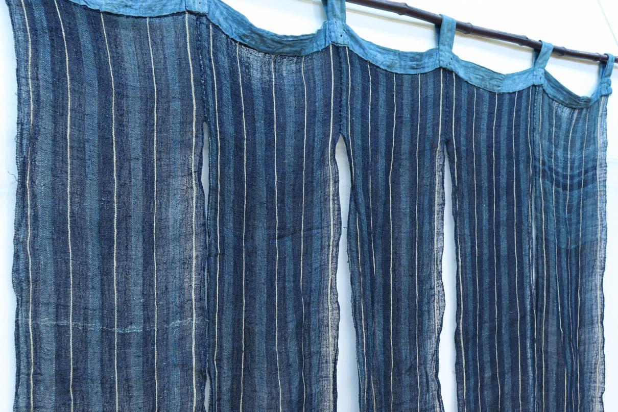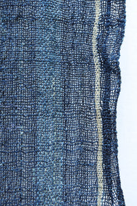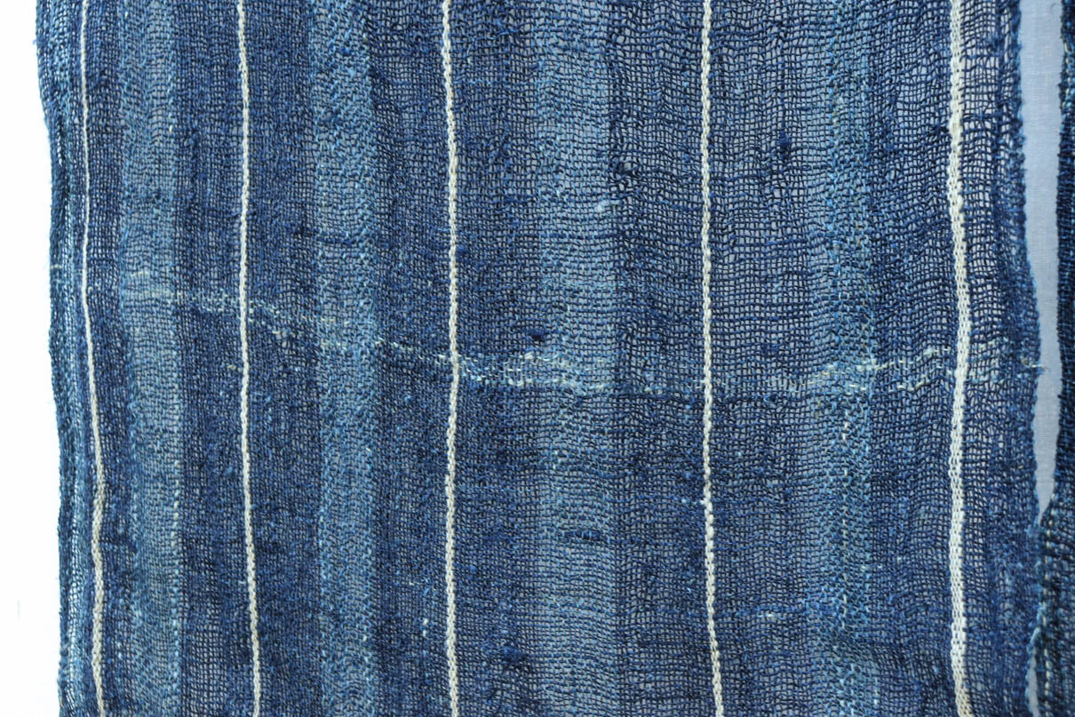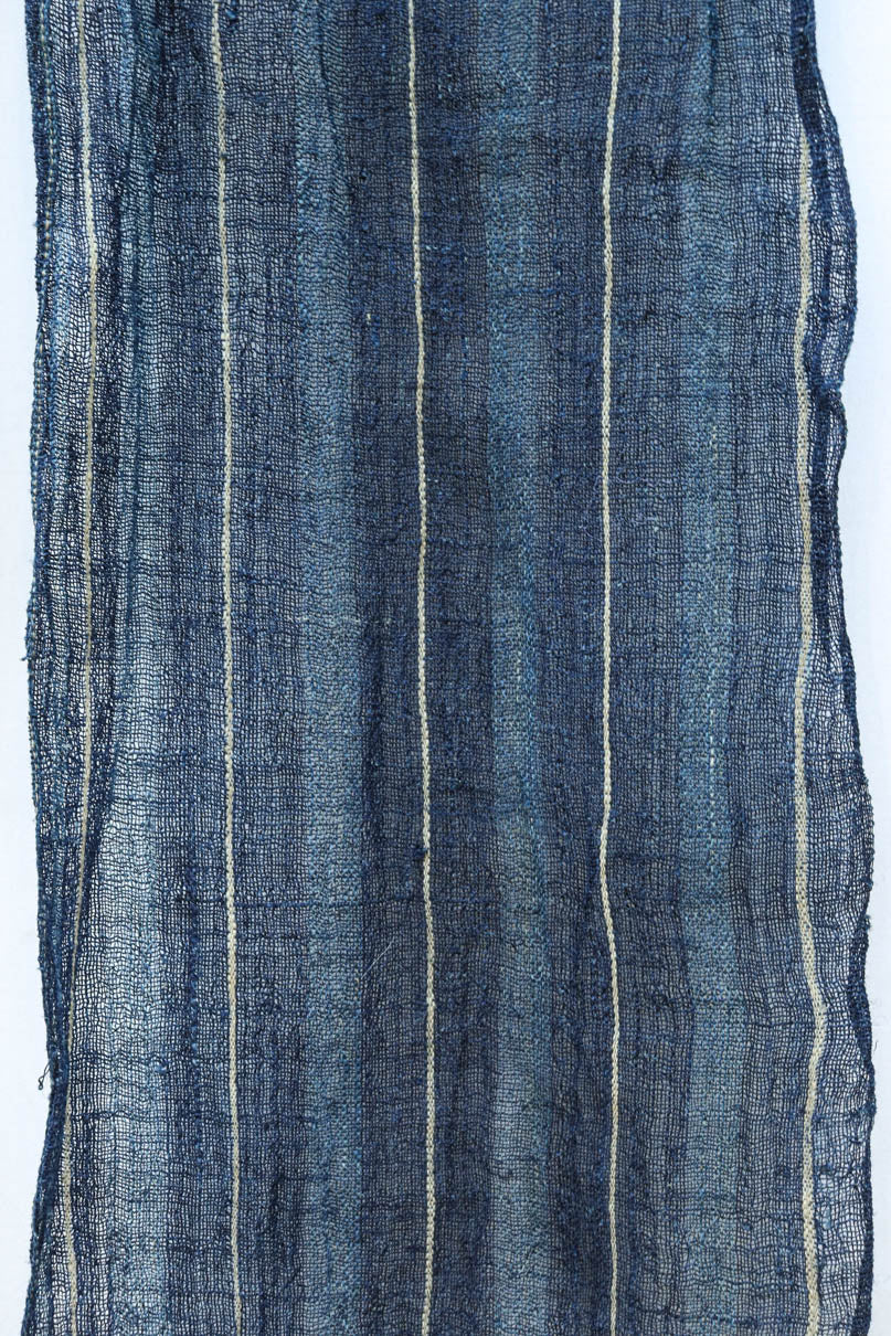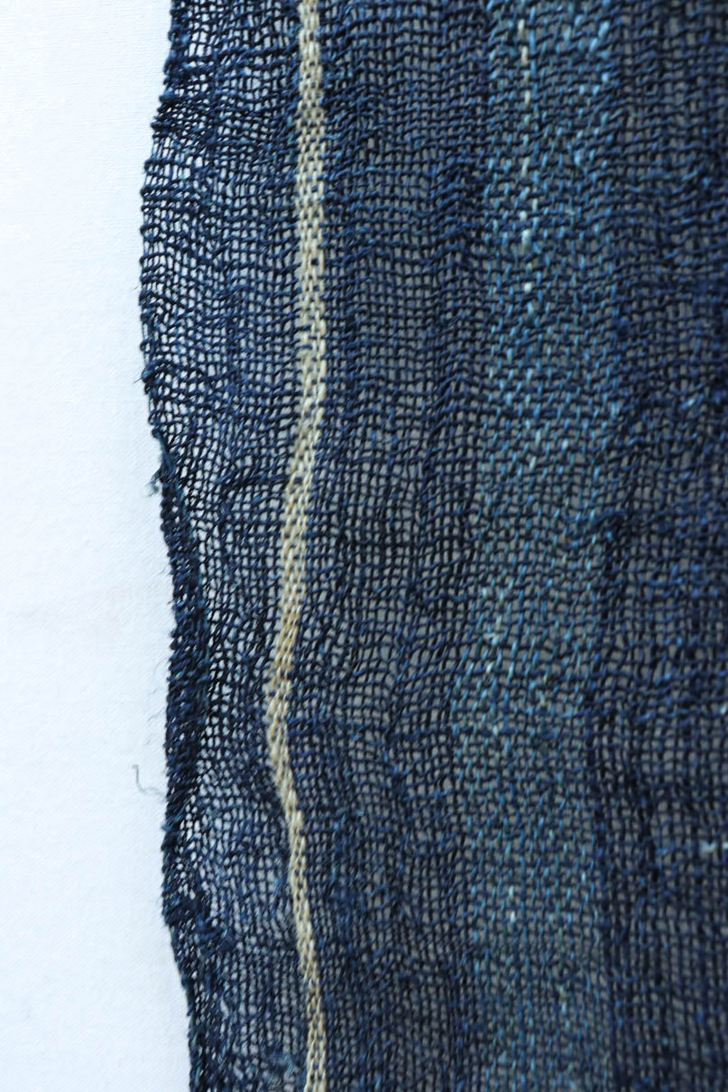 藍色の濃淡によるトライプ模様が麻素材の透け感とともに