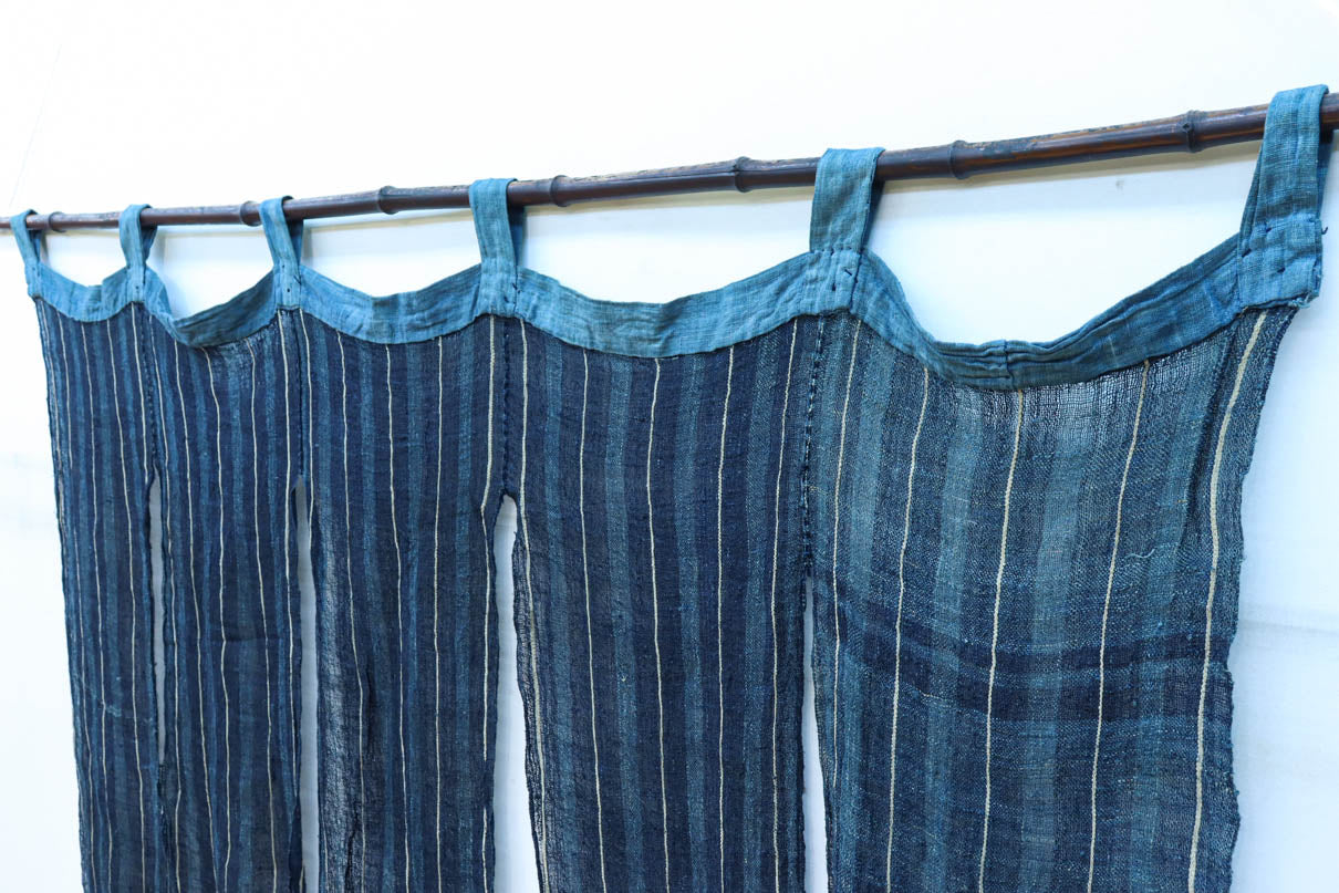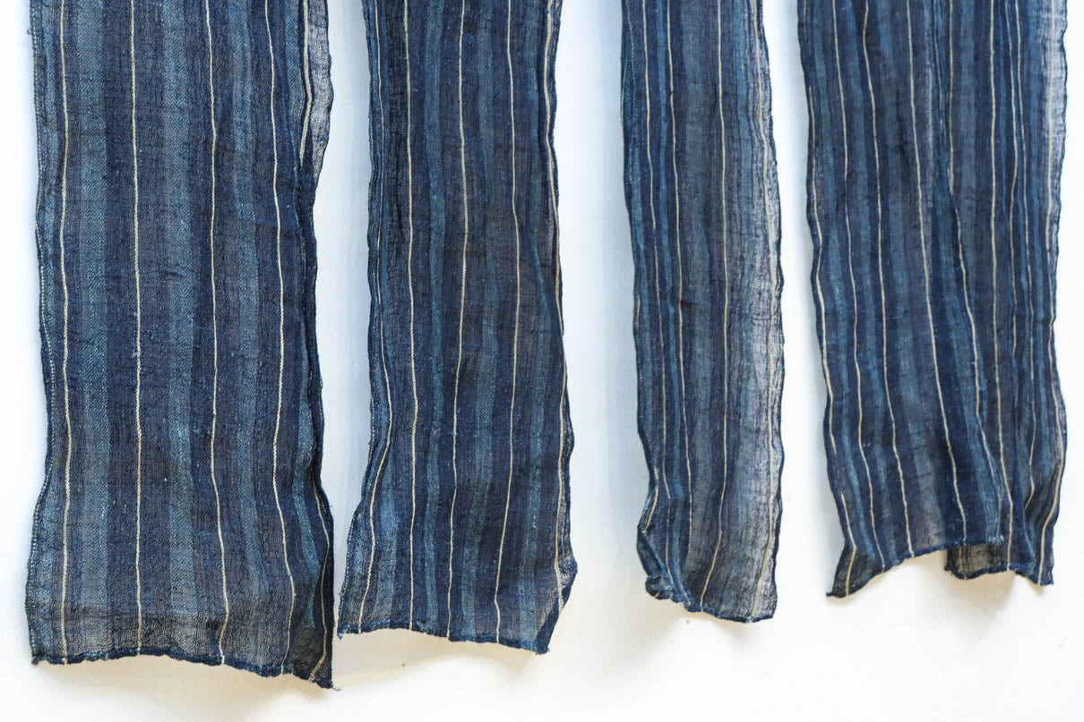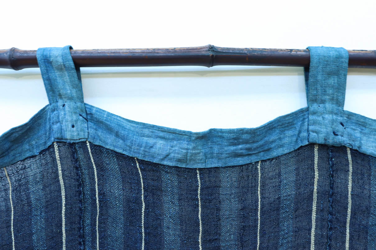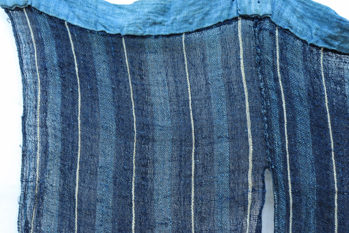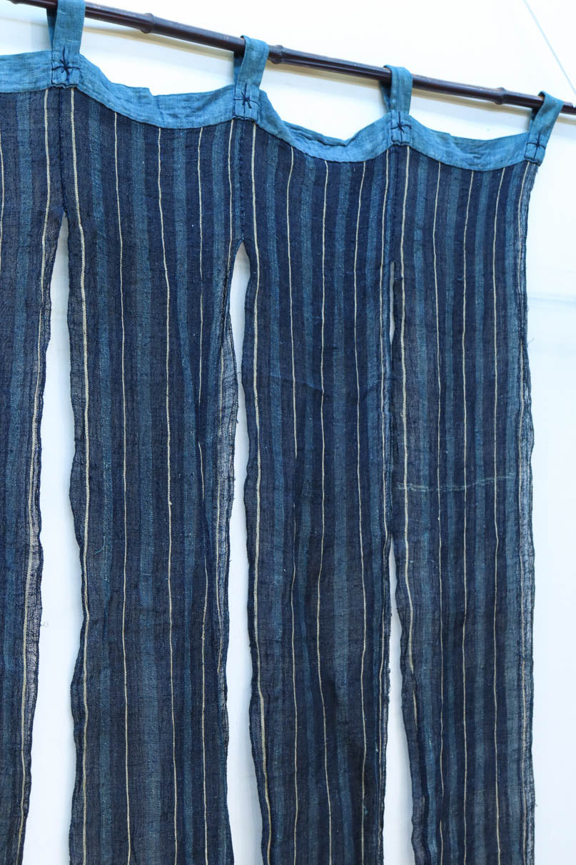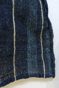 藍色の濃淡によるトライプ模様が麻素材の透け感とともに