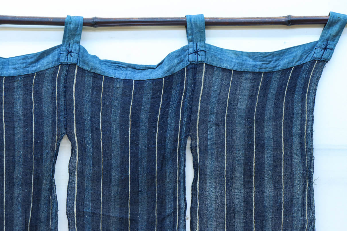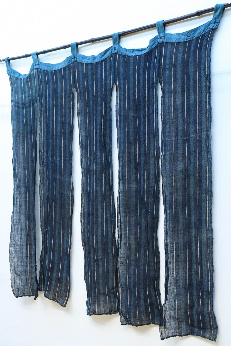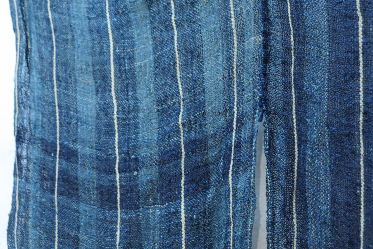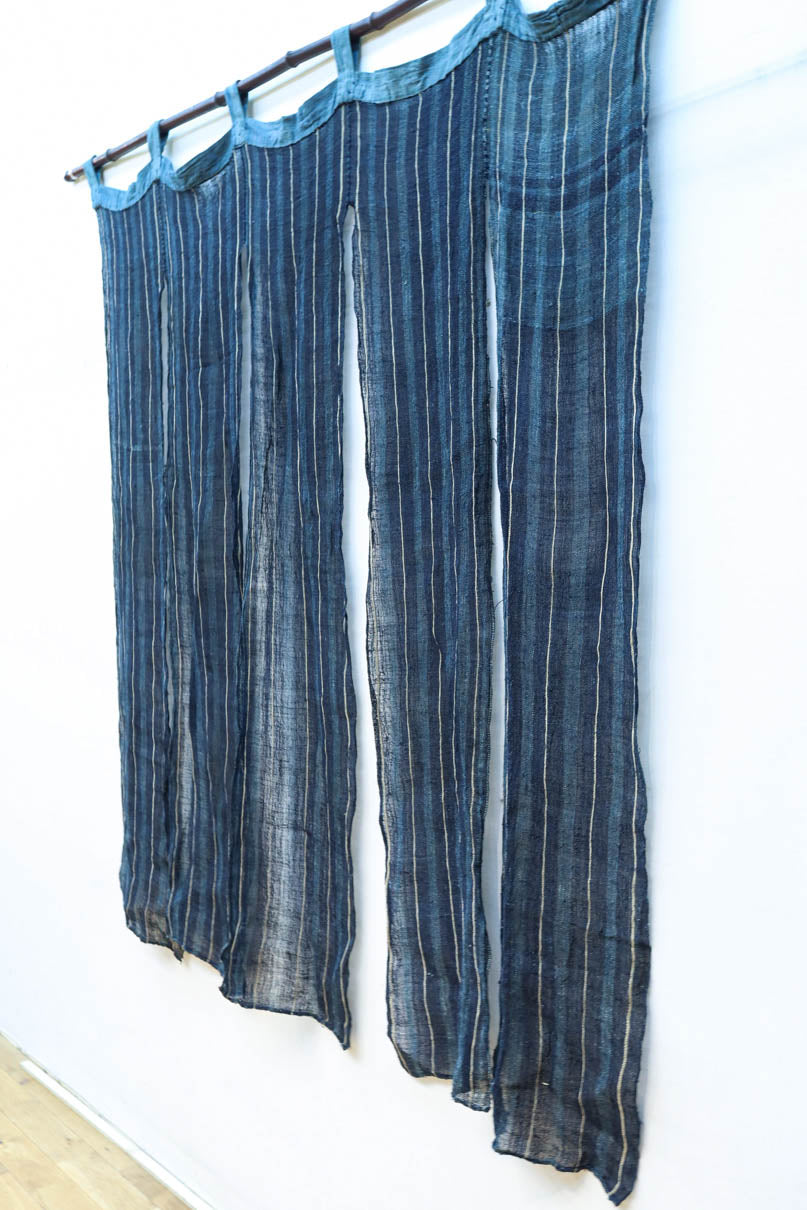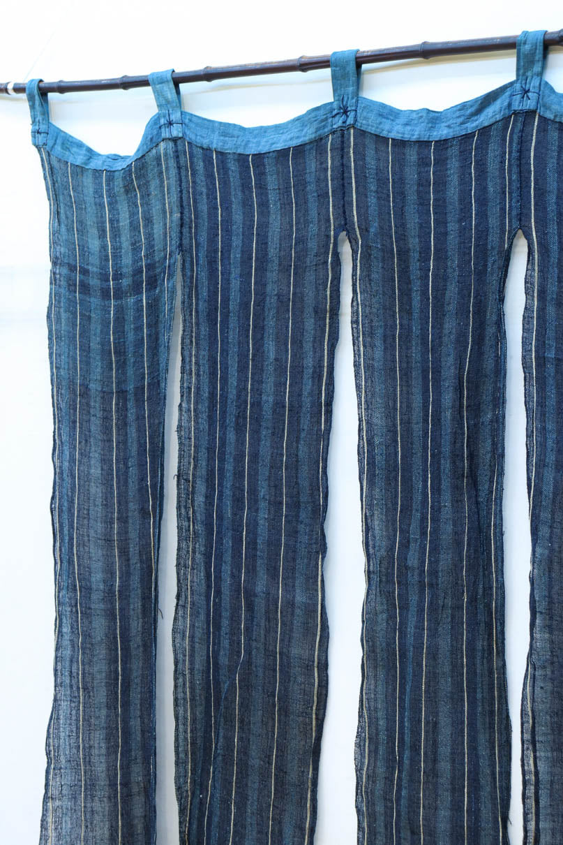 藍色の濃淡によるトライプ模様が麻素材の透け感とともに