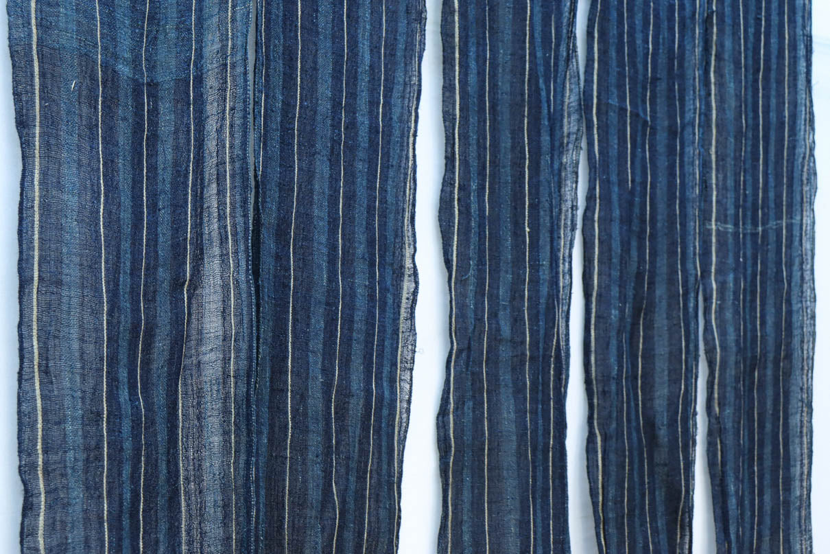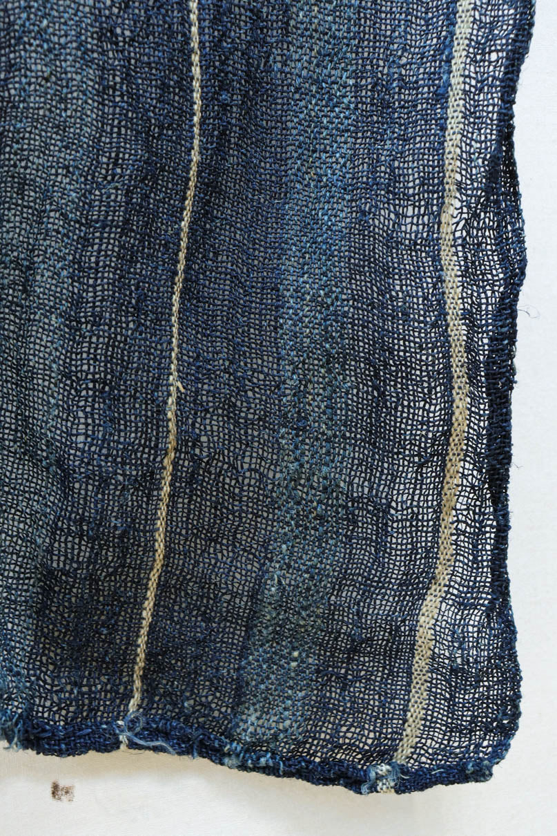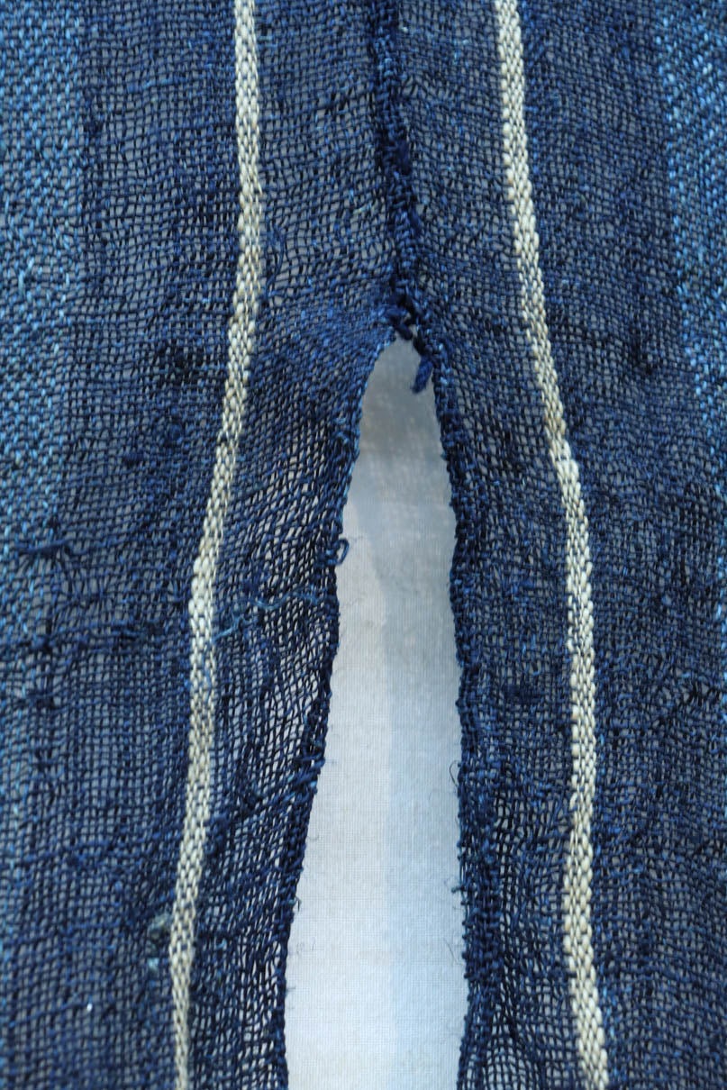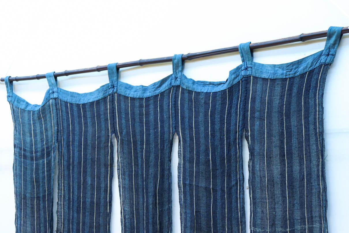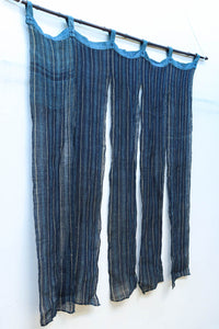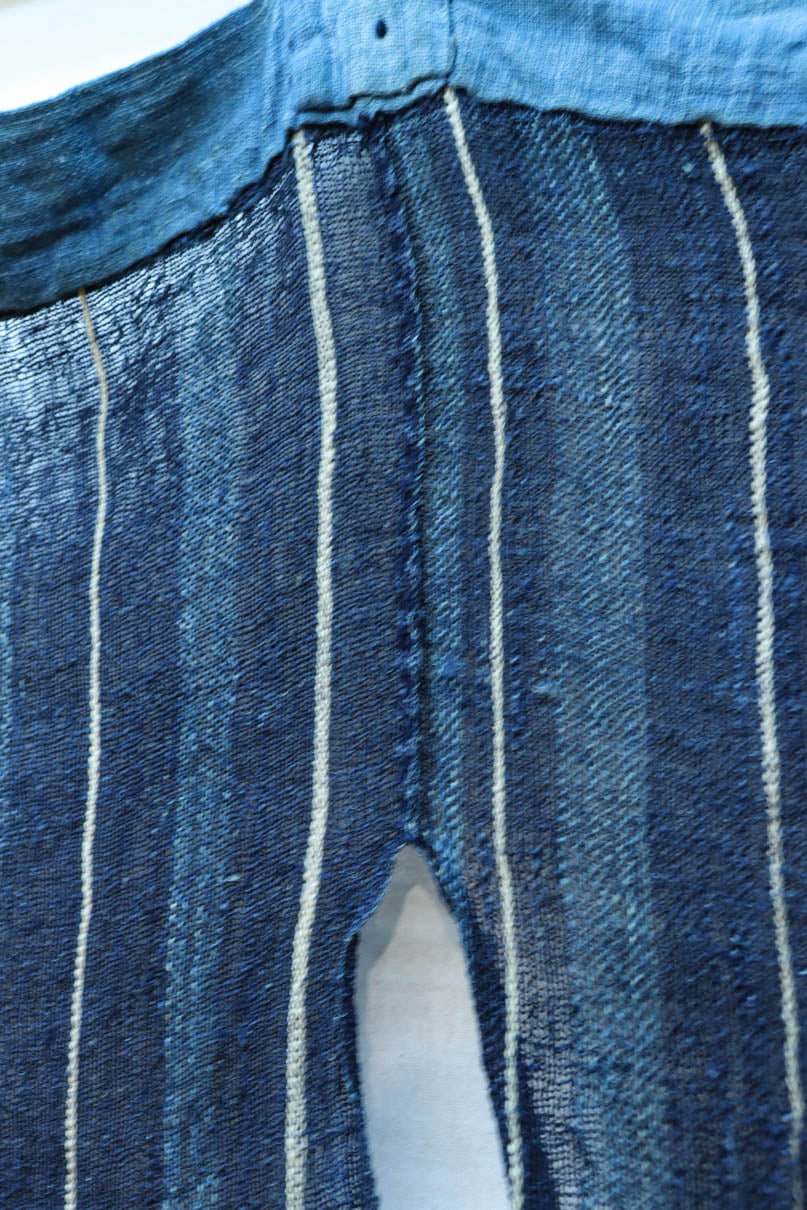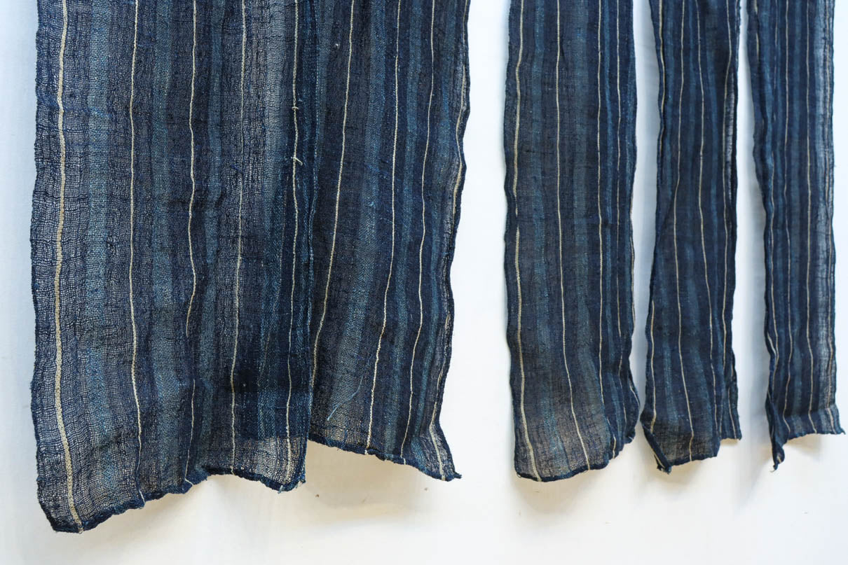 藍色の濃淡によるトライプ模様が麻素材の透け感とともに