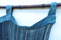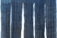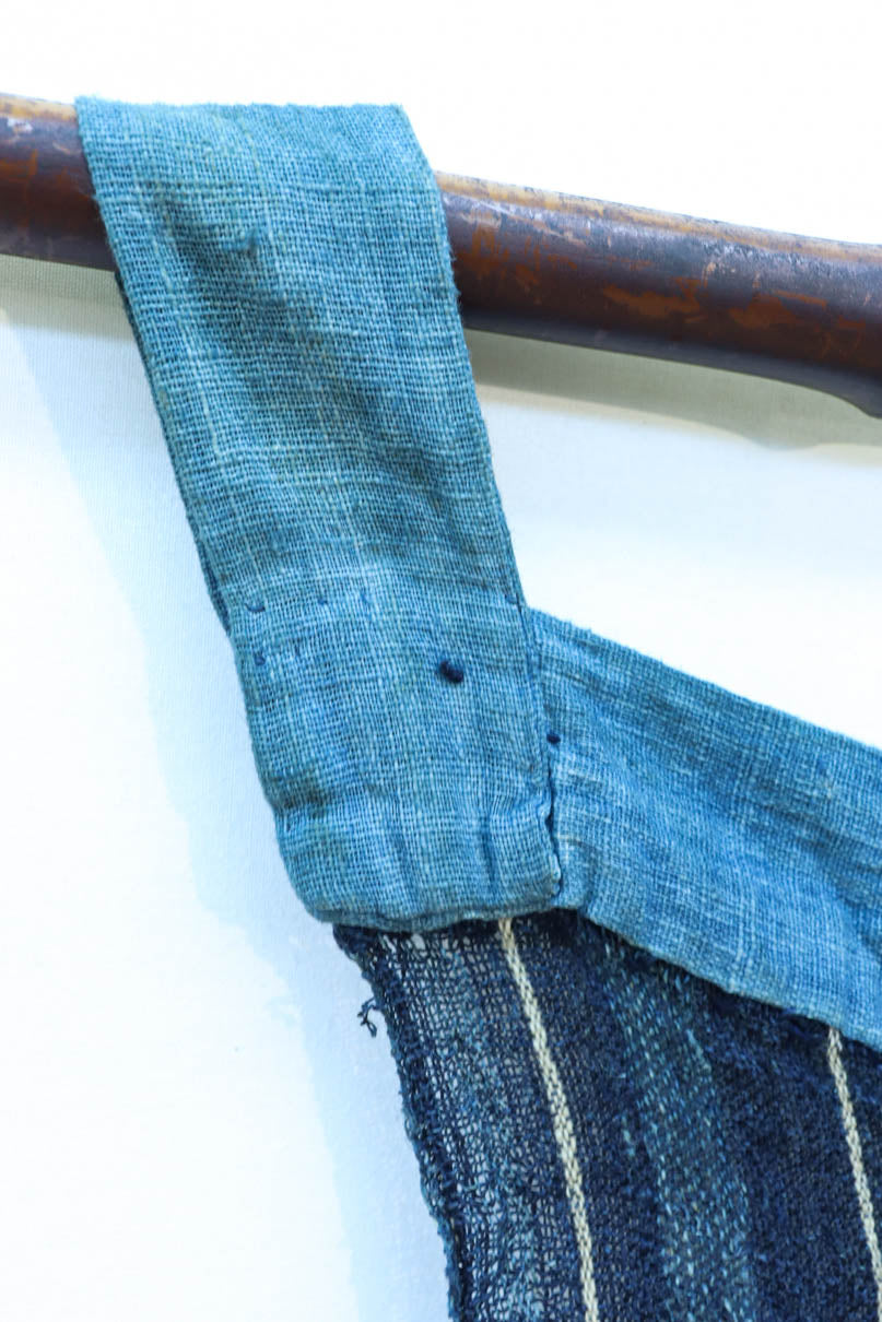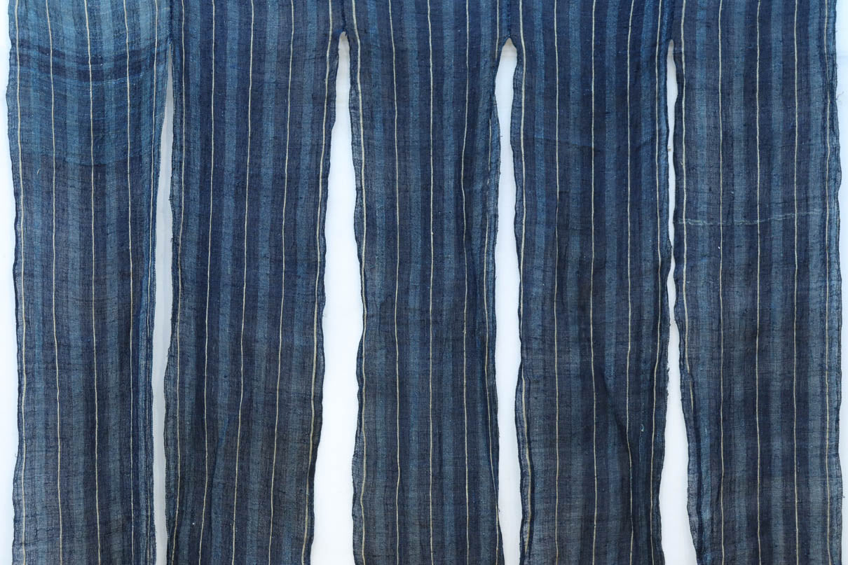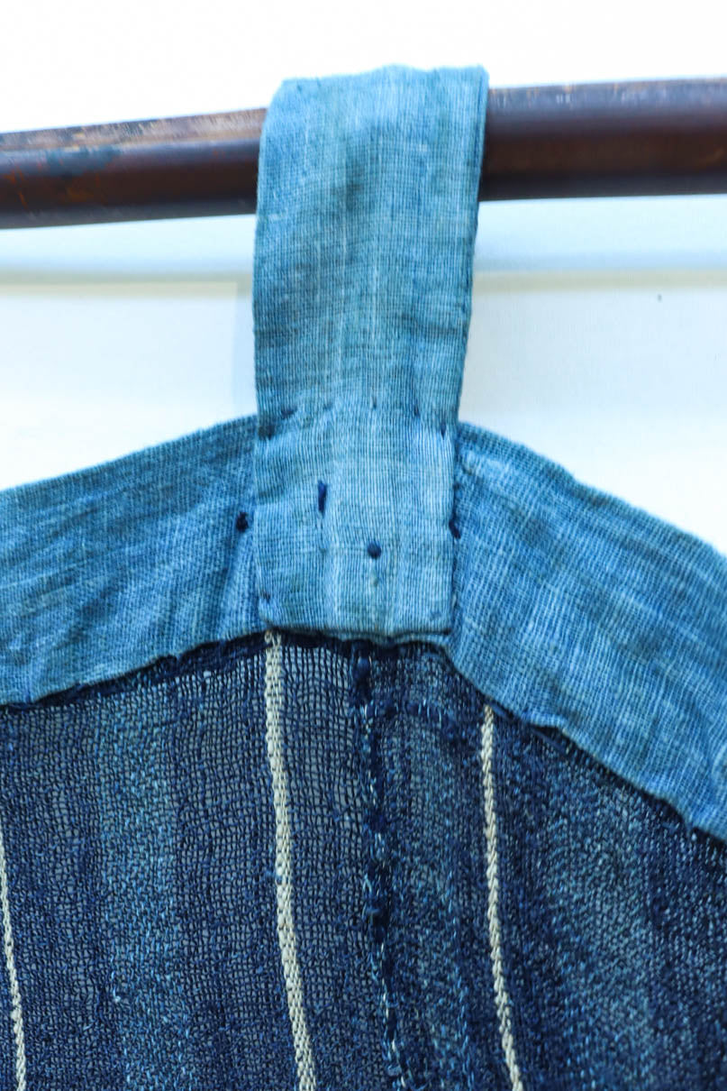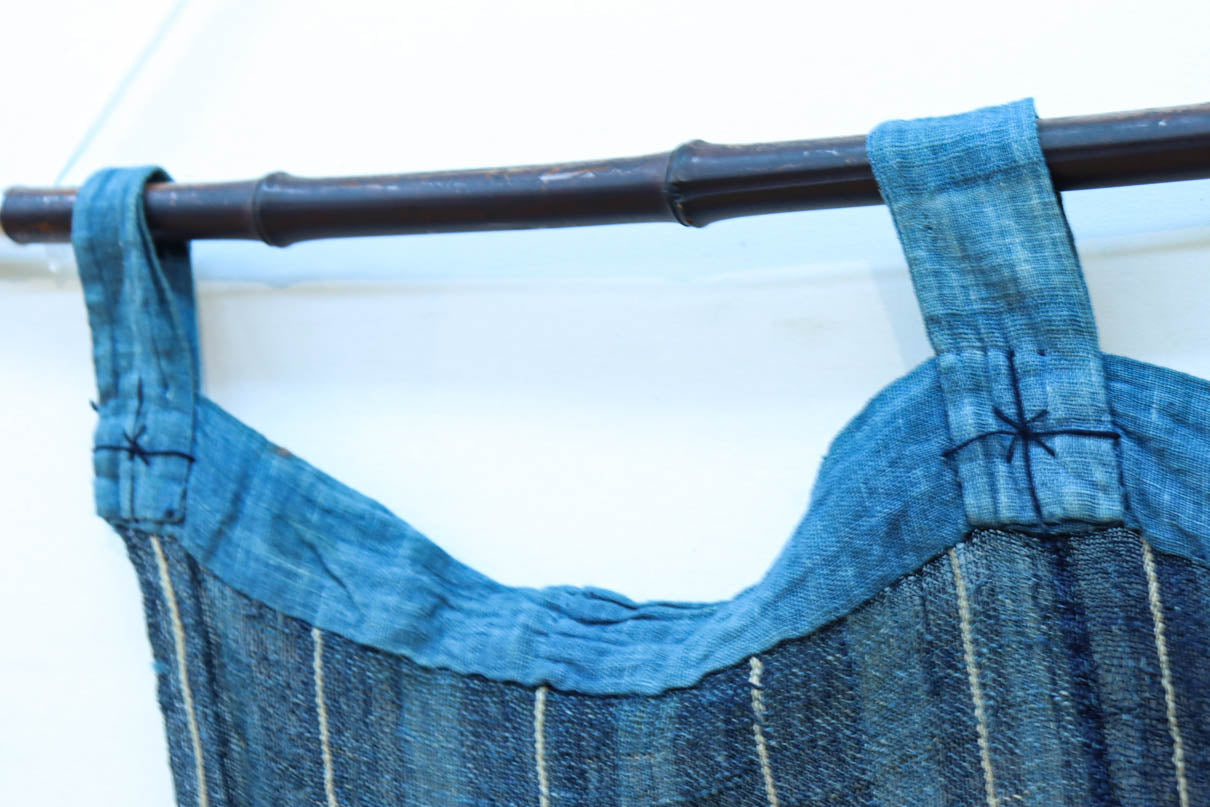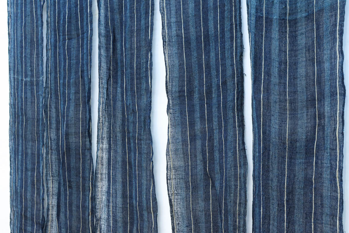 藍色の濃淡によるトライプ模様が麻素材の透け感とともに