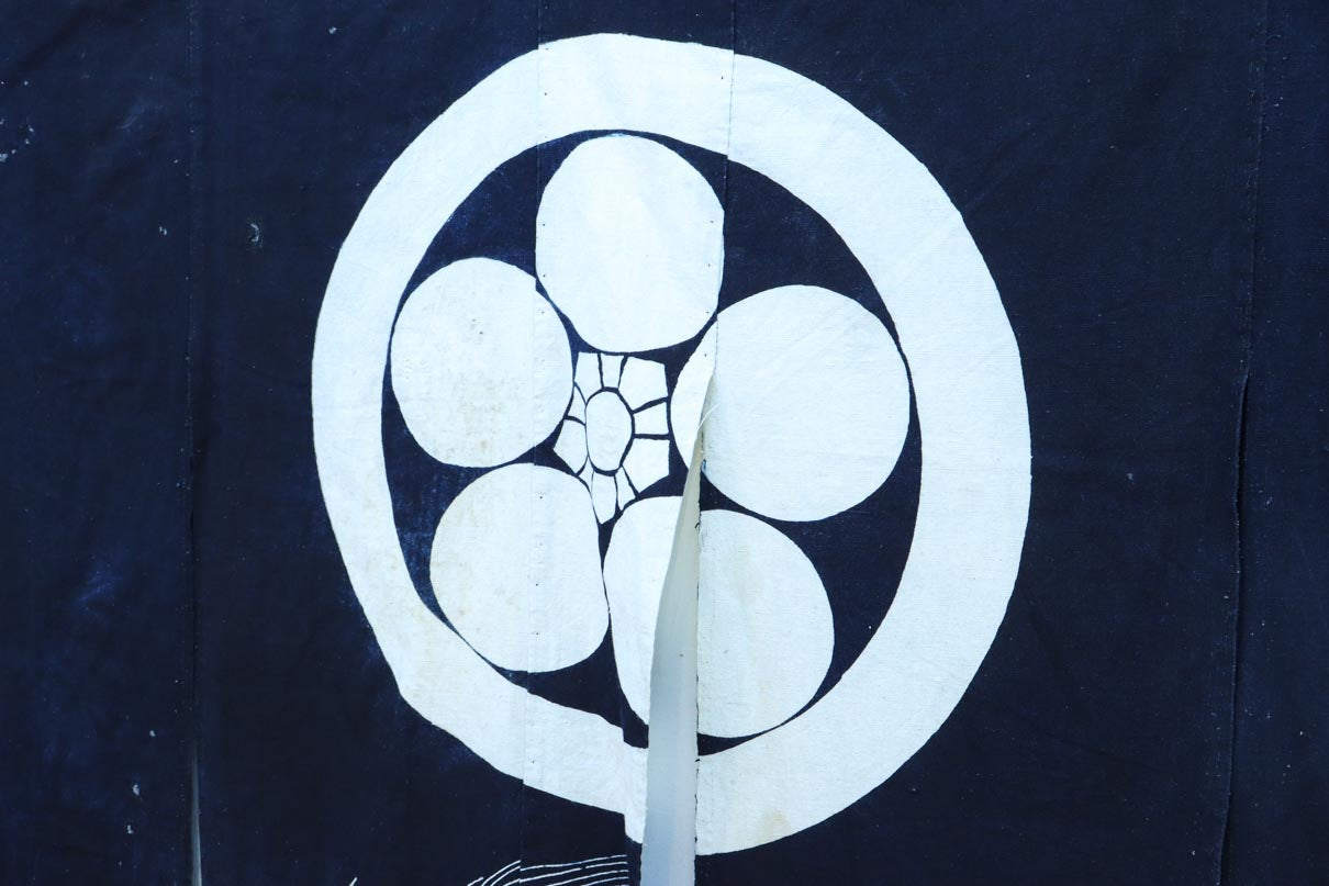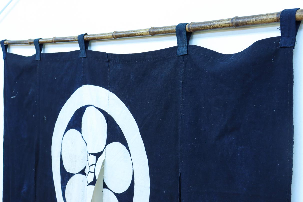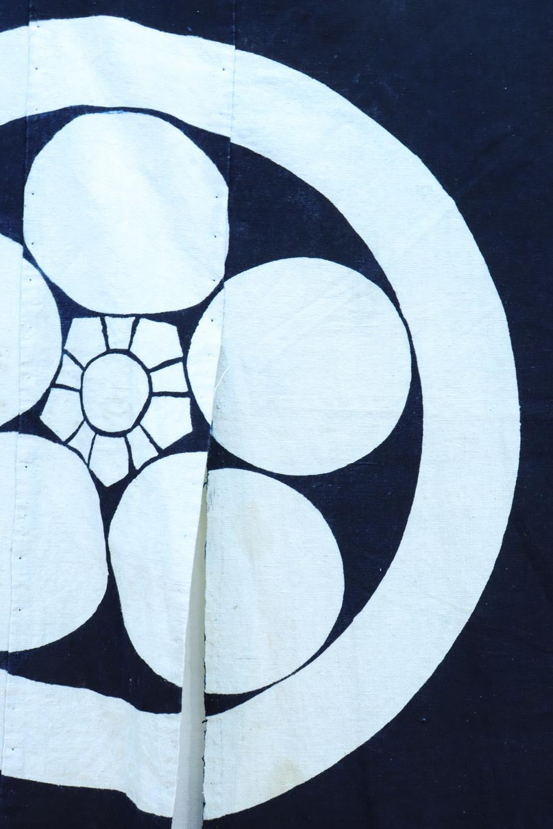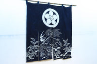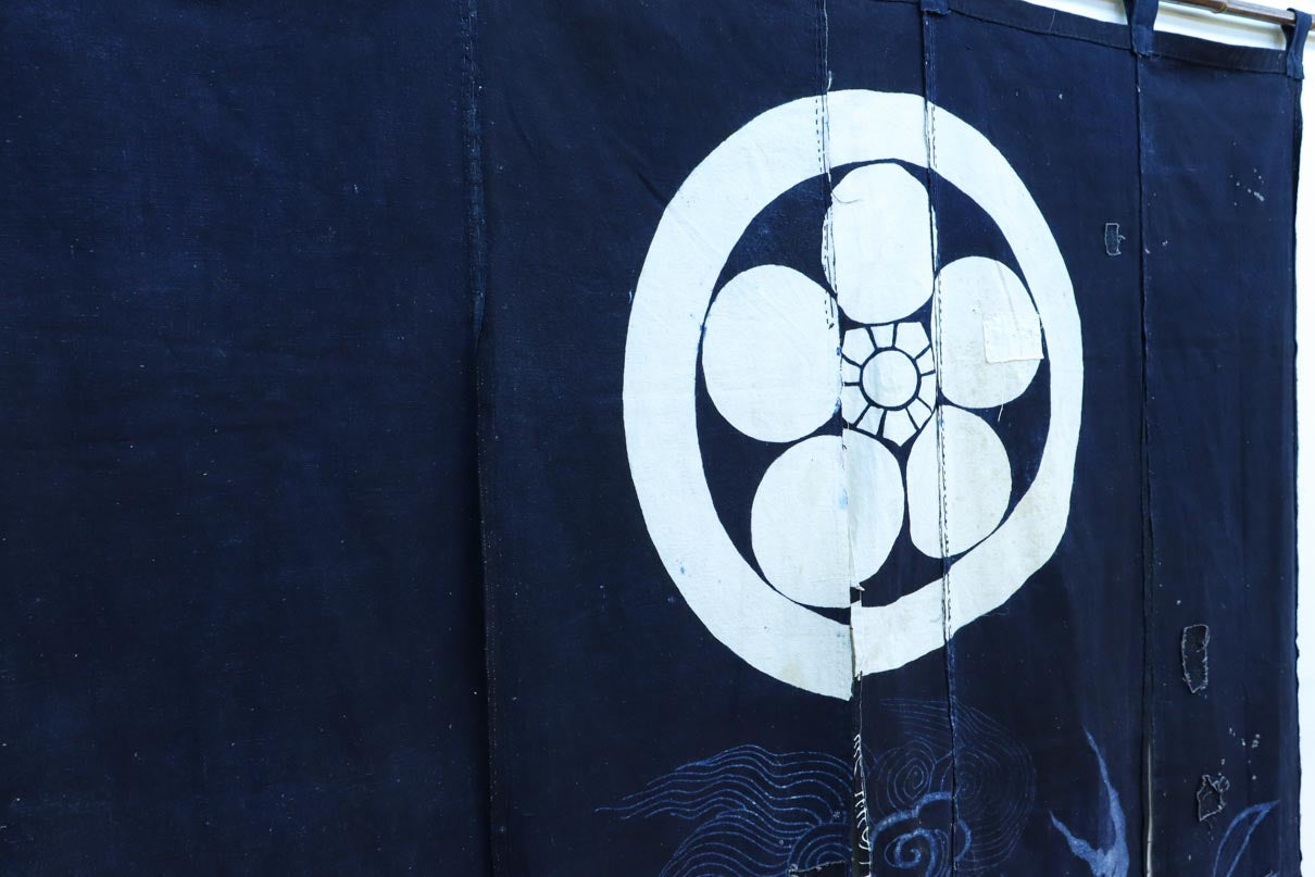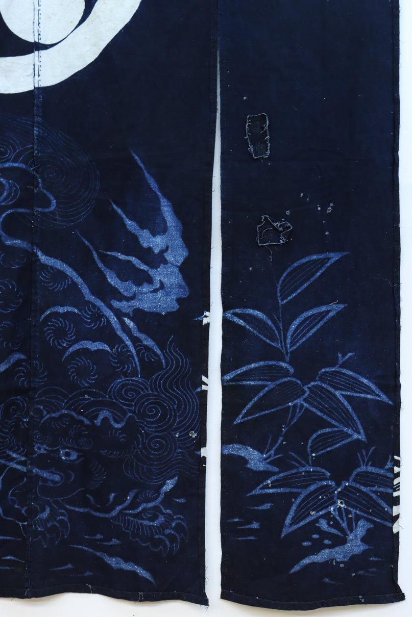 貫録のある唐獅子と丸に梅鉢紋で和の面持ちある暖簾 DC7770