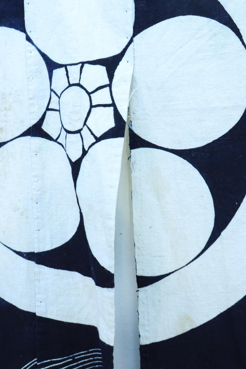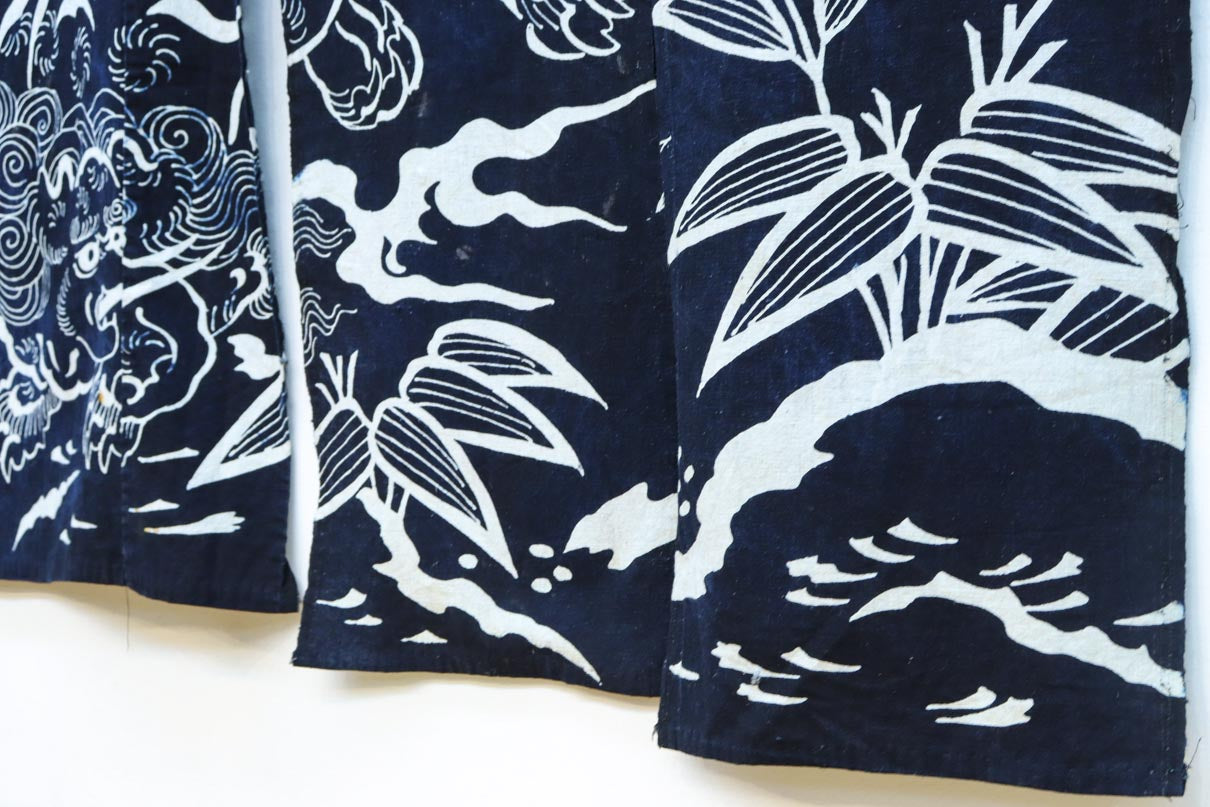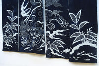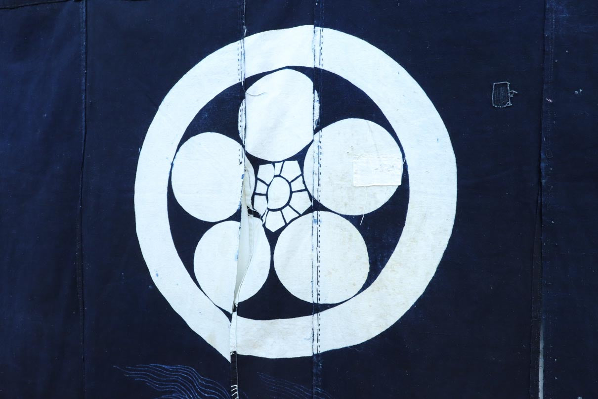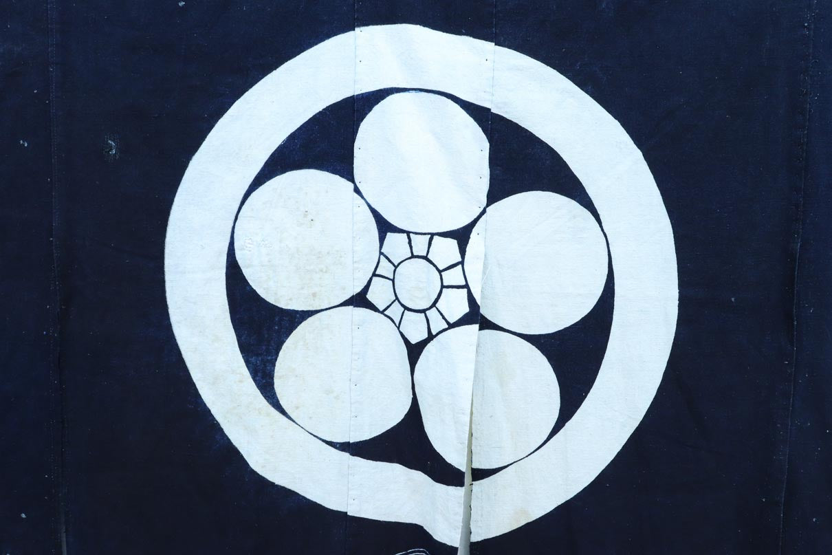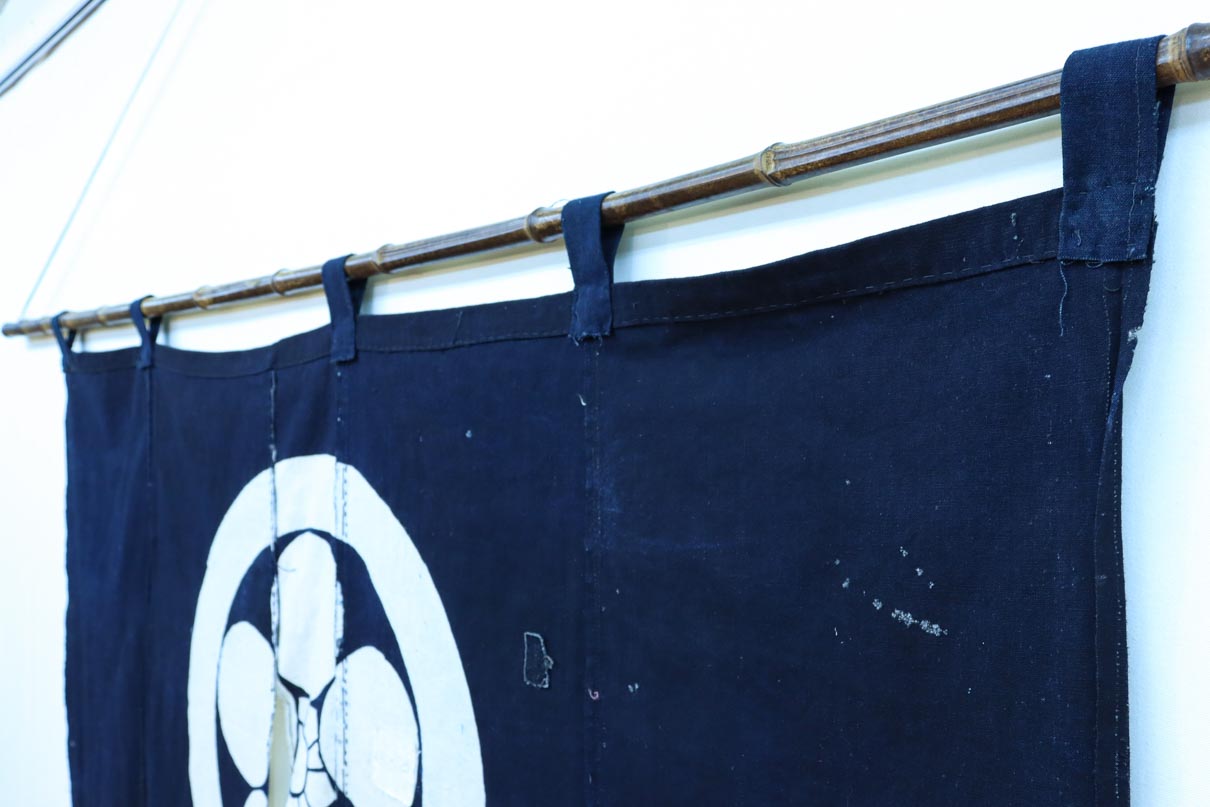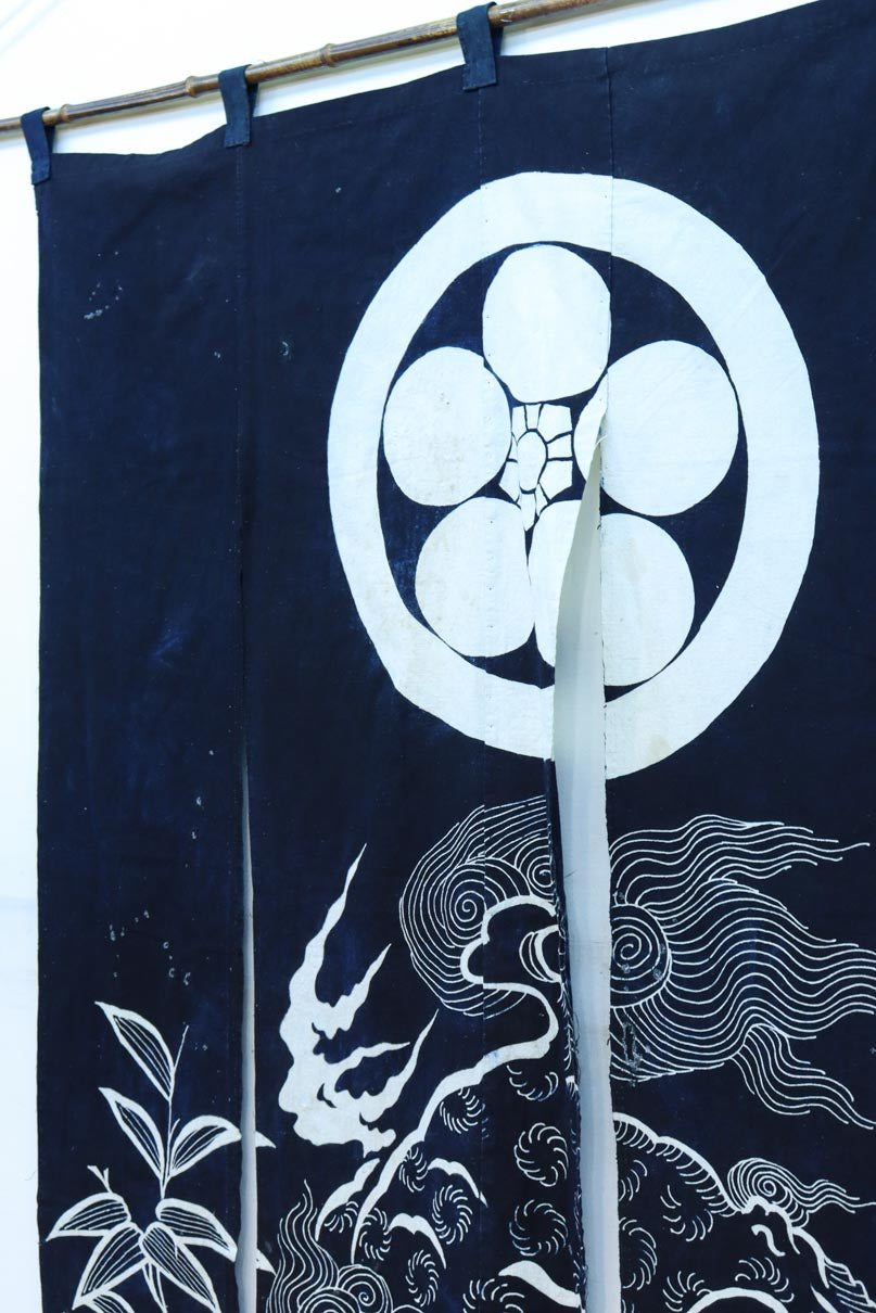 貫録のある唐獅子と丸に梅鉢紋で和の面持ちある暖簾 DC7770