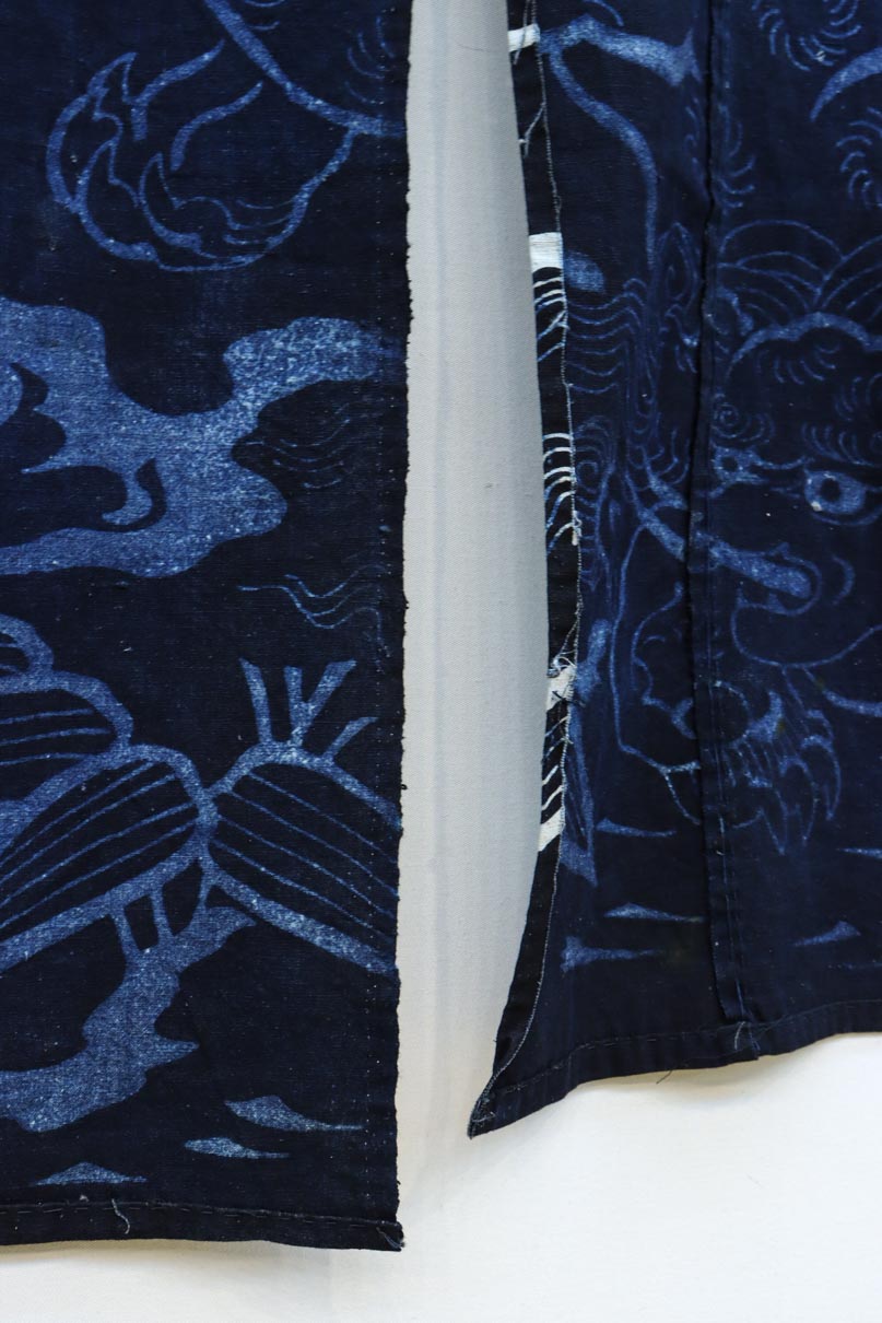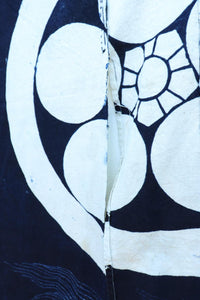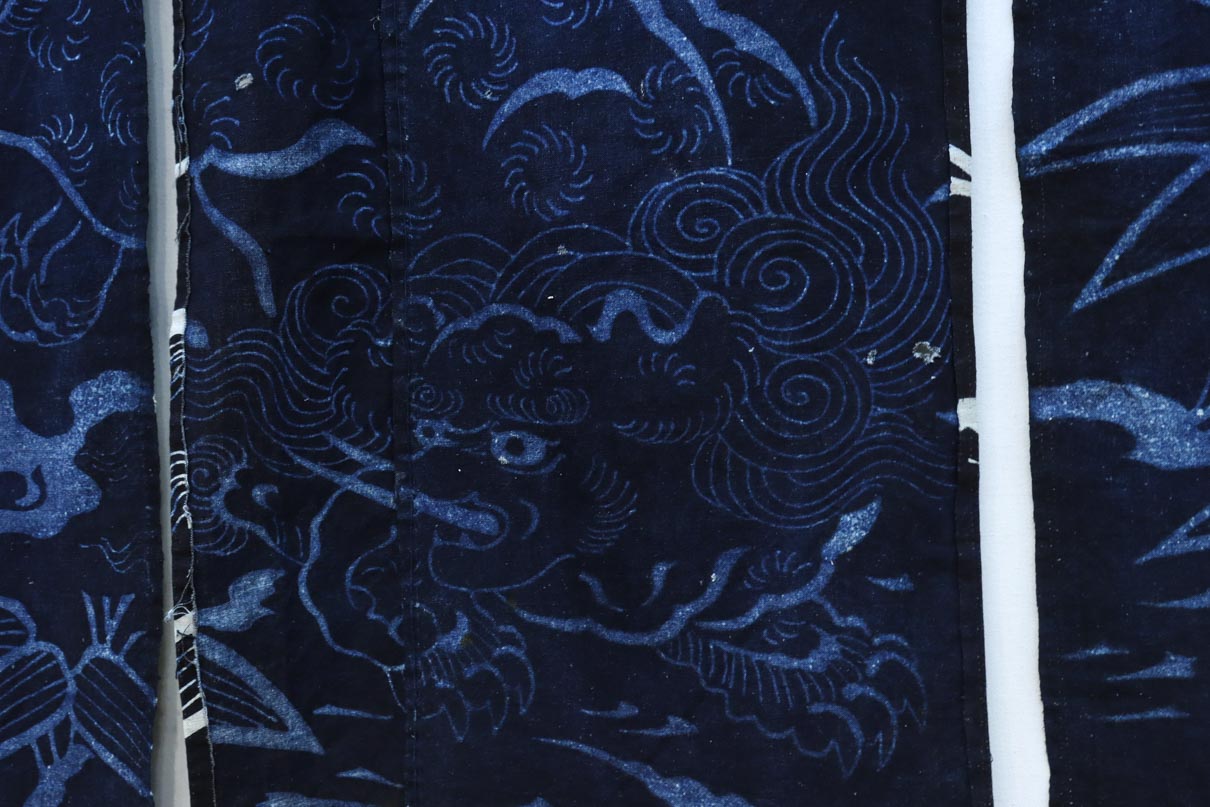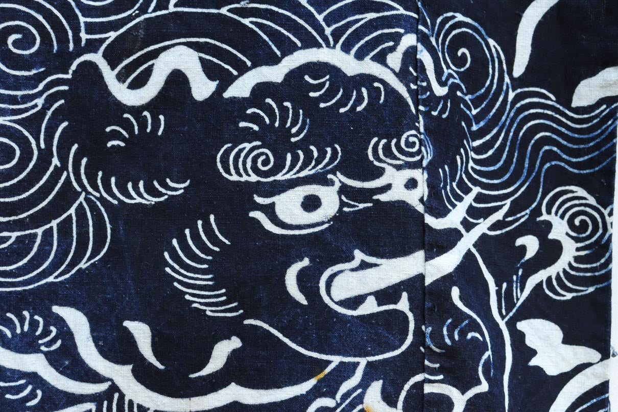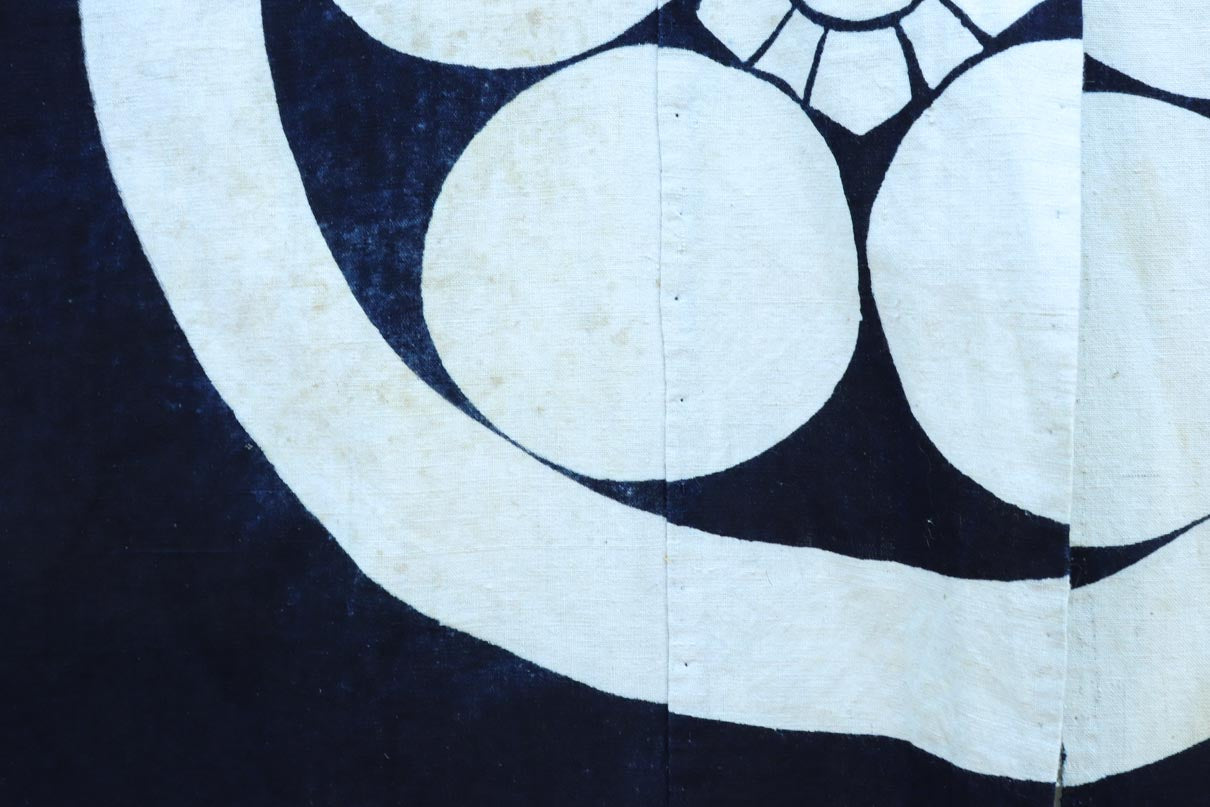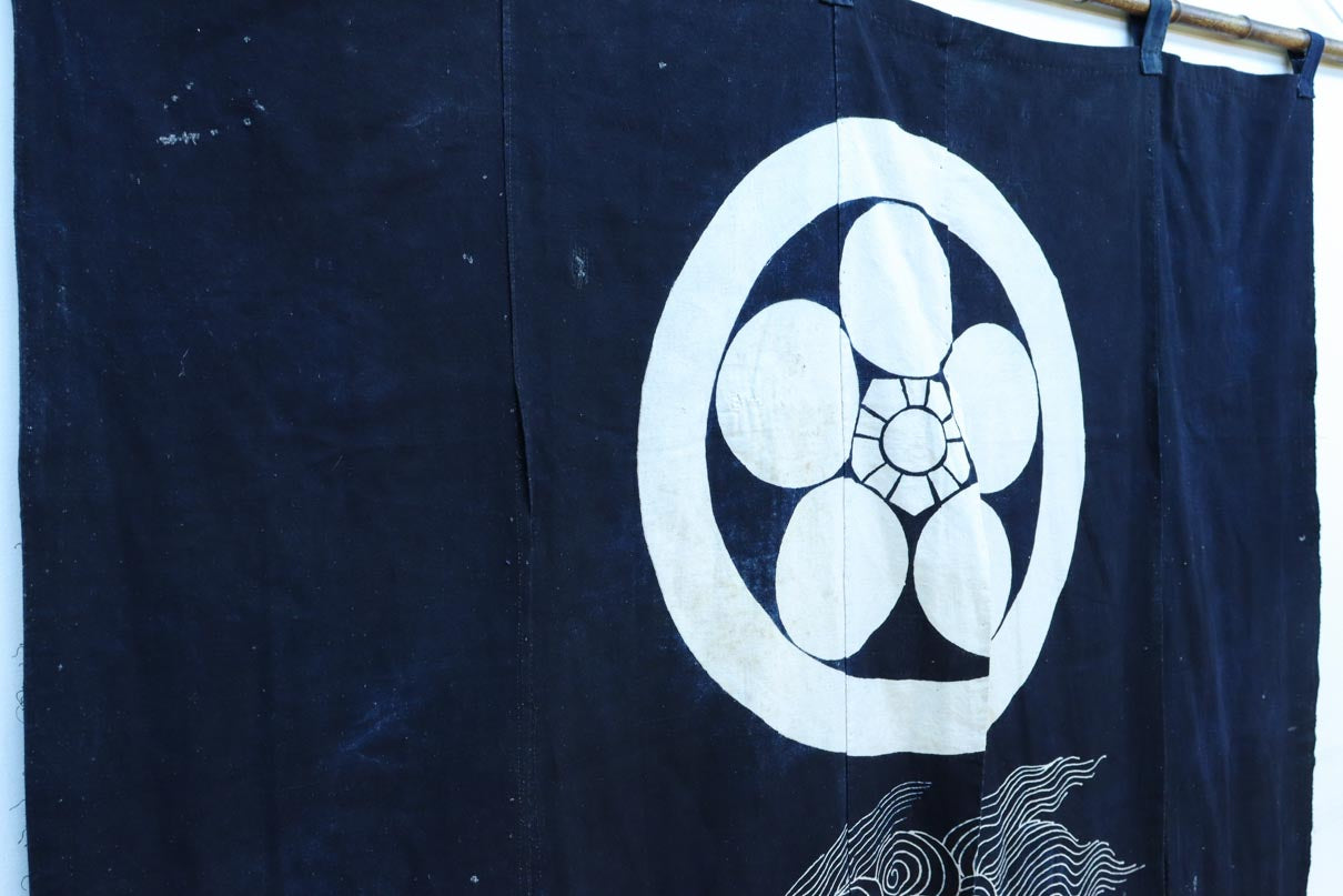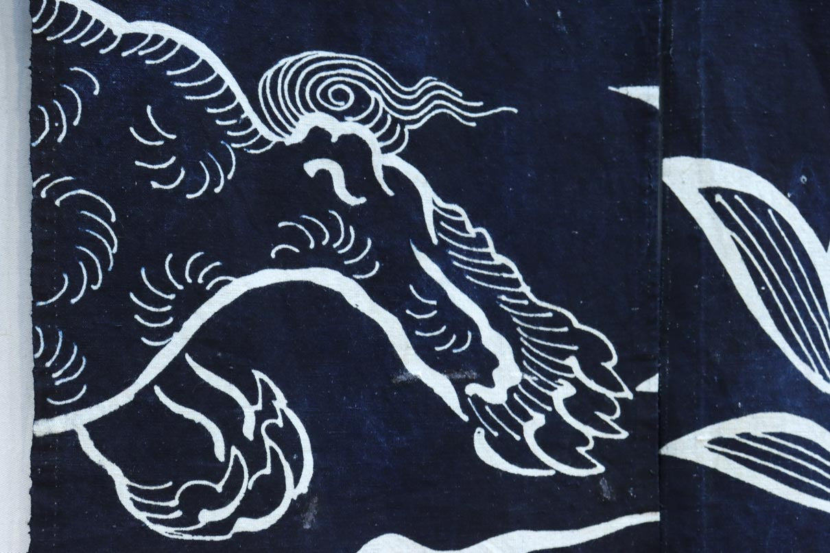 貫録のある唐獅子と丸に梅鉢紋で和の面持ちある暖簾 DC7770