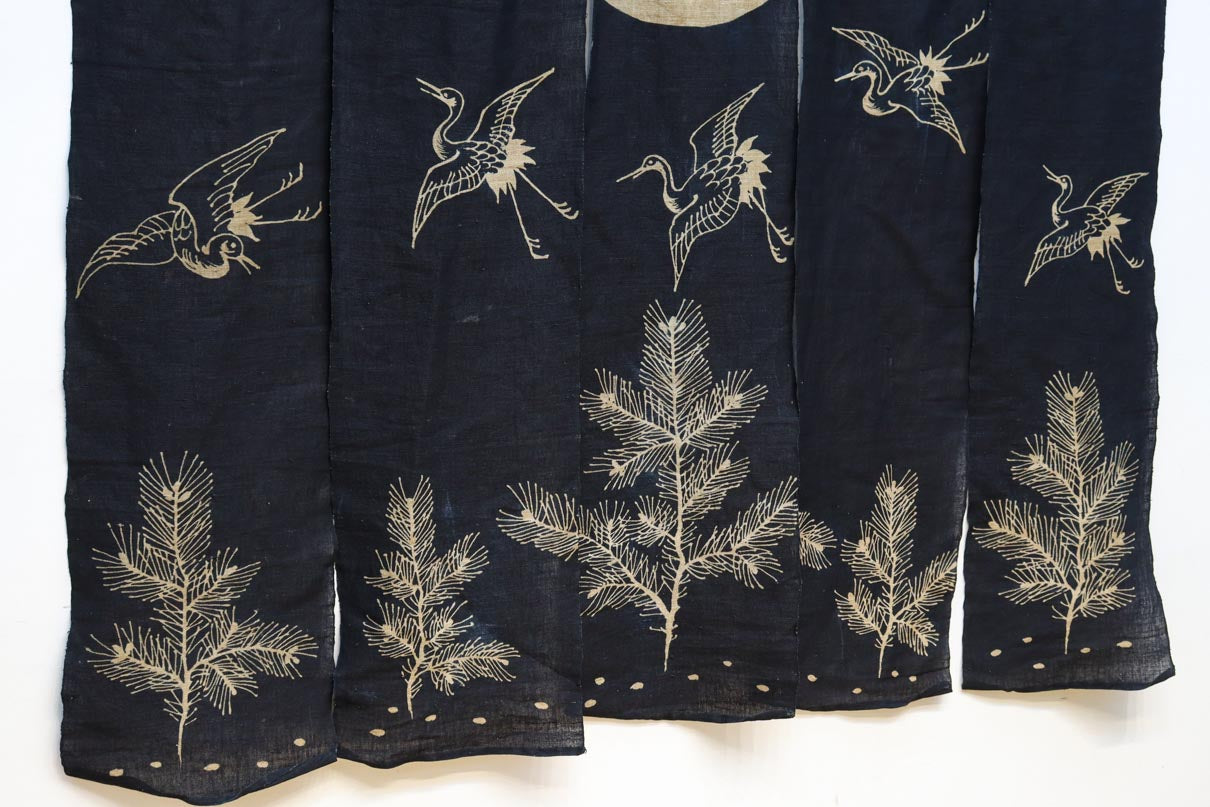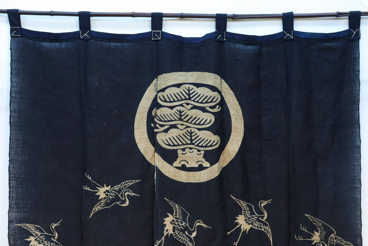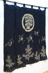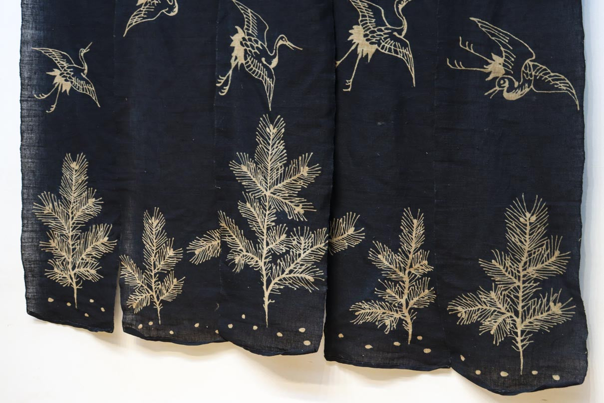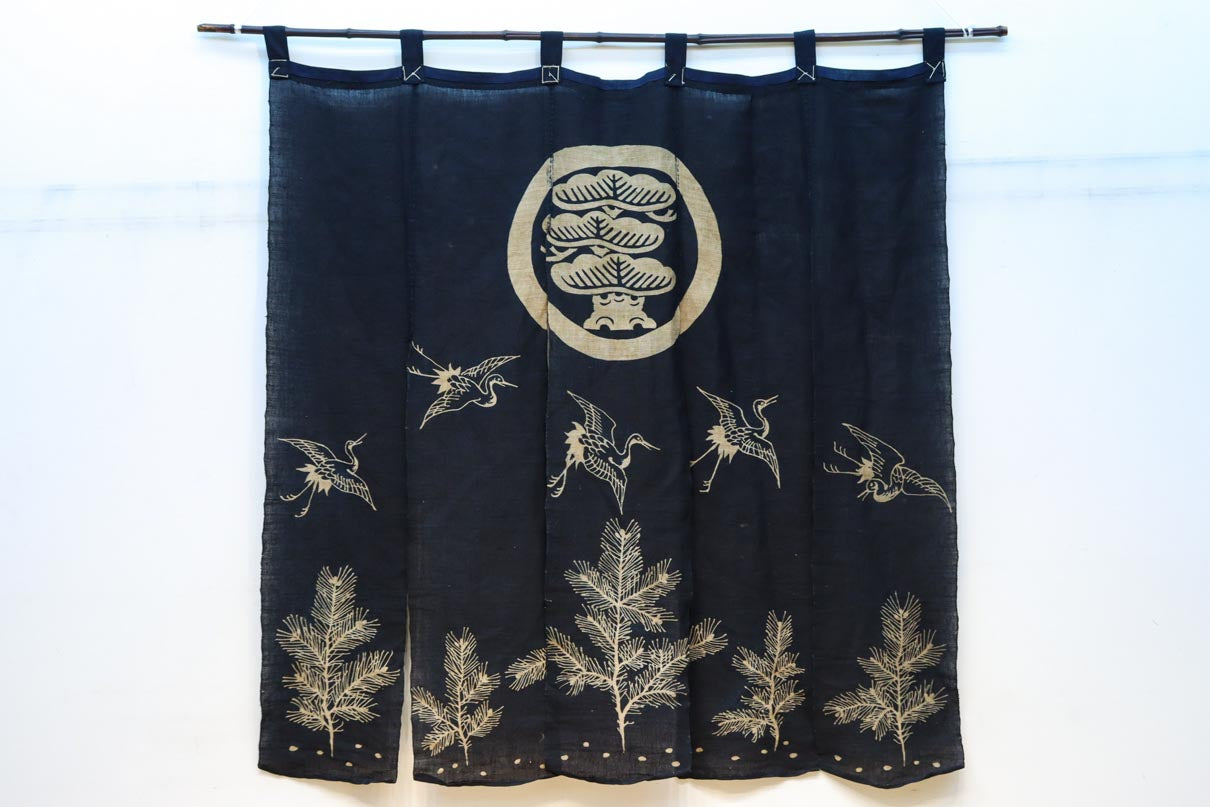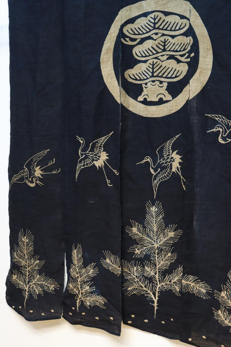 松林で5羽の鶴が優雅に飛翔する暖簾(のれん) DC7778