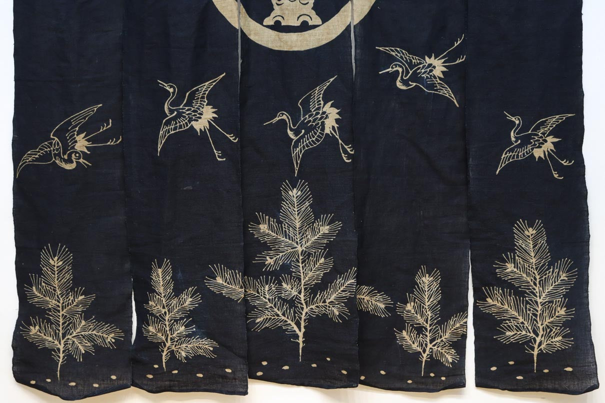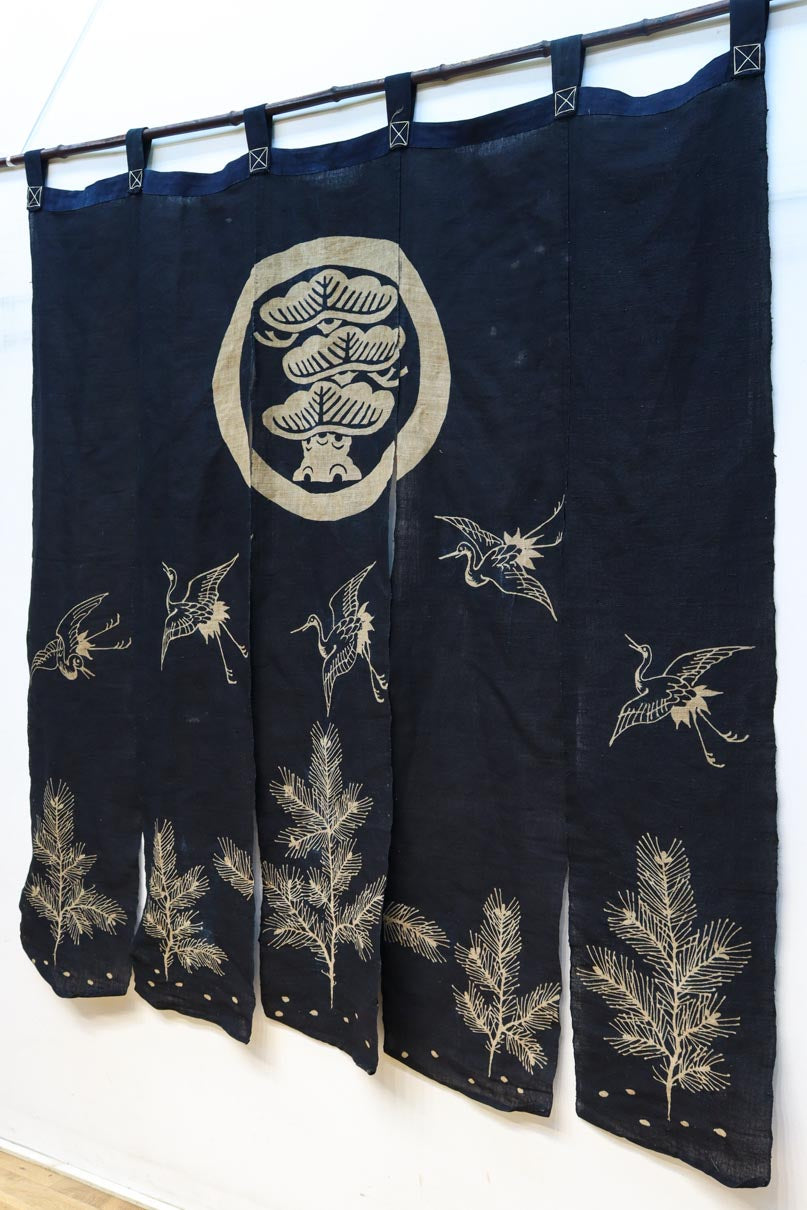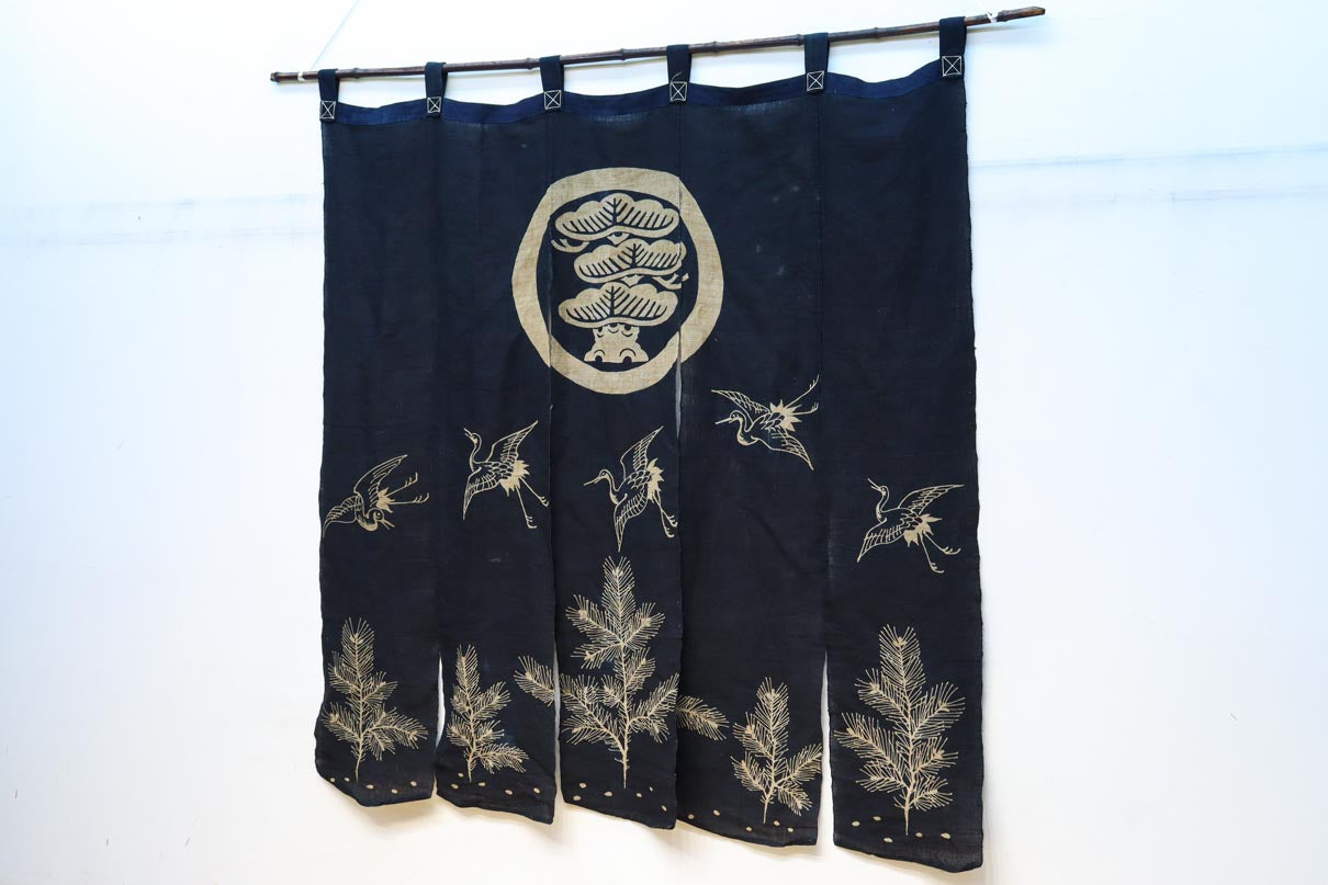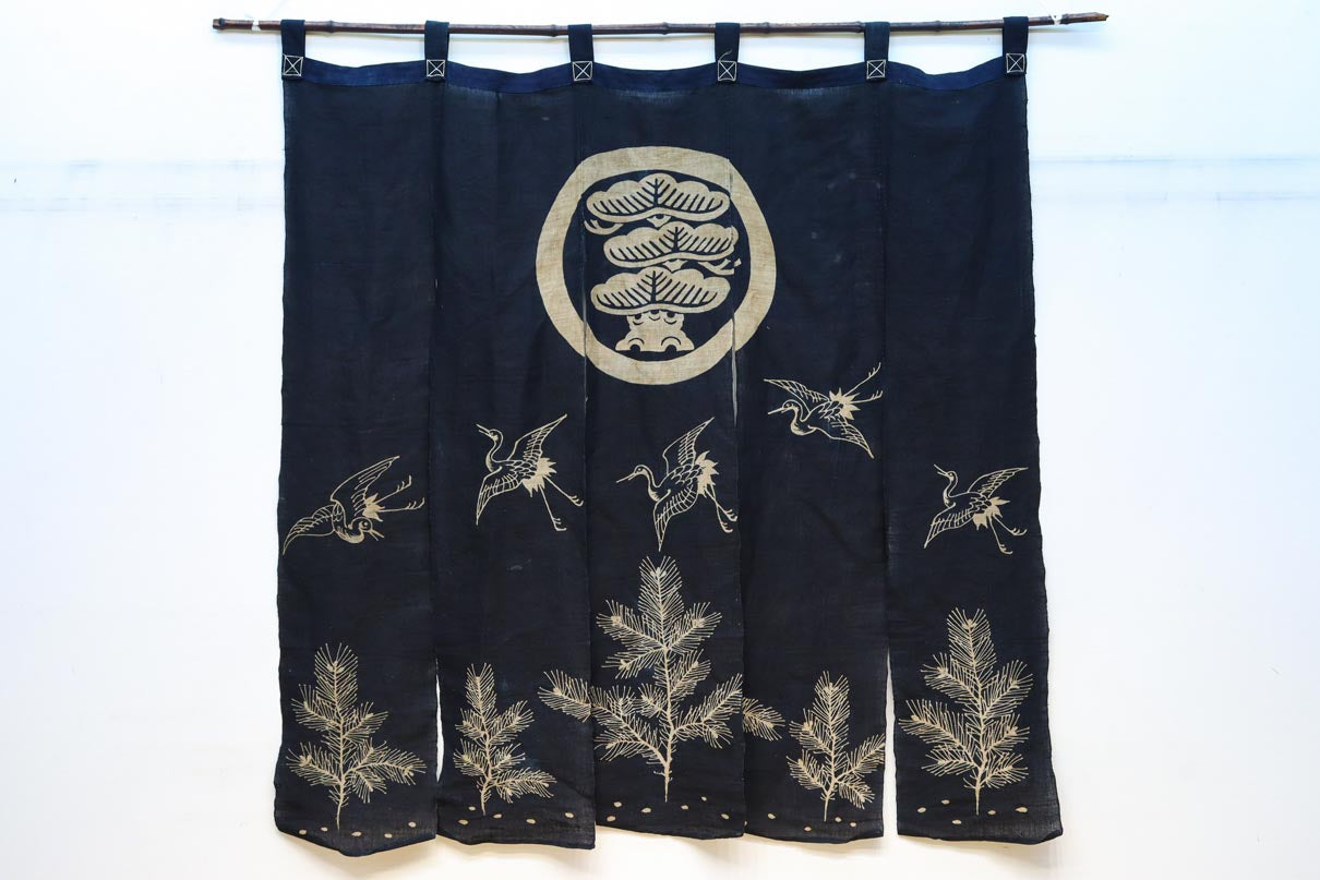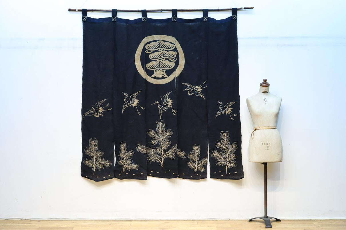 松林で5羽の鶴が優雅に飛翔する暖簾(のれん) DC7778