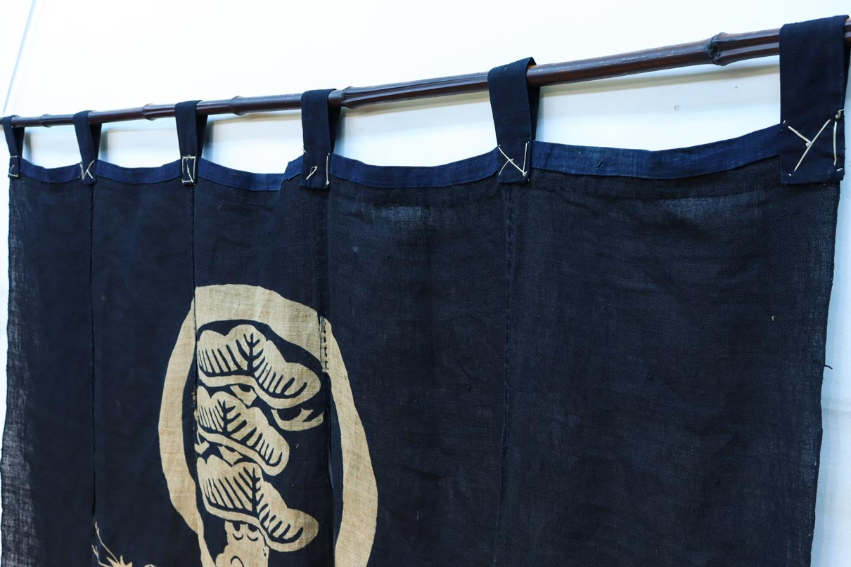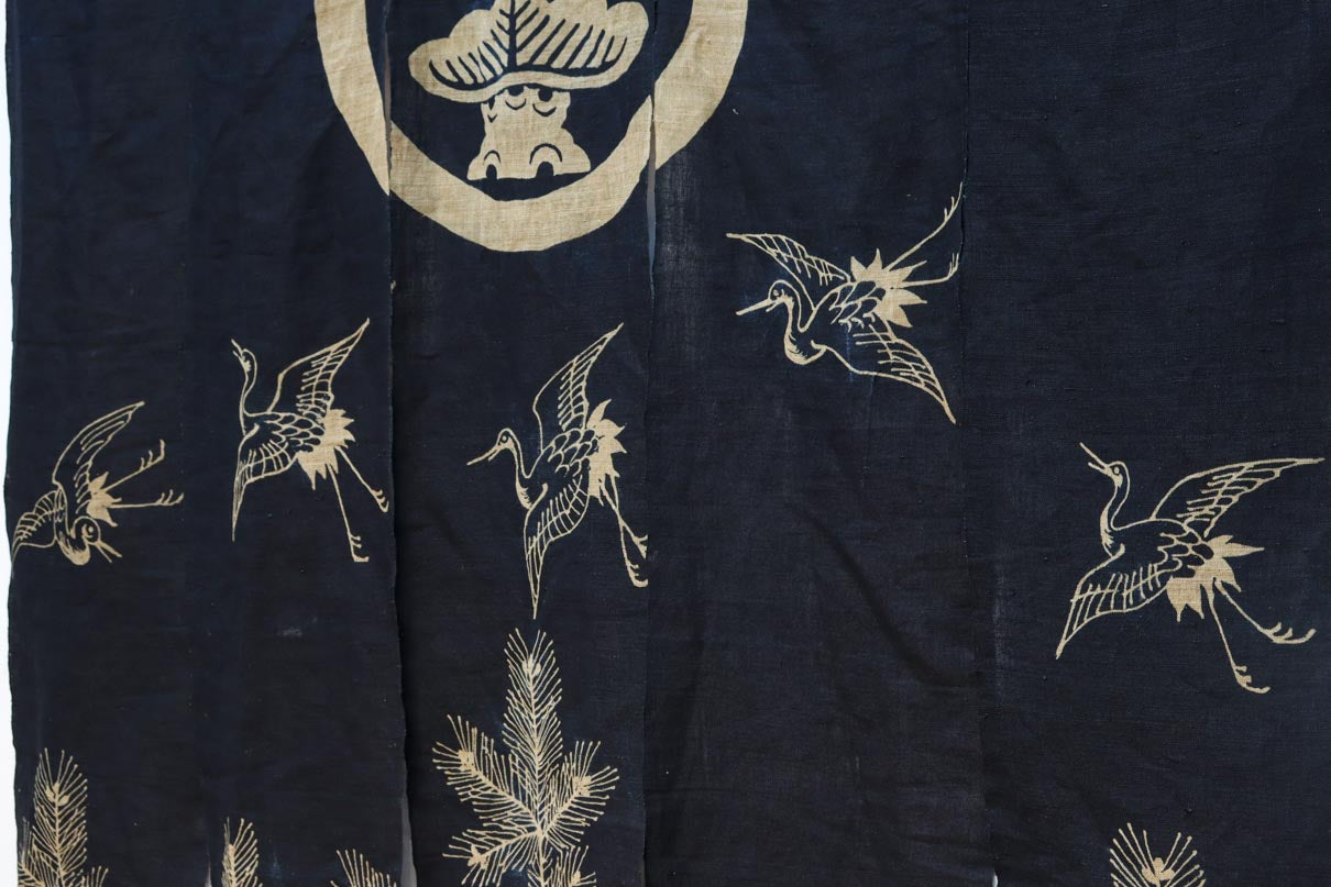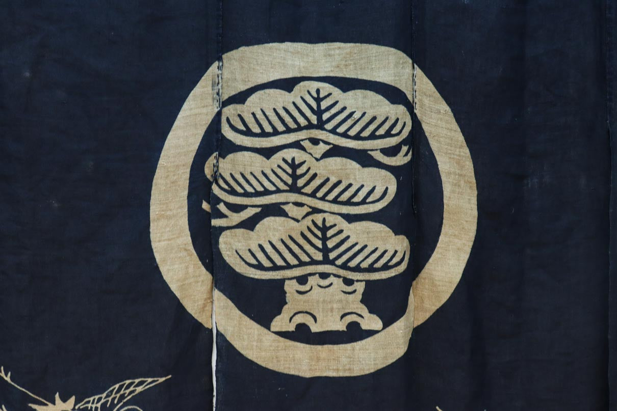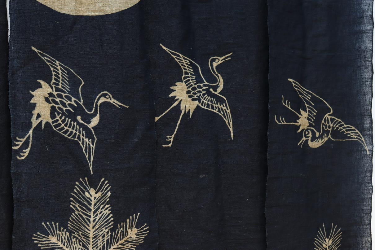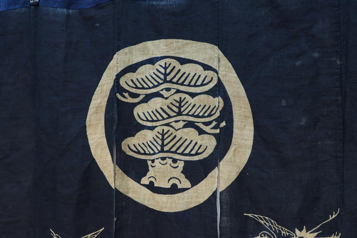 松林で5羽の鶴が優雅に飛翔する暖簾(のれん) DC7778