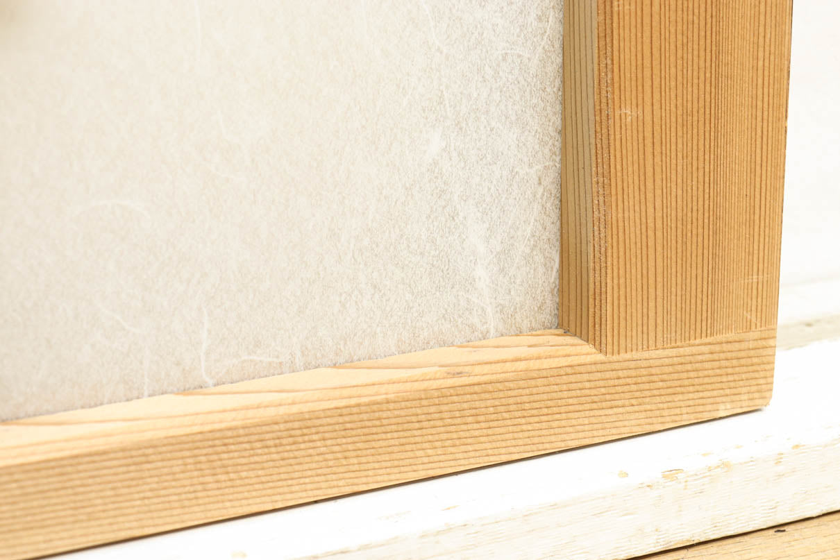 裏面に施した和紙調の紙を貼ったガラスがデザインを引き立たせて、