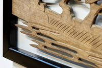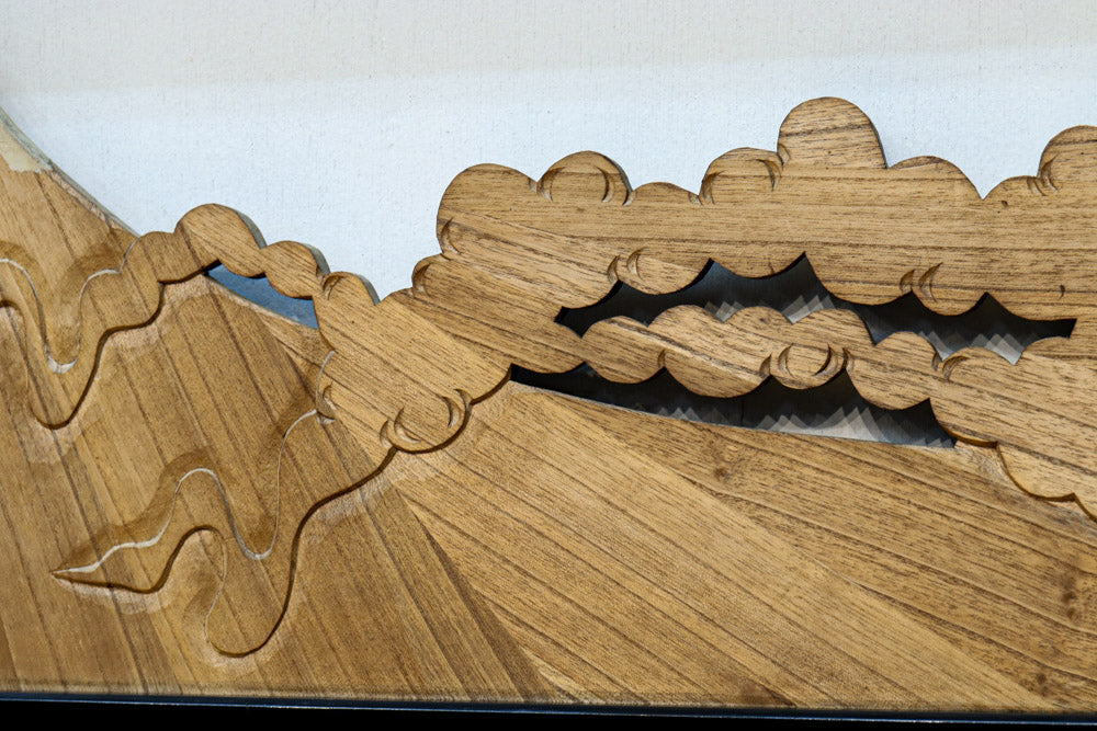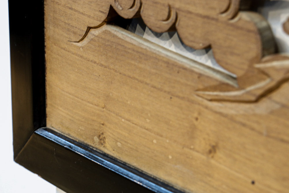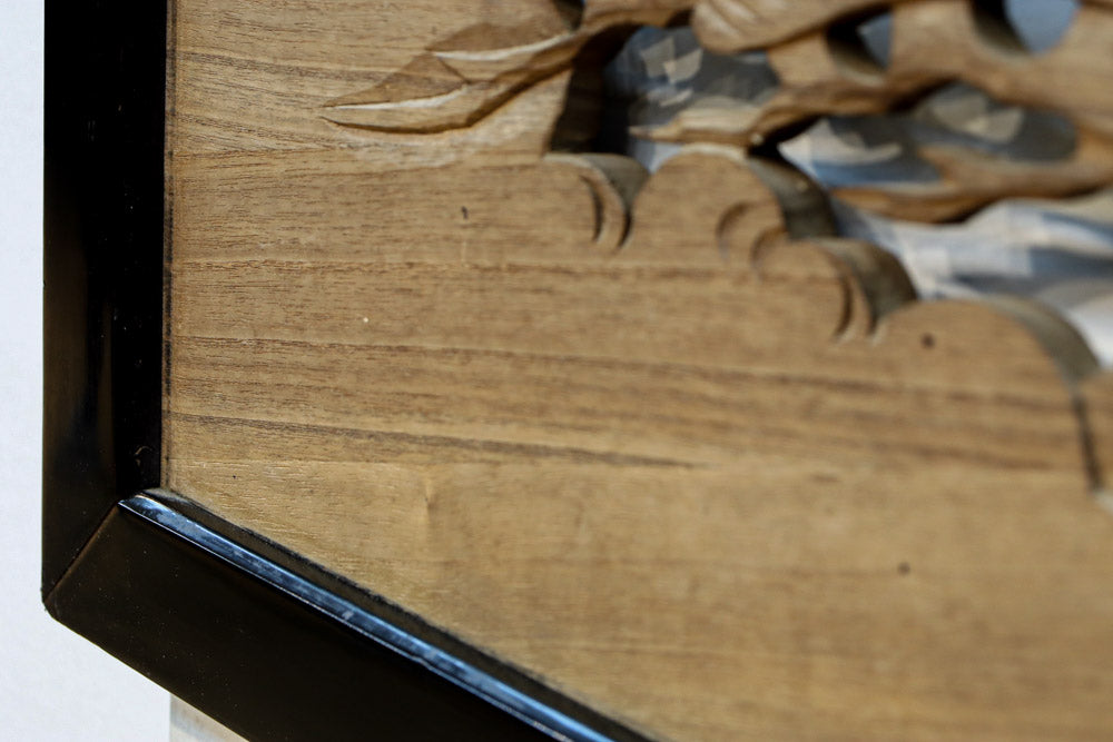 絵柄を惹きたててくれる、黒色の木枠で整えた面持ちからは
