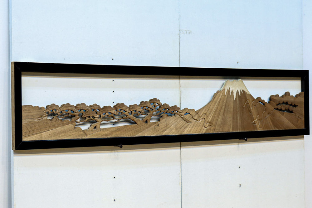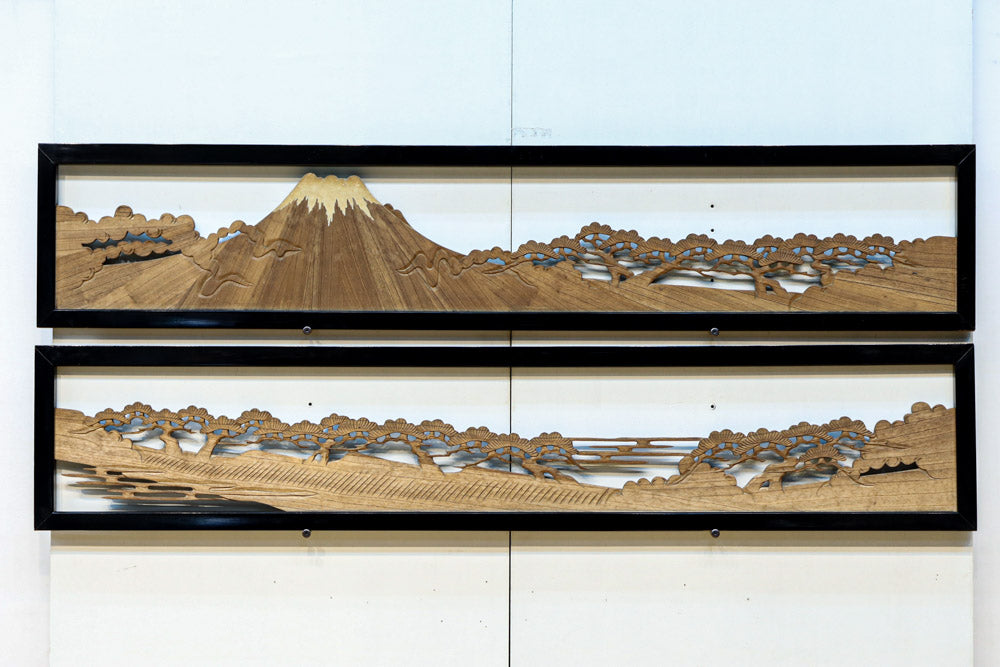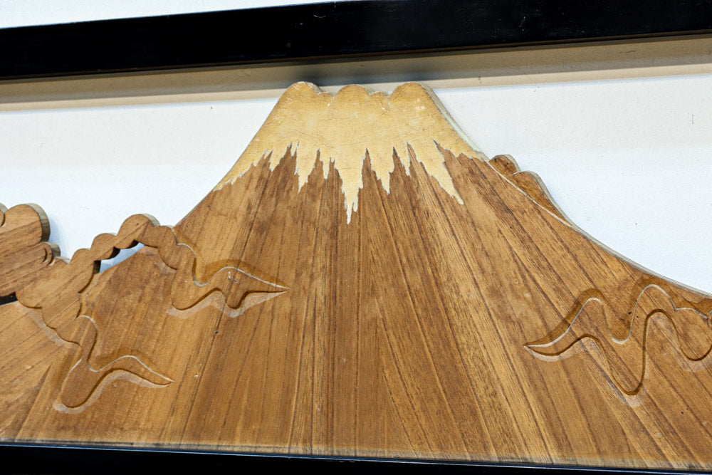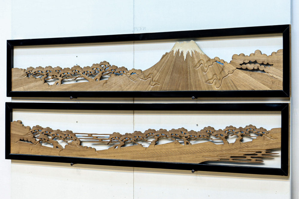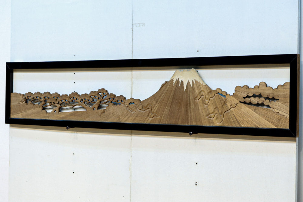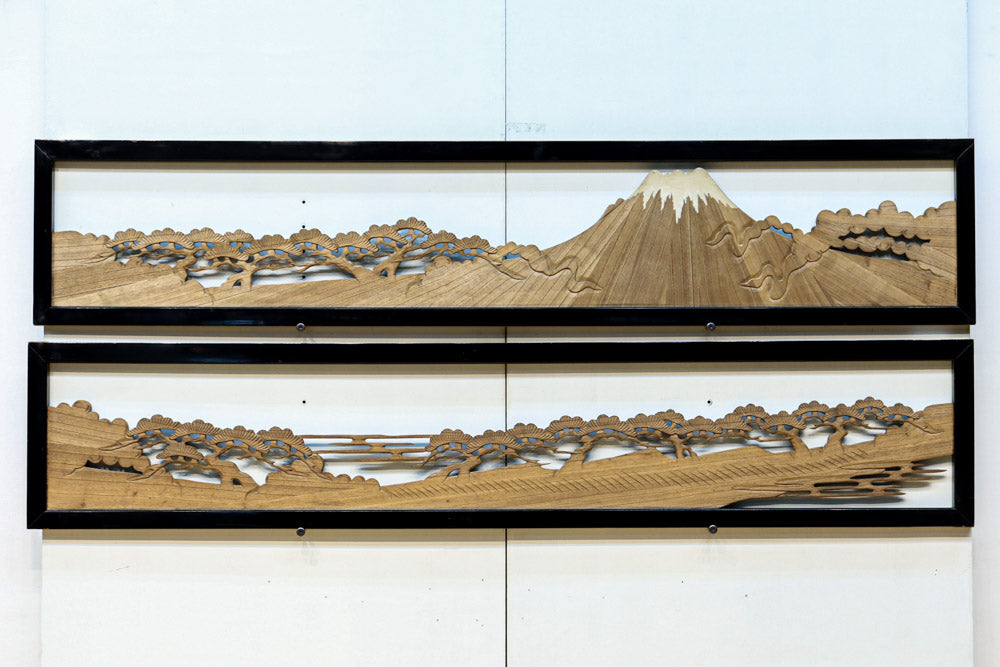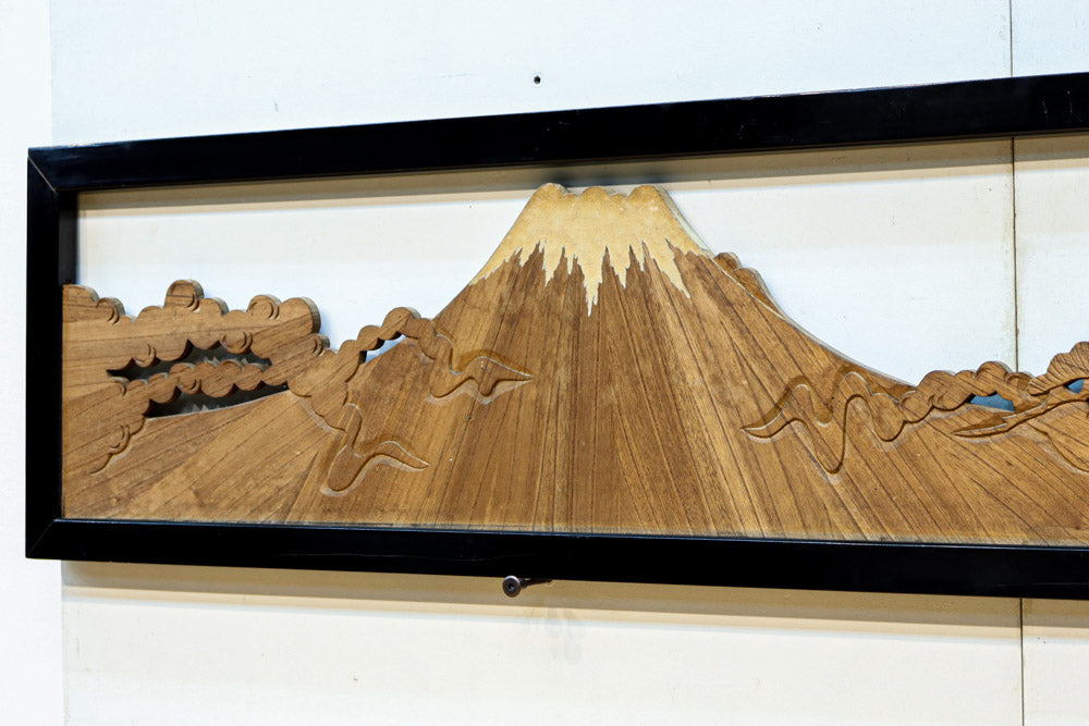 冠雪した富士を丁寧に美しく彫刻した極上彫刻欄間 EZ2513ab 在庫2枚一組