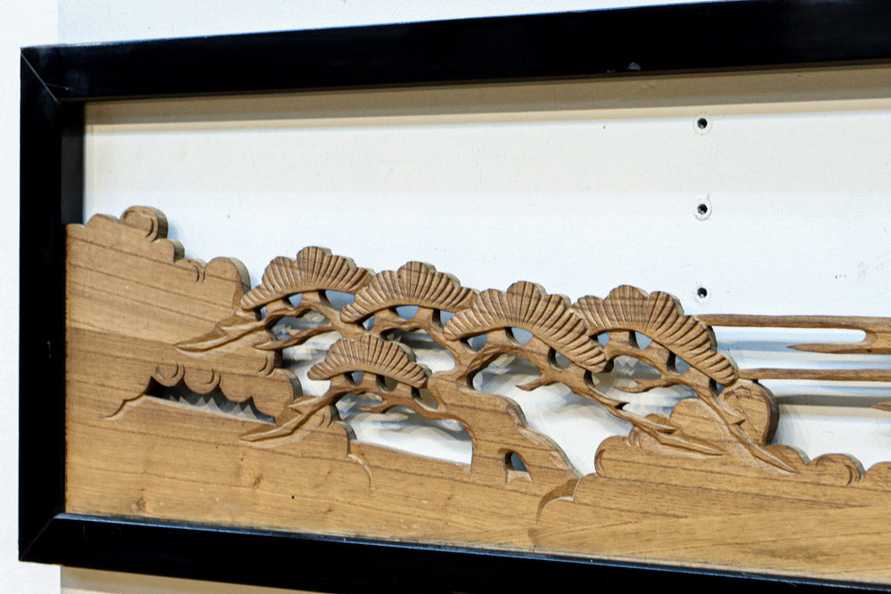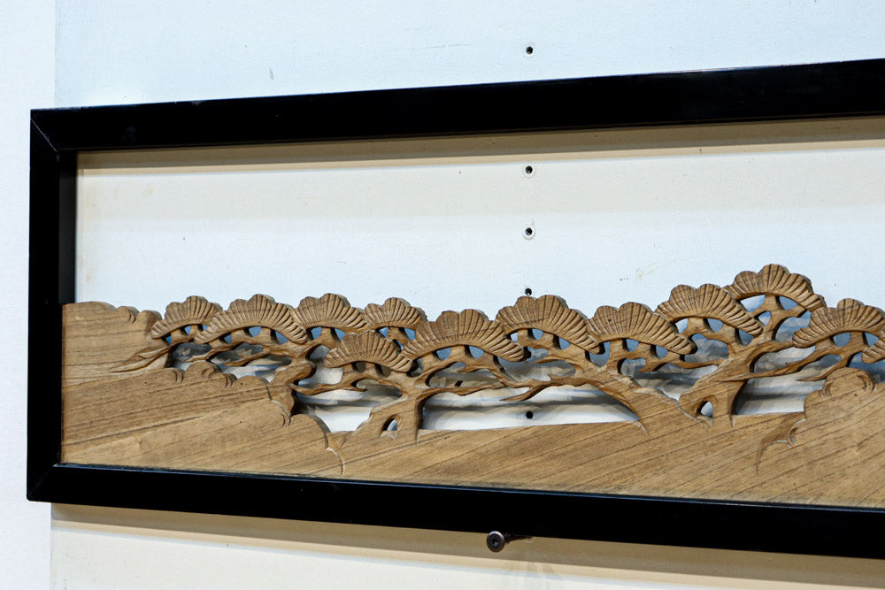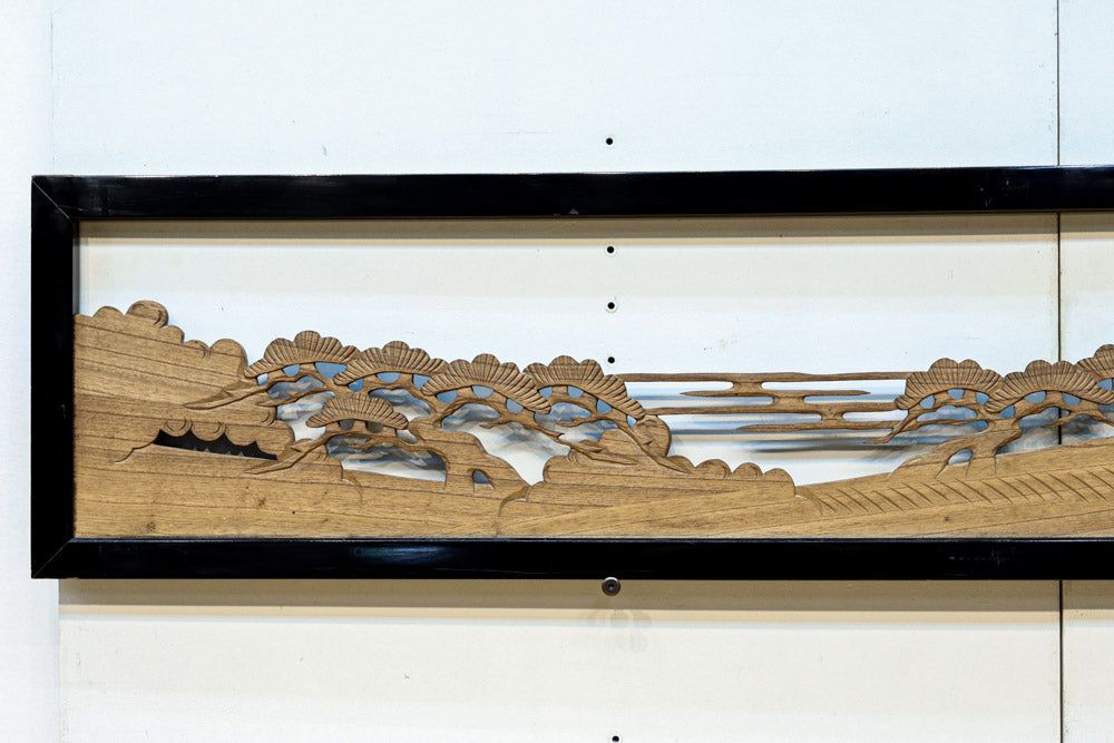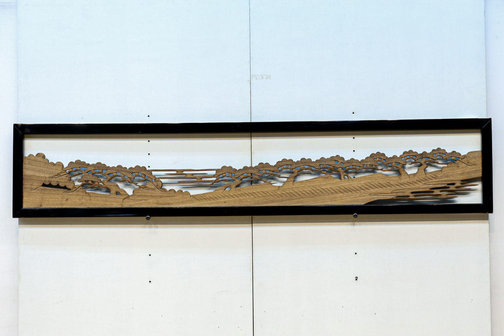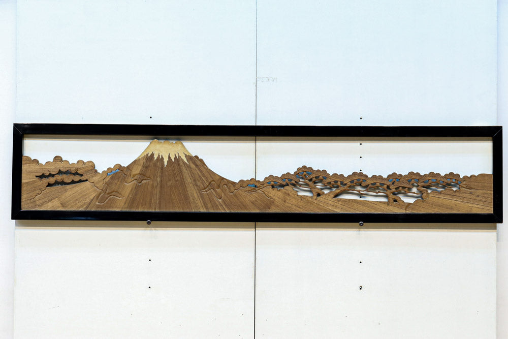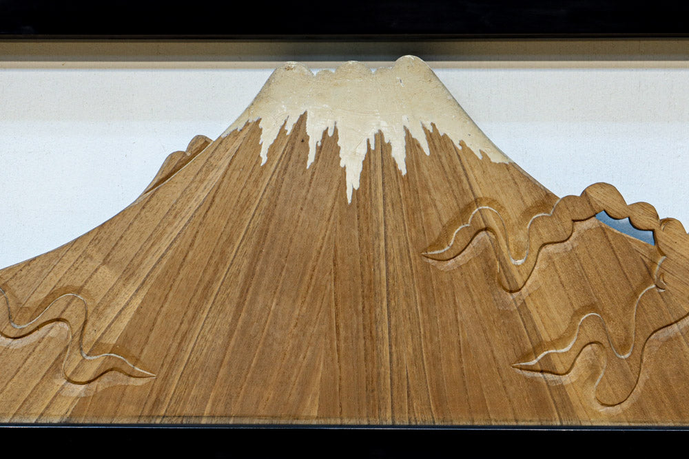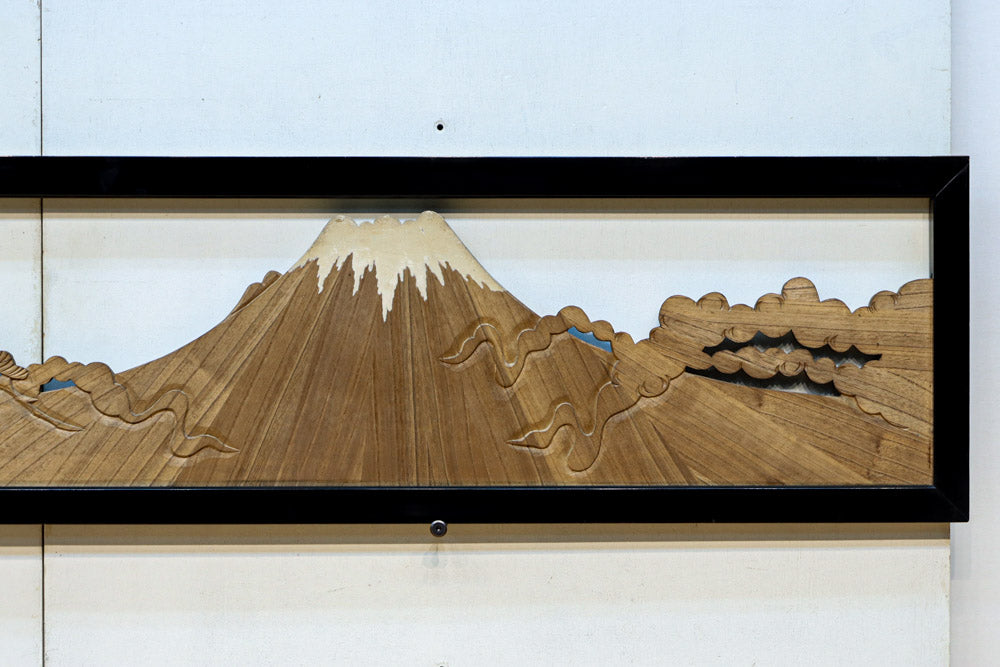 冠雪した富士を丁寧に美しく彫刻した極上彫刻欄間 EZ2513ab 在庫2枚一組