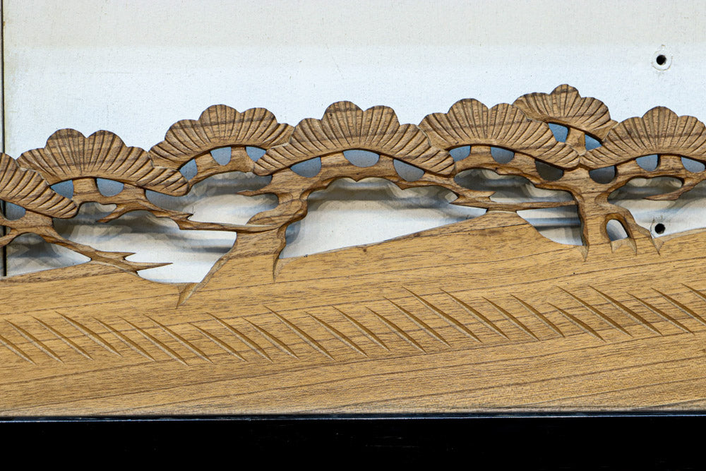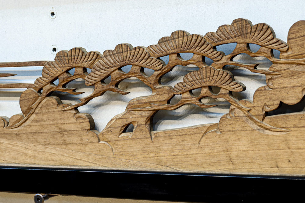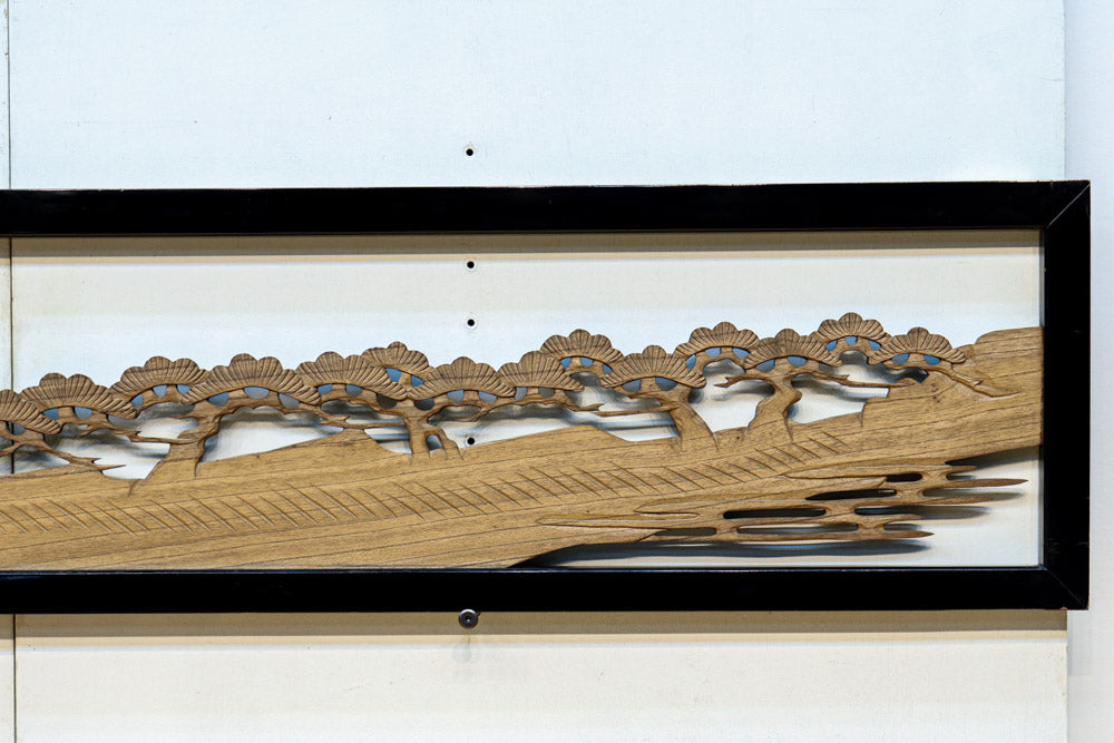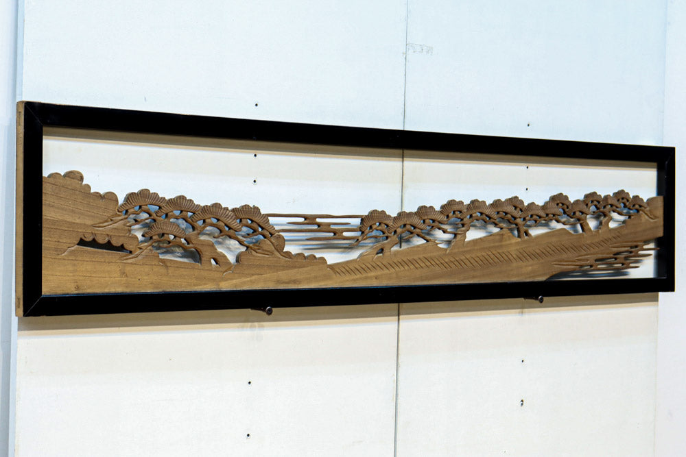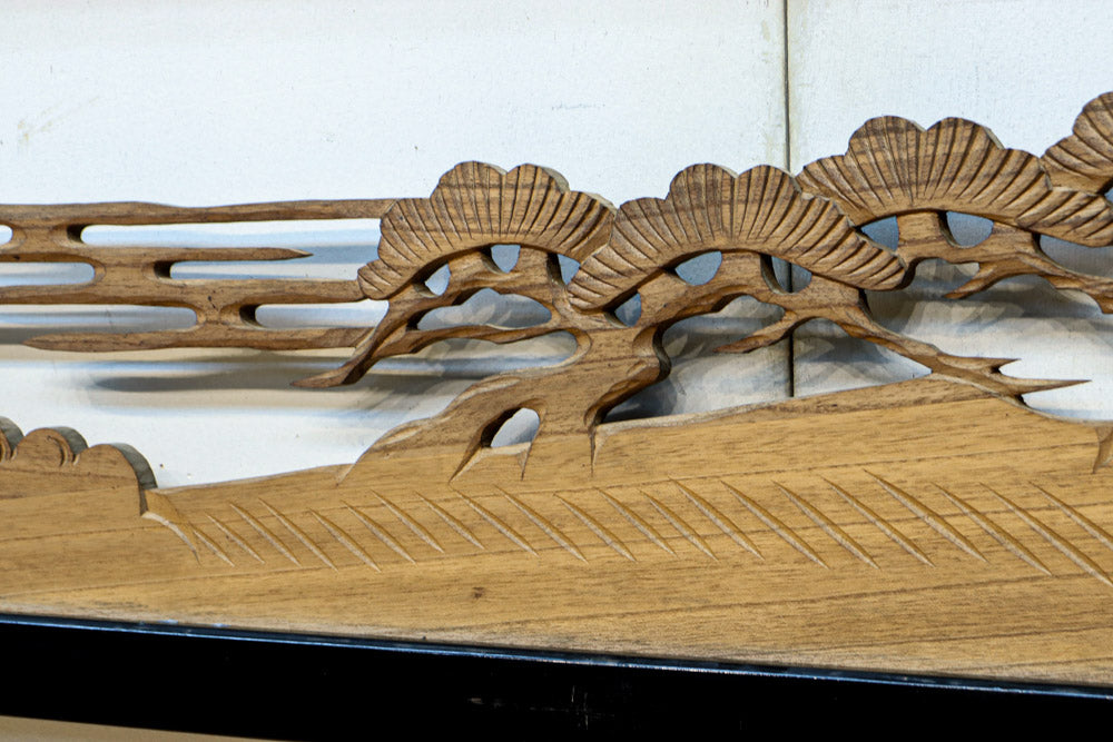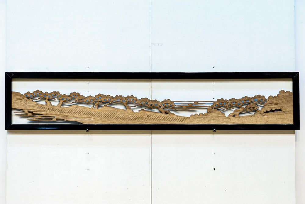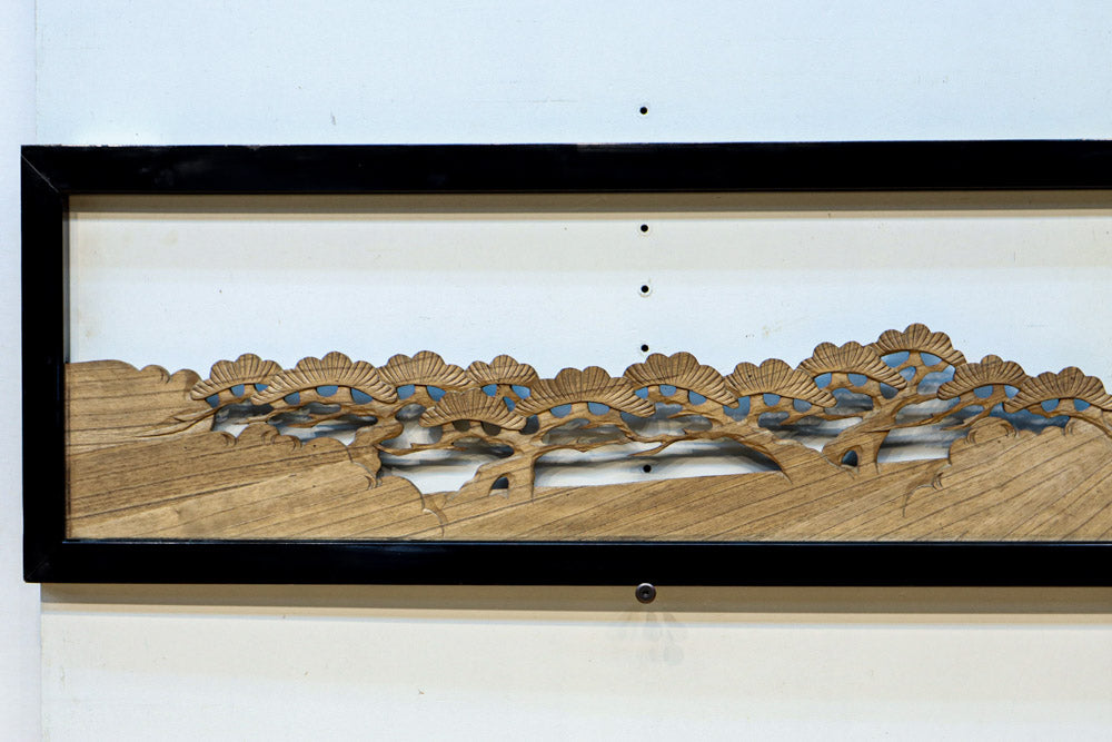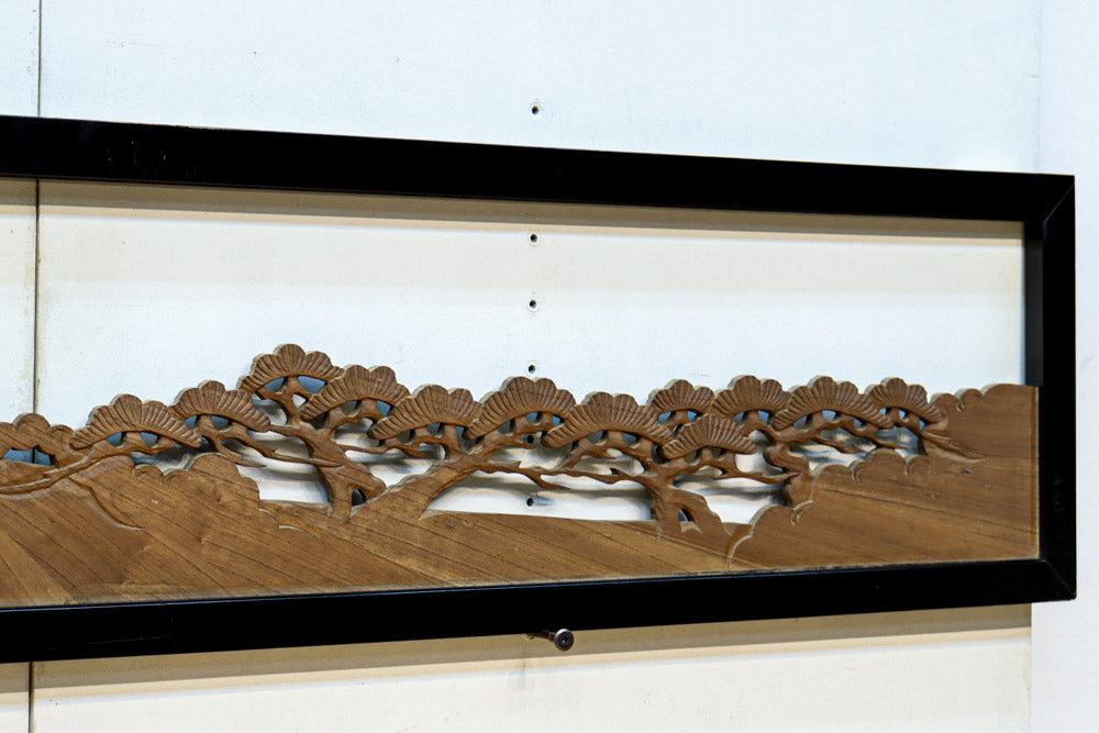 冠雪した富士を丁寧に美しく彫刻した極上彫刻欄間 EZ2513ab 在庫2枚一組