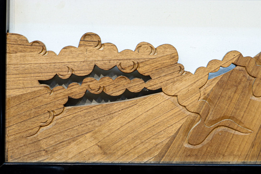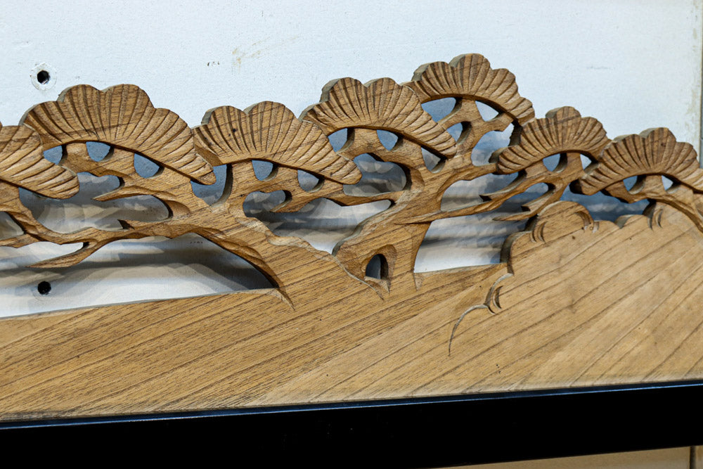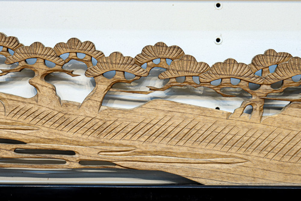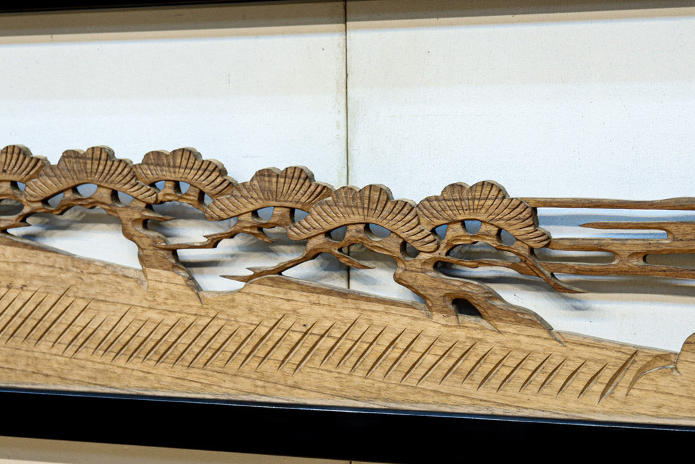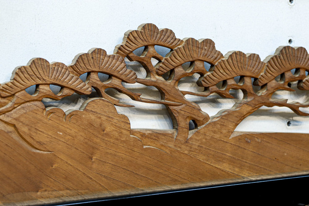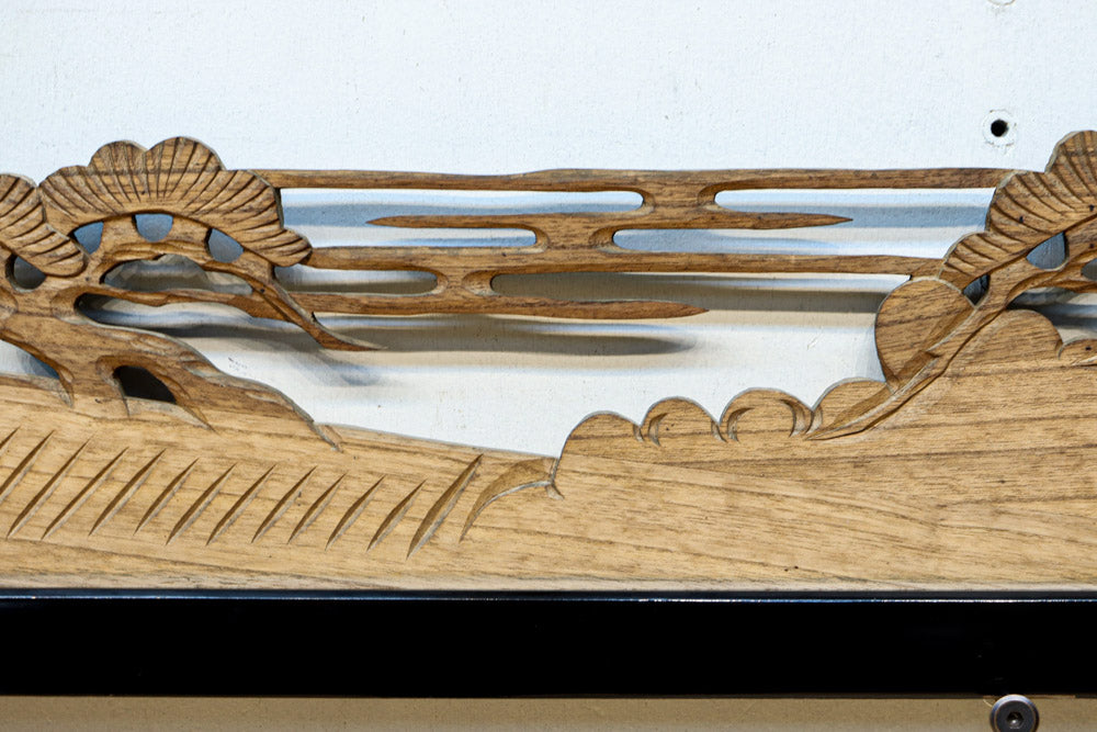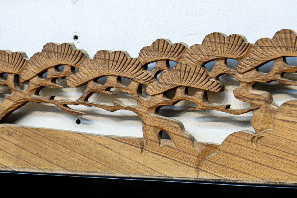 冠雪した富士を丁寧に美しく彫刻した極上彫刻欄間 EZ2513ab 在庫2枚一組