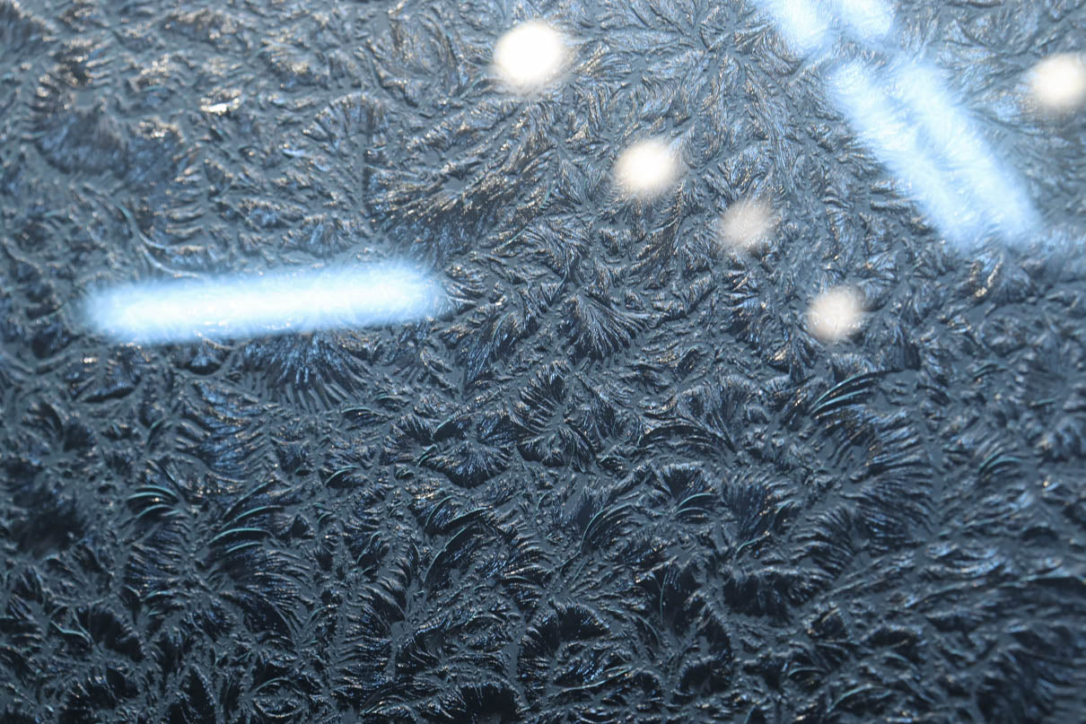 結霜ガラスを上部のガラス窓枠にはめ込んであり