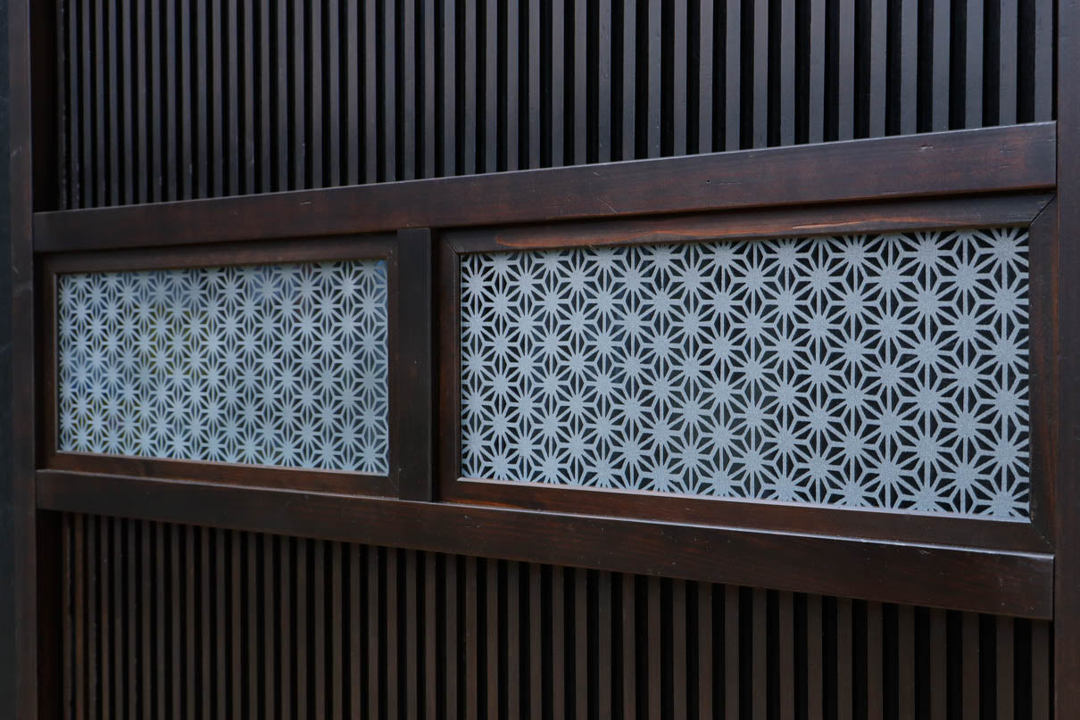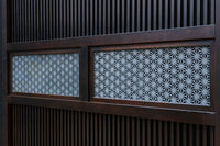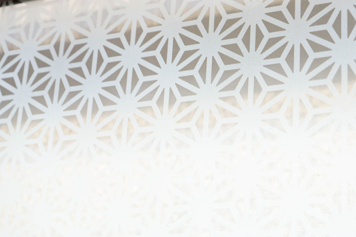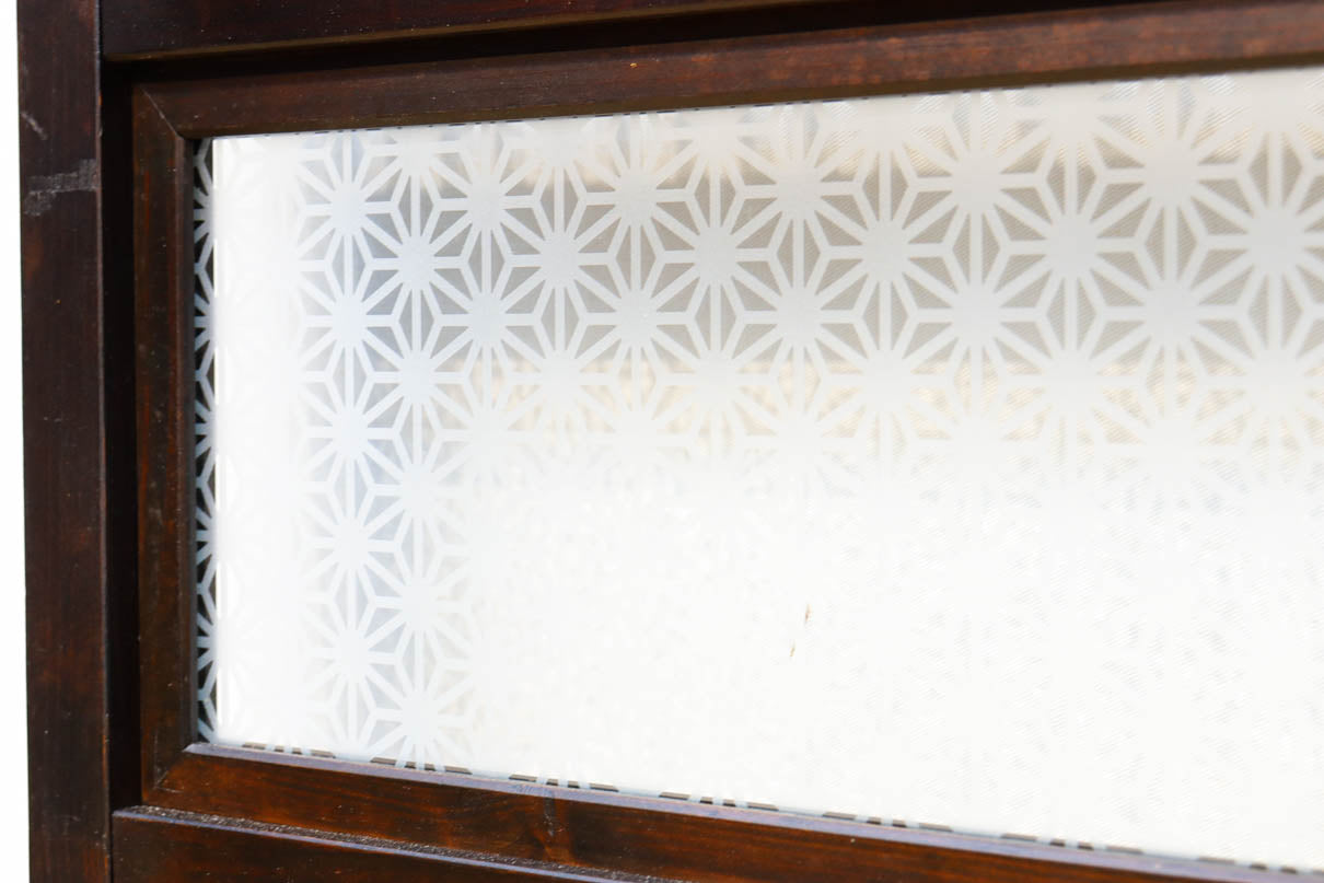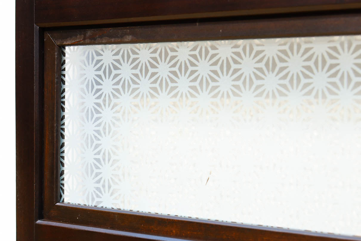 二分割にした小窓には麻の葉模様がデザインされたガラスを使用し、