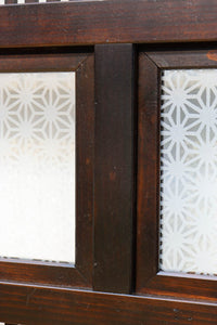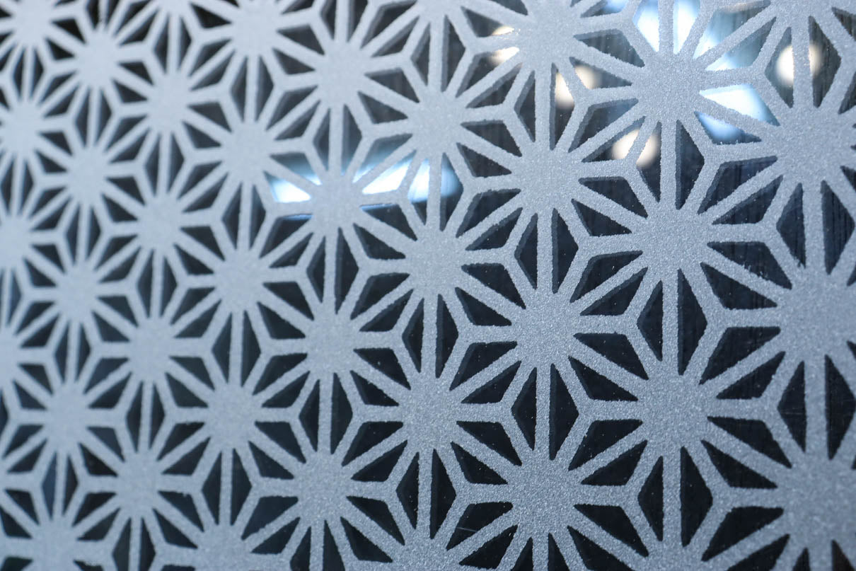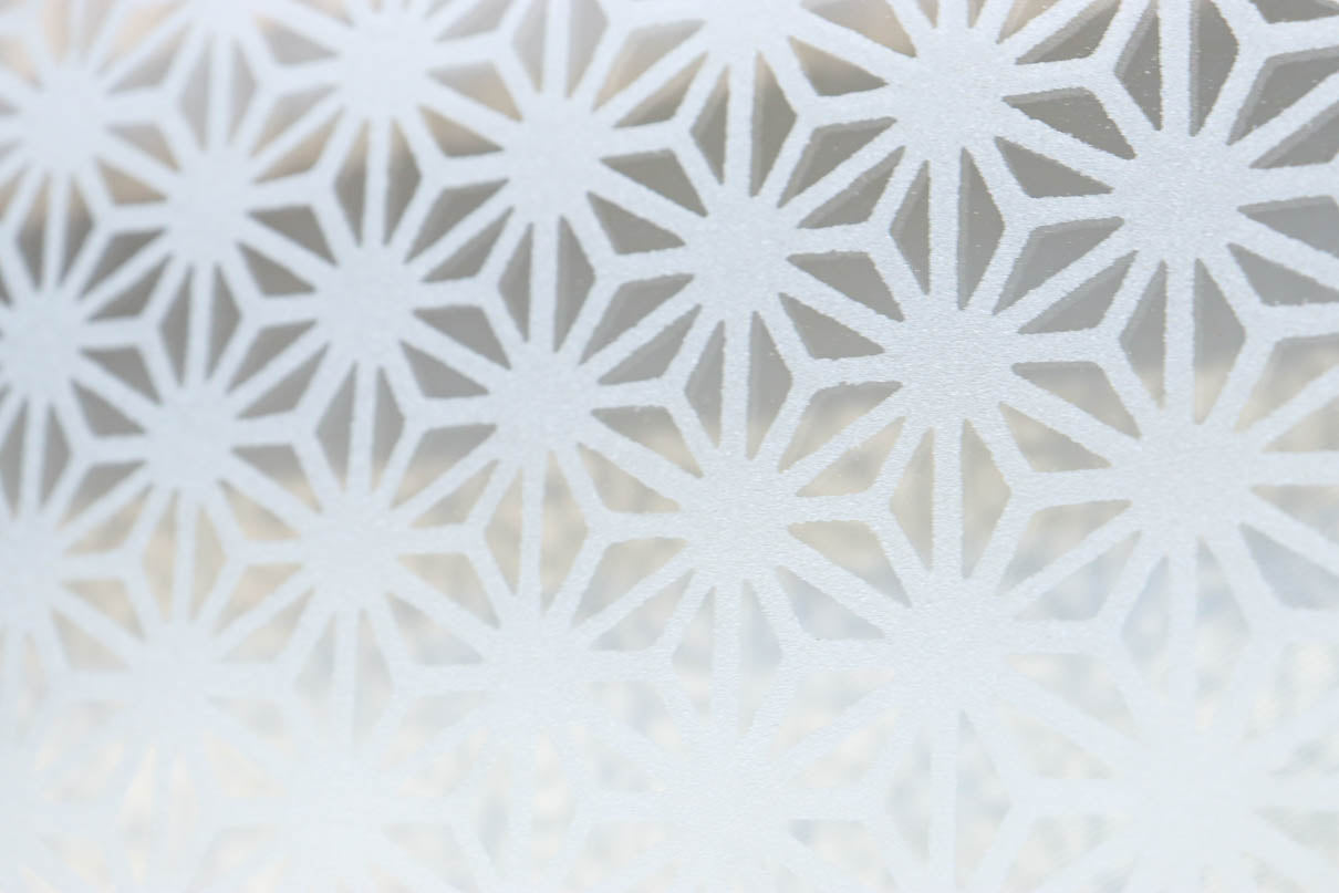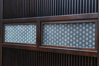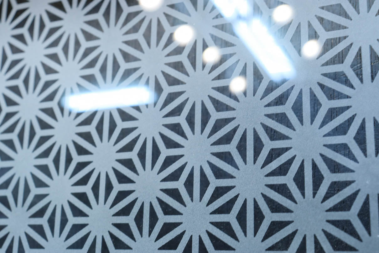 二分割にした小窓には麻の葉模様がデザインされたガラスを使用し、