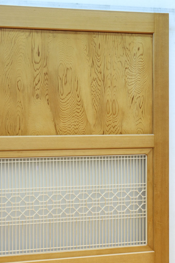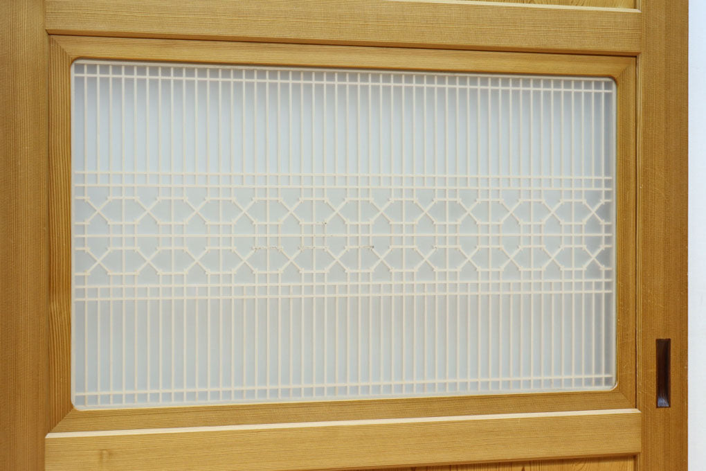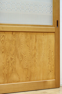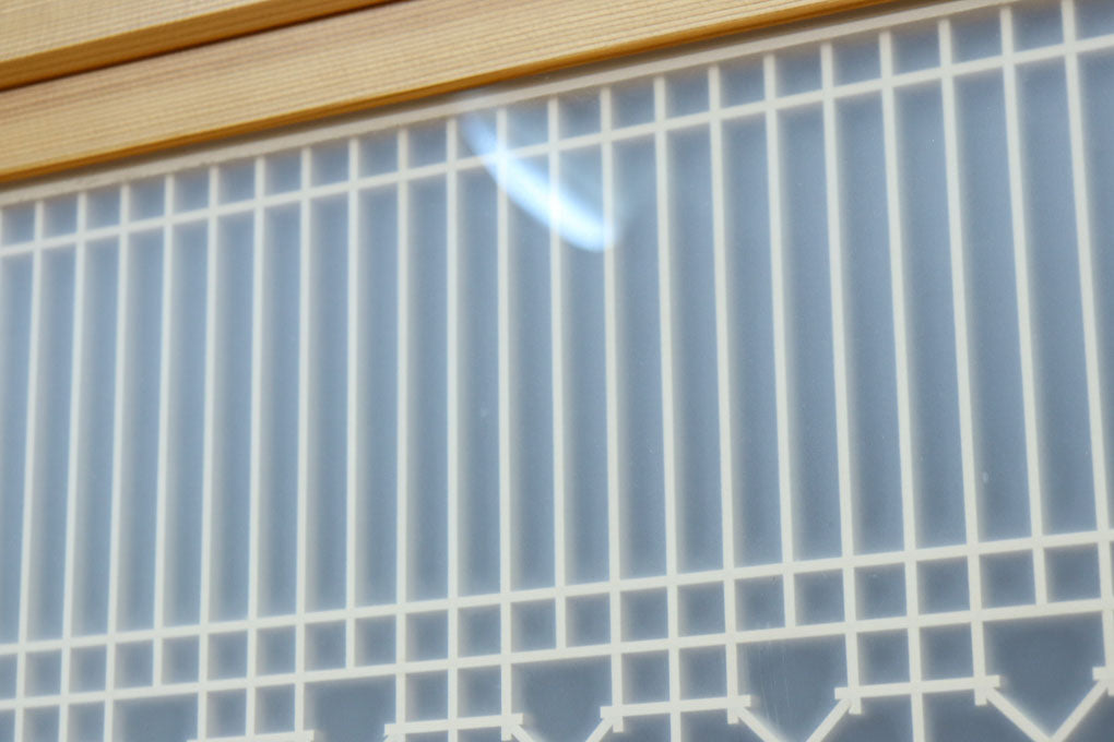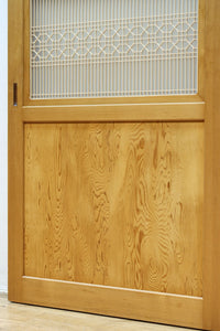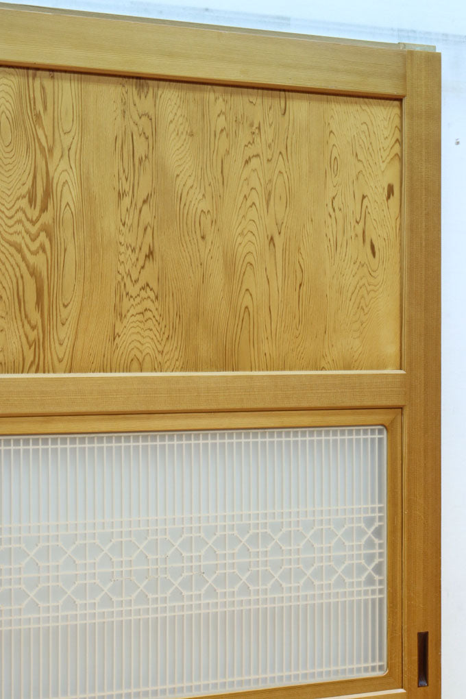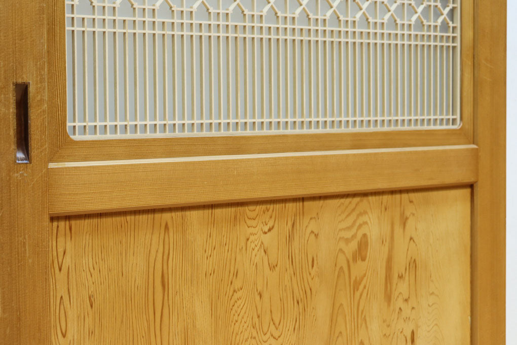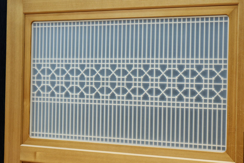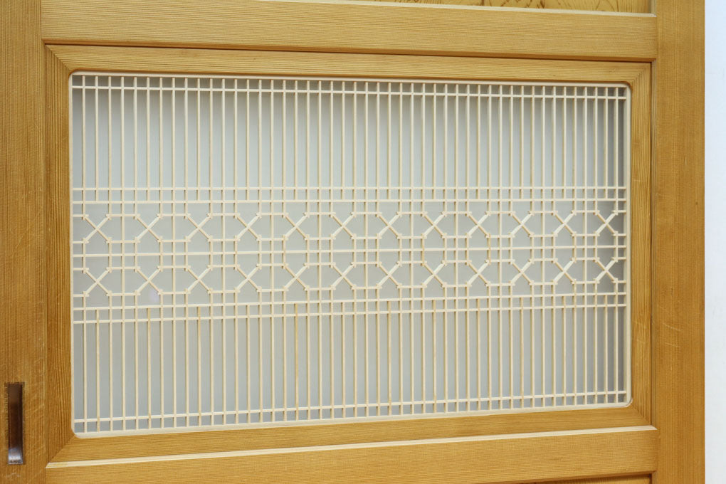 幅912ミリ 縦格子と組子が上品なガラス入り透かし板戸 F8413 在庫2枚