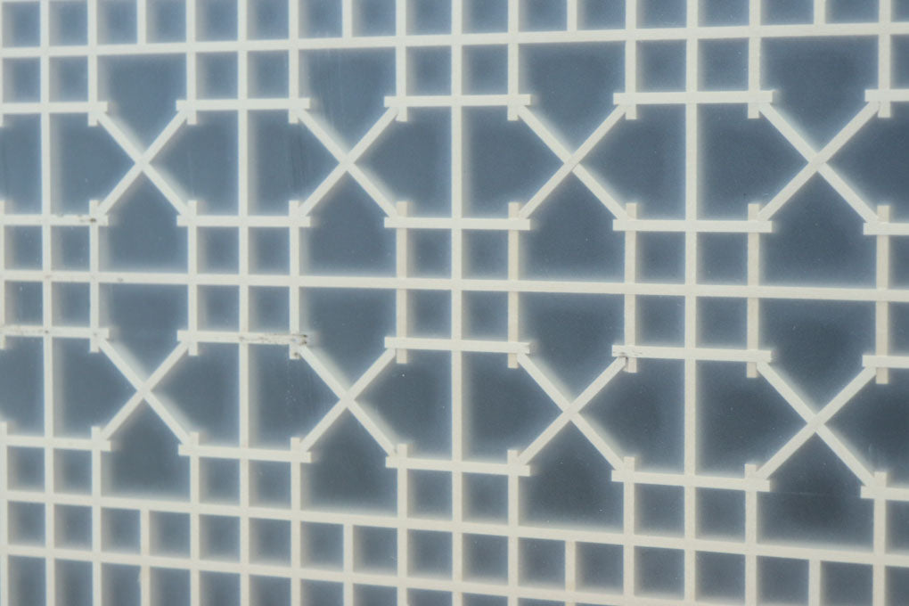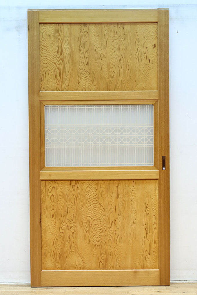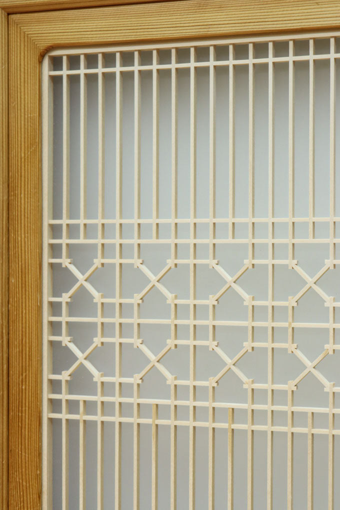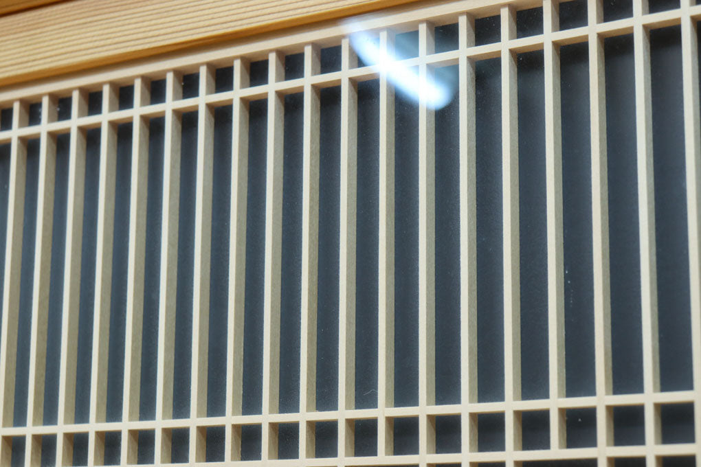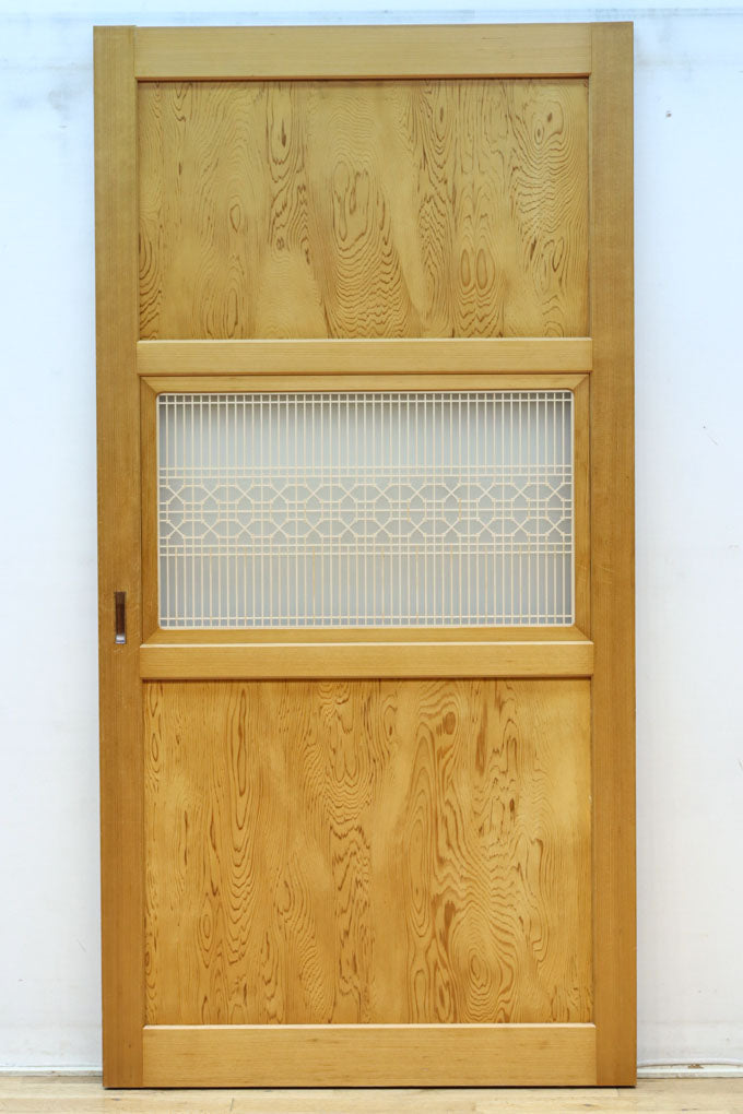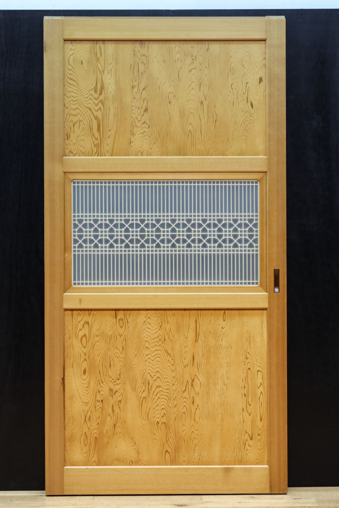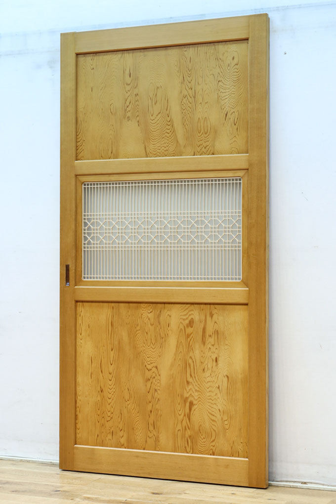 幅912ミリ 縦格子と組子が上品なガラス入り透かし板戸 F8413 在庫2枚