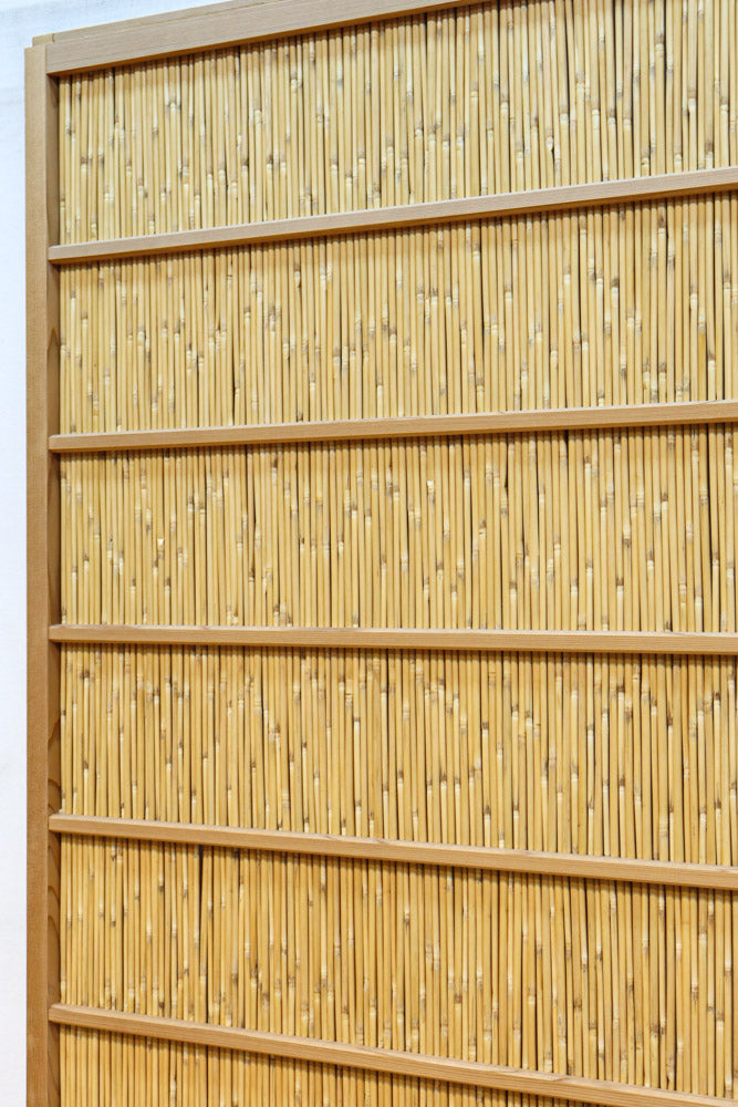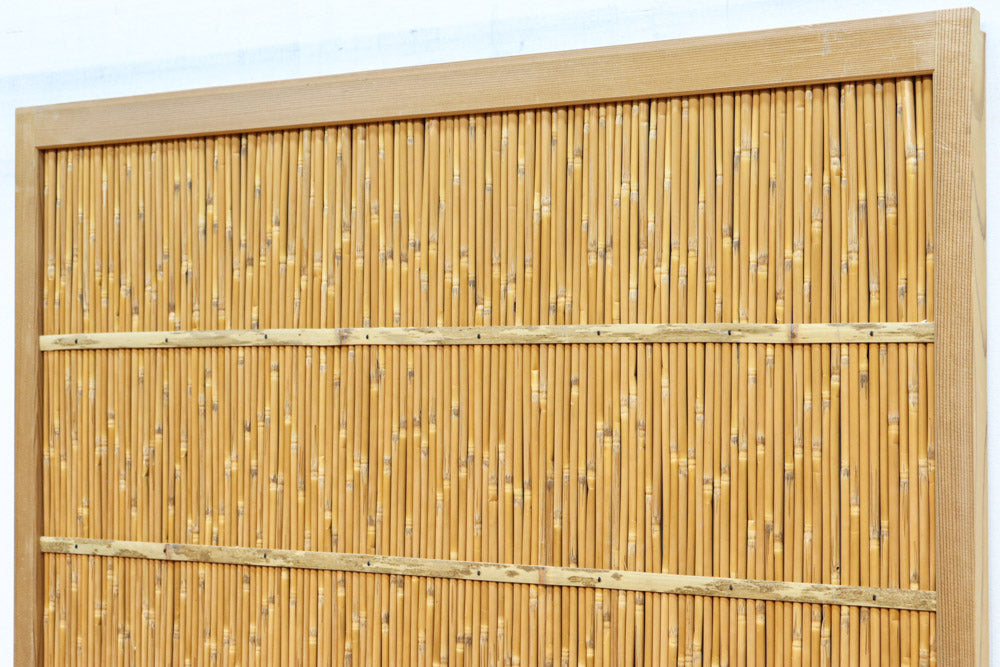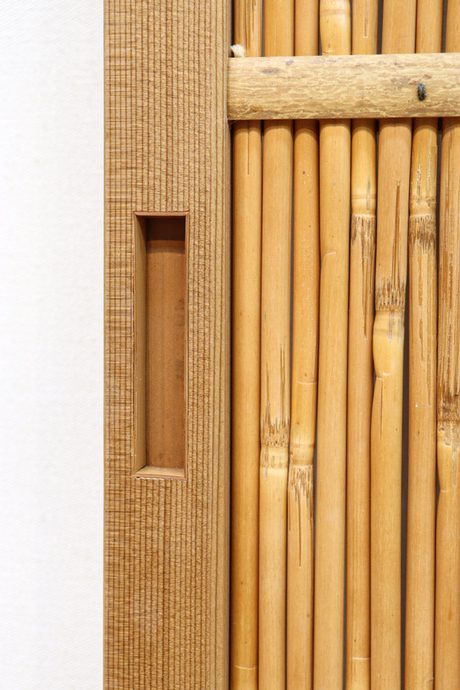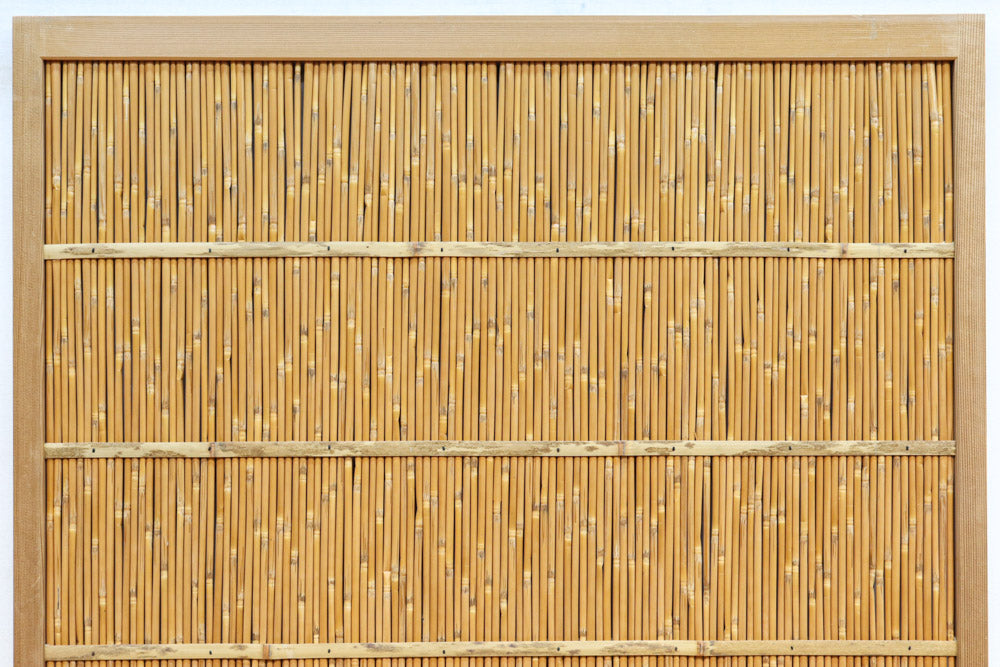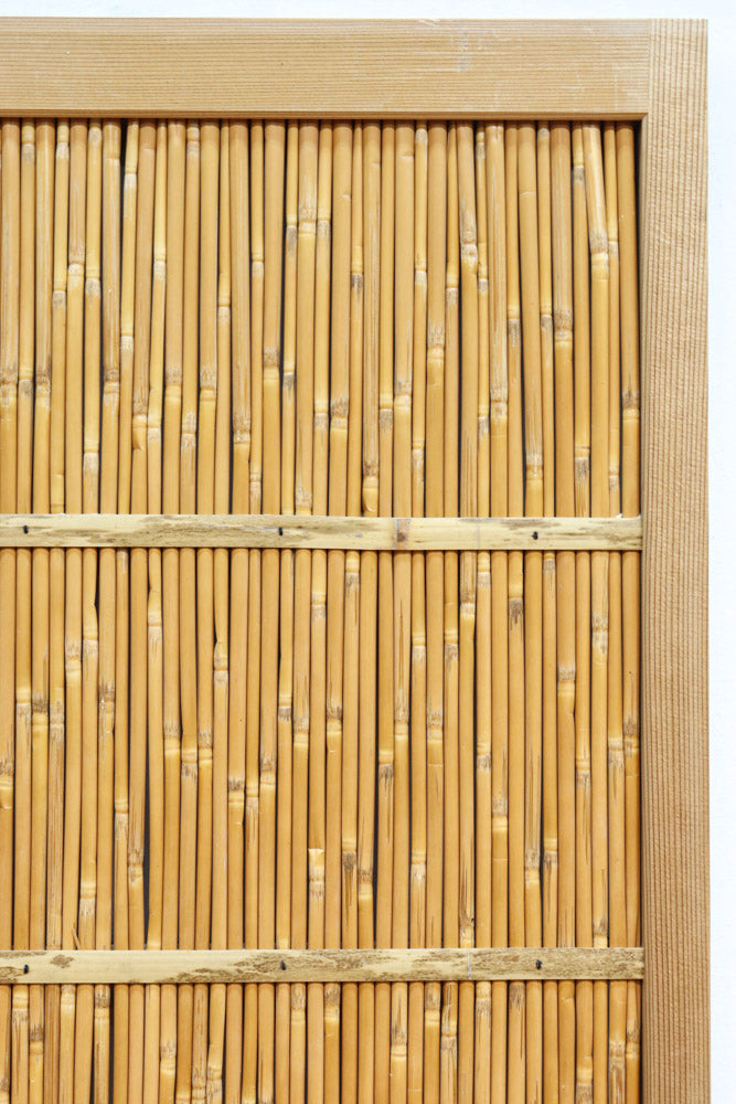 細い素材を隙間もなく緻密に木枠の中へ組み込んでいますので、