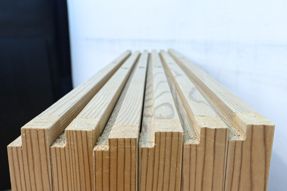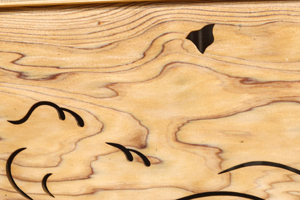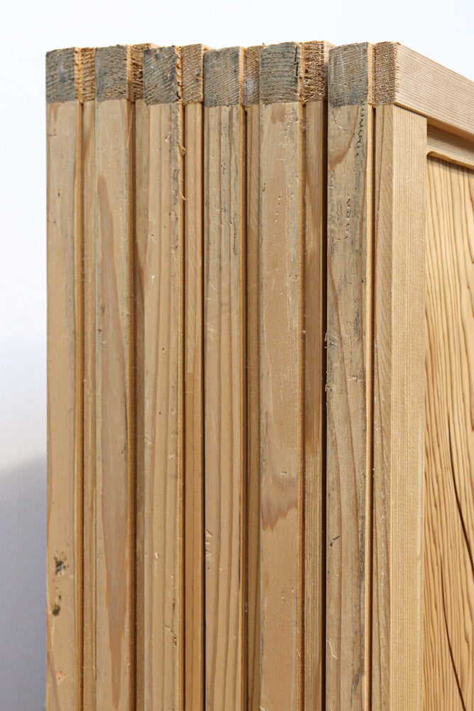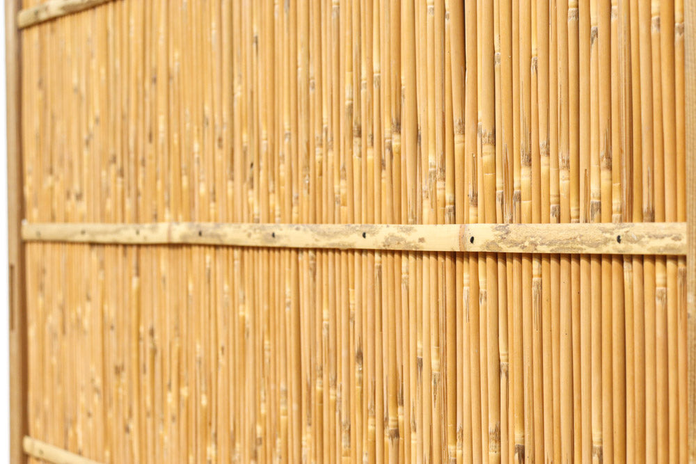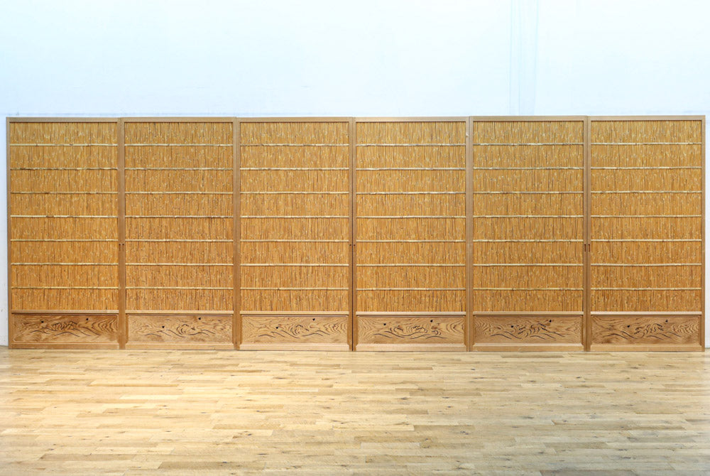 細い素材を隙間もなく緻密に木枠の中へ組み込んでいますので、
