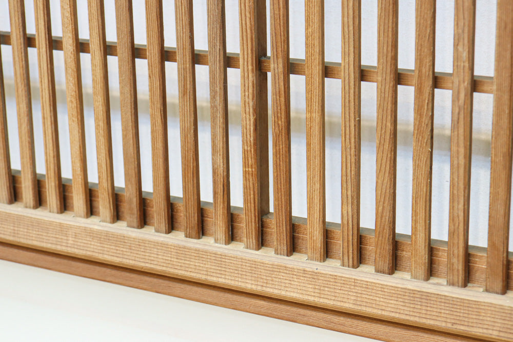 上質な木地の色彩や繊細な格子の並びと共に風情を深めます。