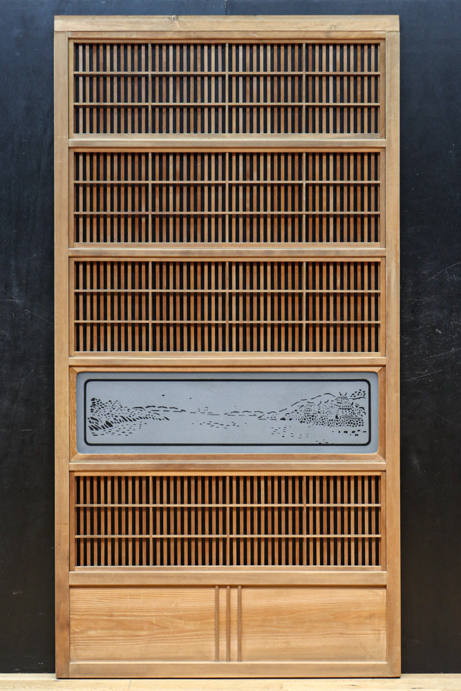 幅927ミリ 帯びガラスが風情ある上質な木地色をした大阪格子戸 F8516 在庫4枚